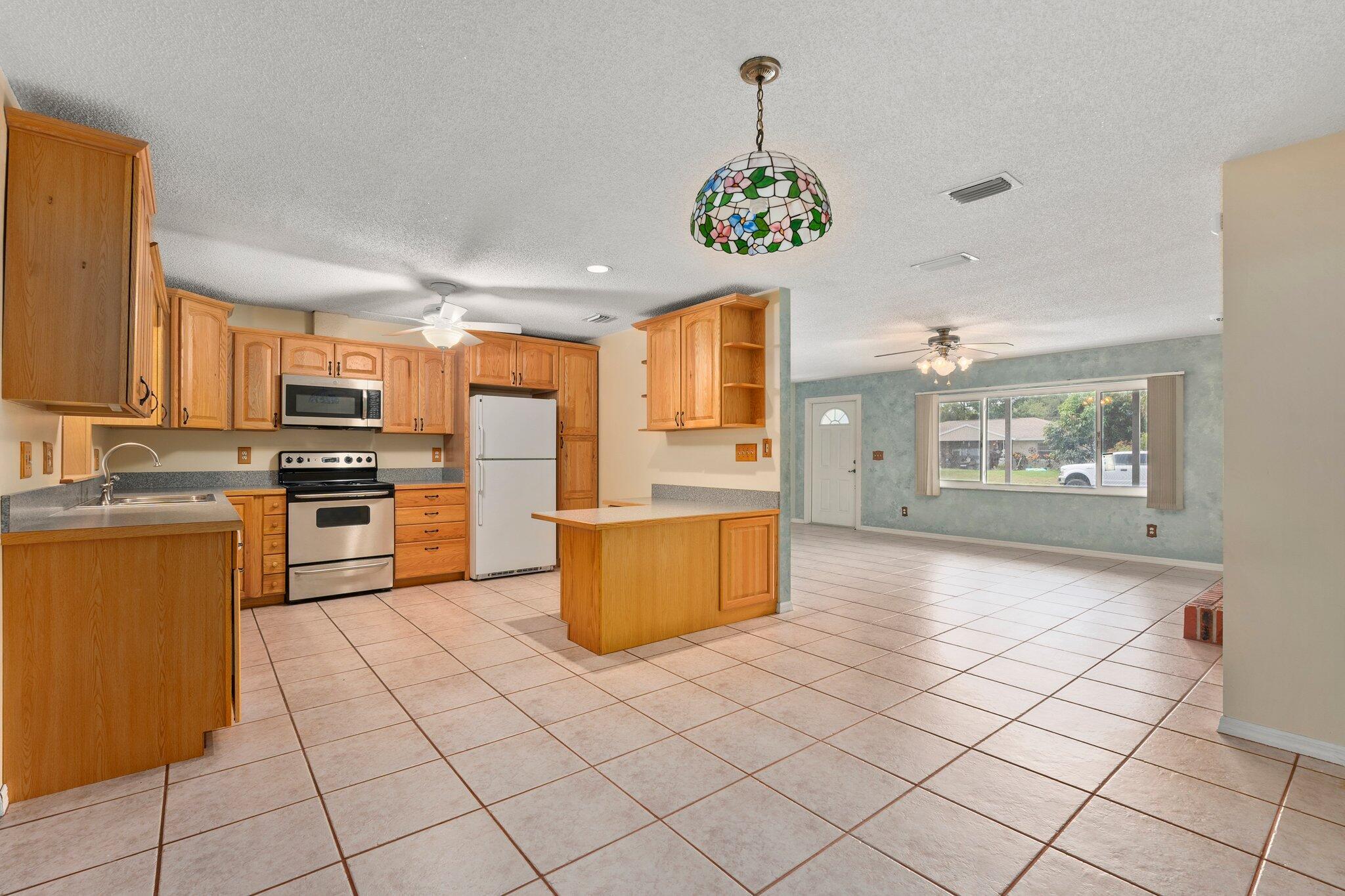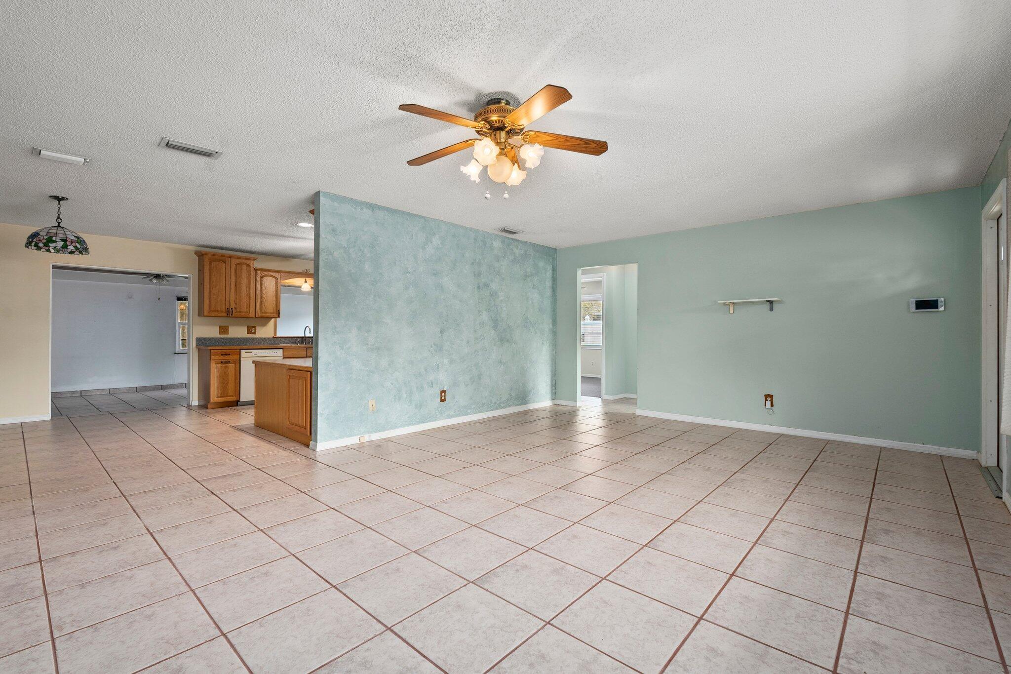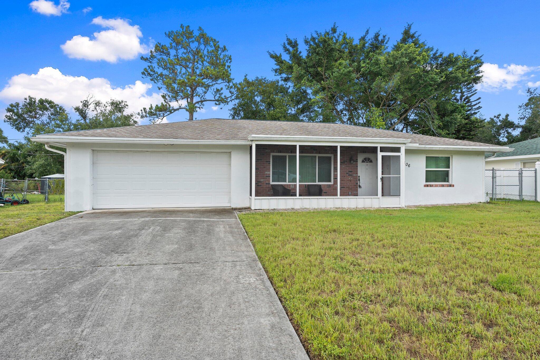 Welcome to your dream getaway nestled in the heart of sunny Florida! This delightful three-bedroom, two-bathroom home is a perfect blend of comfort and style, offering an ideal retreat for families, vacationers, or anyone looking to embrace the vibrant Florida lifestyle.As you approach the property, you'll be greeted by a front screened-in porched an inviting space to sip your morning coffee while enjoying the gentle breezes and sounds of nature.