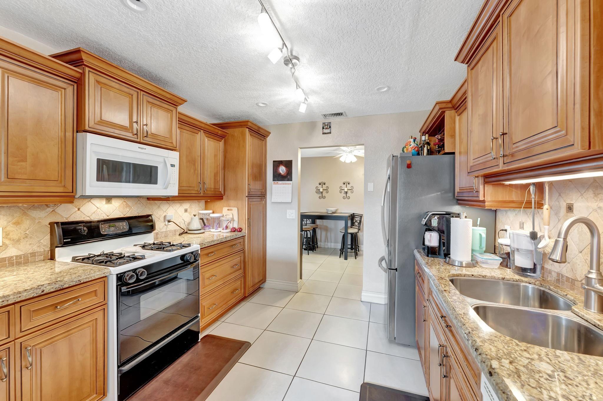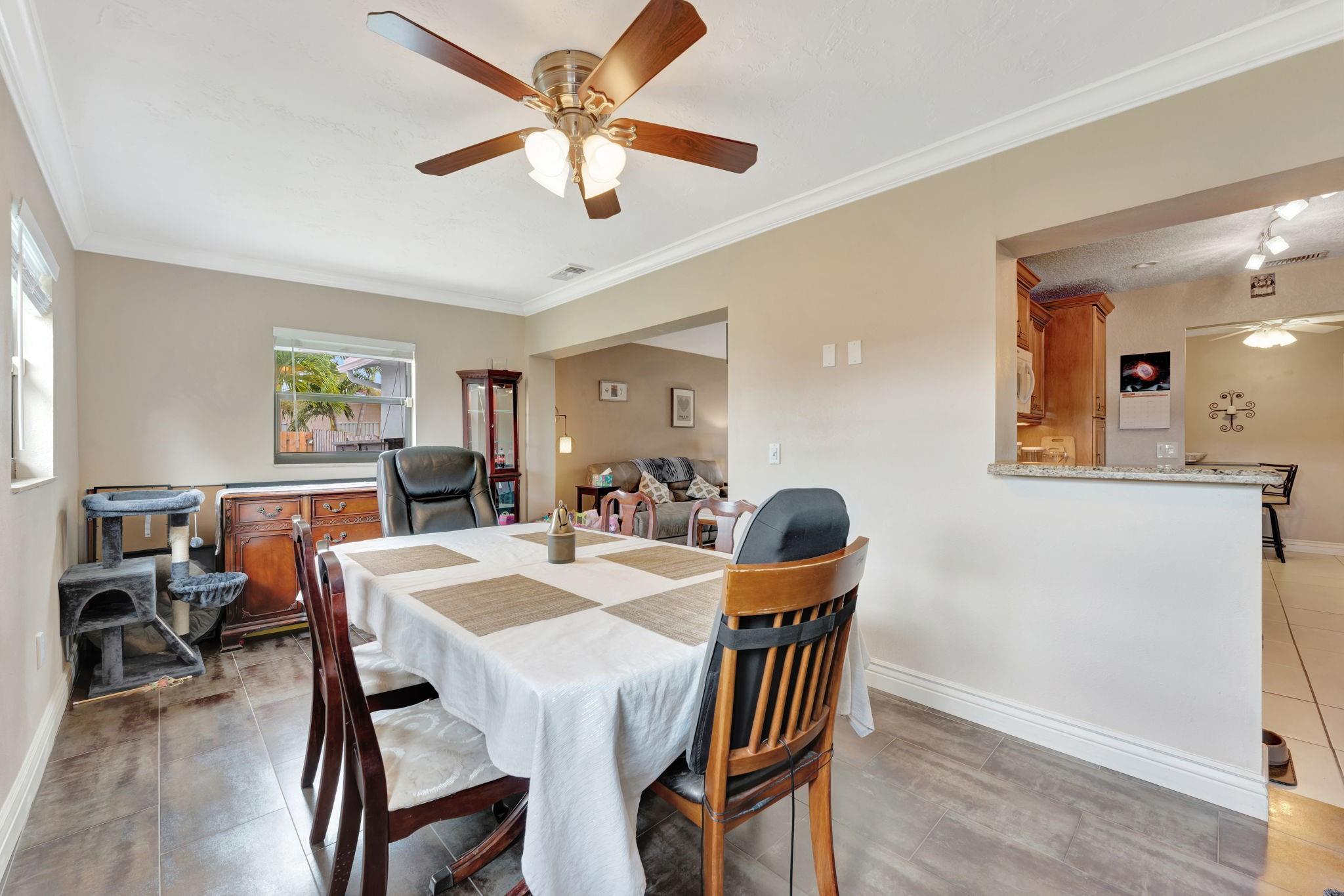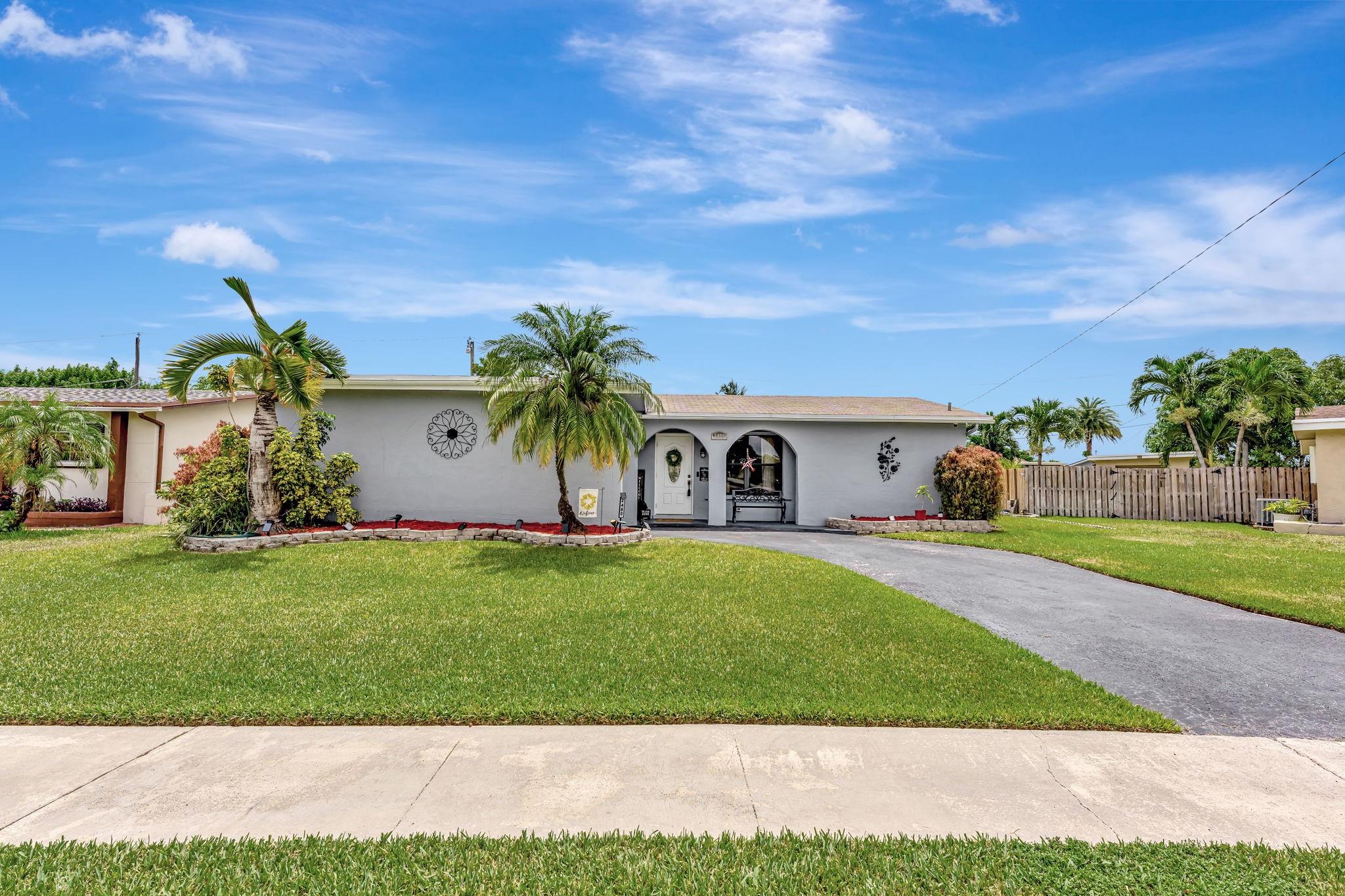 This is the amazing home you've waited for in a quiet nghbhd with NO HOA! Boasting a huge dining/living room + huge family room could be converted to 3rd BR easily. Gorgeous wood cabinetry kitchen remodeled with pull out drawers, pantry and granite c/tops, new s/s frig, sink filtration. Energy savings with the gas stove and 2024 hot water heater! Roof is 2015 & flat roof has been sealed yearly. Full hurricane shutter protection. New A/C 2023, both electric panels have been updated. HUGE 7443 s/f lot provides ample space to add a bedroom or a pool. Yard partially fenced. Enclosed patio invites a cool breeze for outside dining. 1-car garage has updated door, dedicated a/c unit, 2018 washer & 2024 dryer and ceiling storage racks. This won't last. See atts! 100,00 sf Civic center>Pools/GYM+