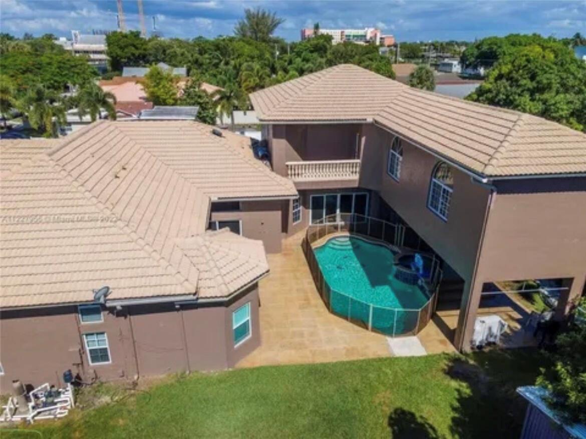 Welcome to this stunning luxury home! This home offers 5 spacious bedrooms and 4 tastefully designed bathrooms. Step inside to find luxurious marble floors that flow seamlessly throughout. The custom kitchen is a chef's dream, featuring granite countertops, stainless steel appliances and a stainless steel sink with a convenient bar area. For your entertainment needs, the home has a luxurious movie theater with signature reclining seating and a large movie screen. The impact glass windows provide both comfort and security. Step out into the backyard and be greeted by an inviting pool with a heated spa, perfect for relaxing or hosting gatherings. Enjoy the ultimate outdoor experience with a full Basketball court. The home also has a double car garage, and plenty of room for more parking.