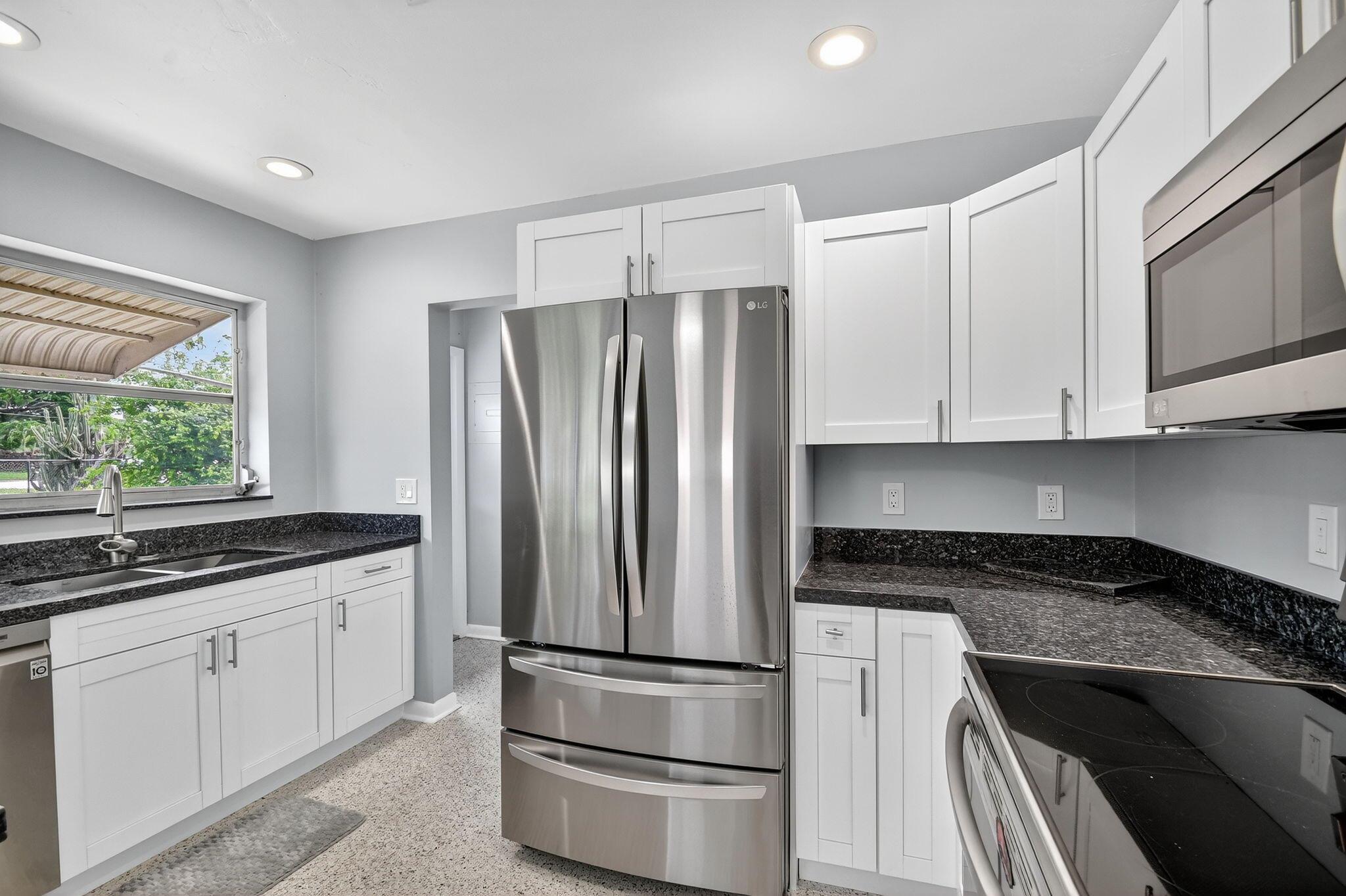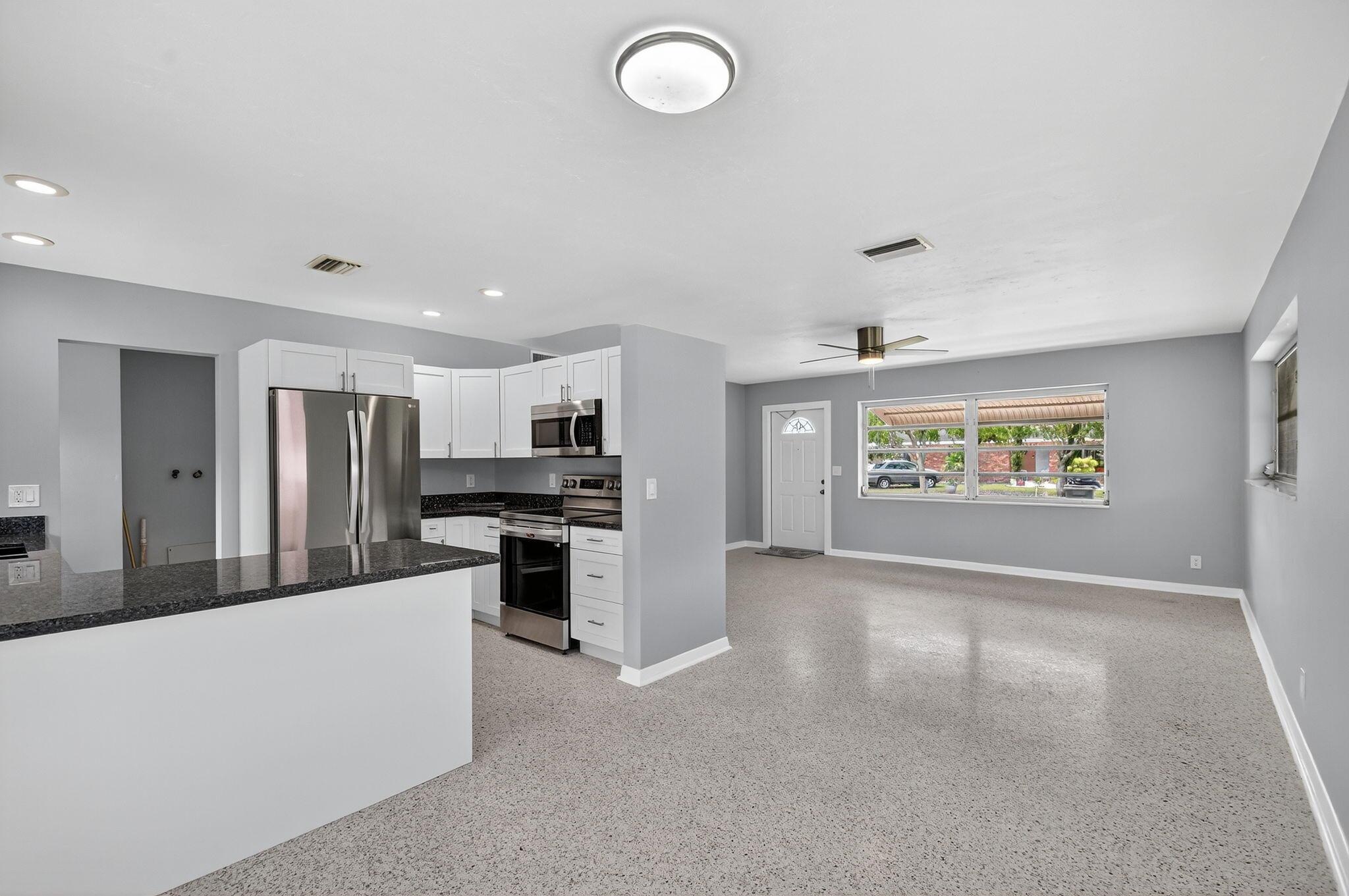 Welcome to this charming 3 bedroom, 2 bath home full of natural light and warmth. As you step inside, you'll notice the fresh coat of paint throughout and the large windows that brighten every corner of the home. The layout is simple and functional, with a cozy living space that flows into a brand new kitchen featuring updated cabinets, countertops, and appliances, everything you need without the fuss.Both bathrooms have been tastefully redone with fresh finishes, making them clean and comfortable. The bedrooms are a good size and offer nice closet space and natural light. Out back, you'll find a large, fully fenced yard to run and play safely or for hosting weekend gatherings. There's even a mature Japanese Palm Tree that brings a bit of tropical charm and homegrown