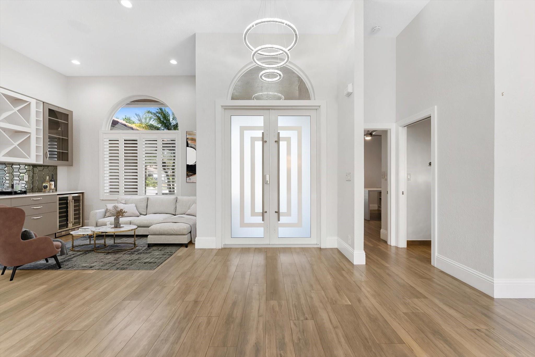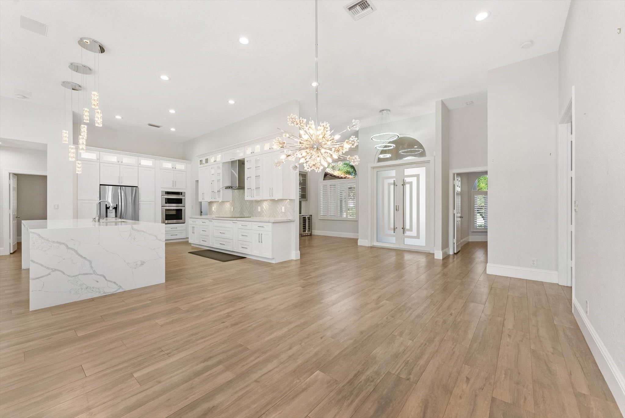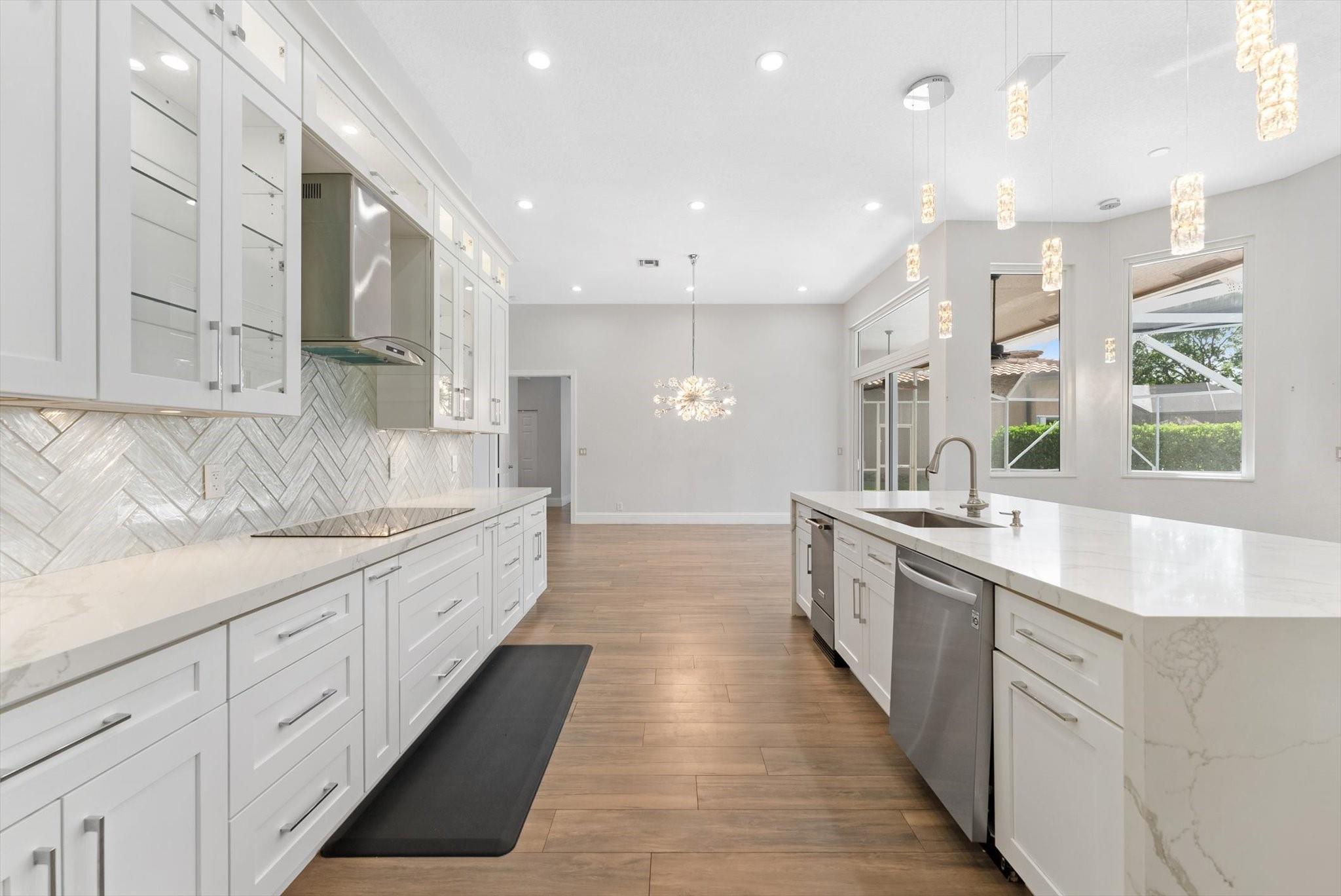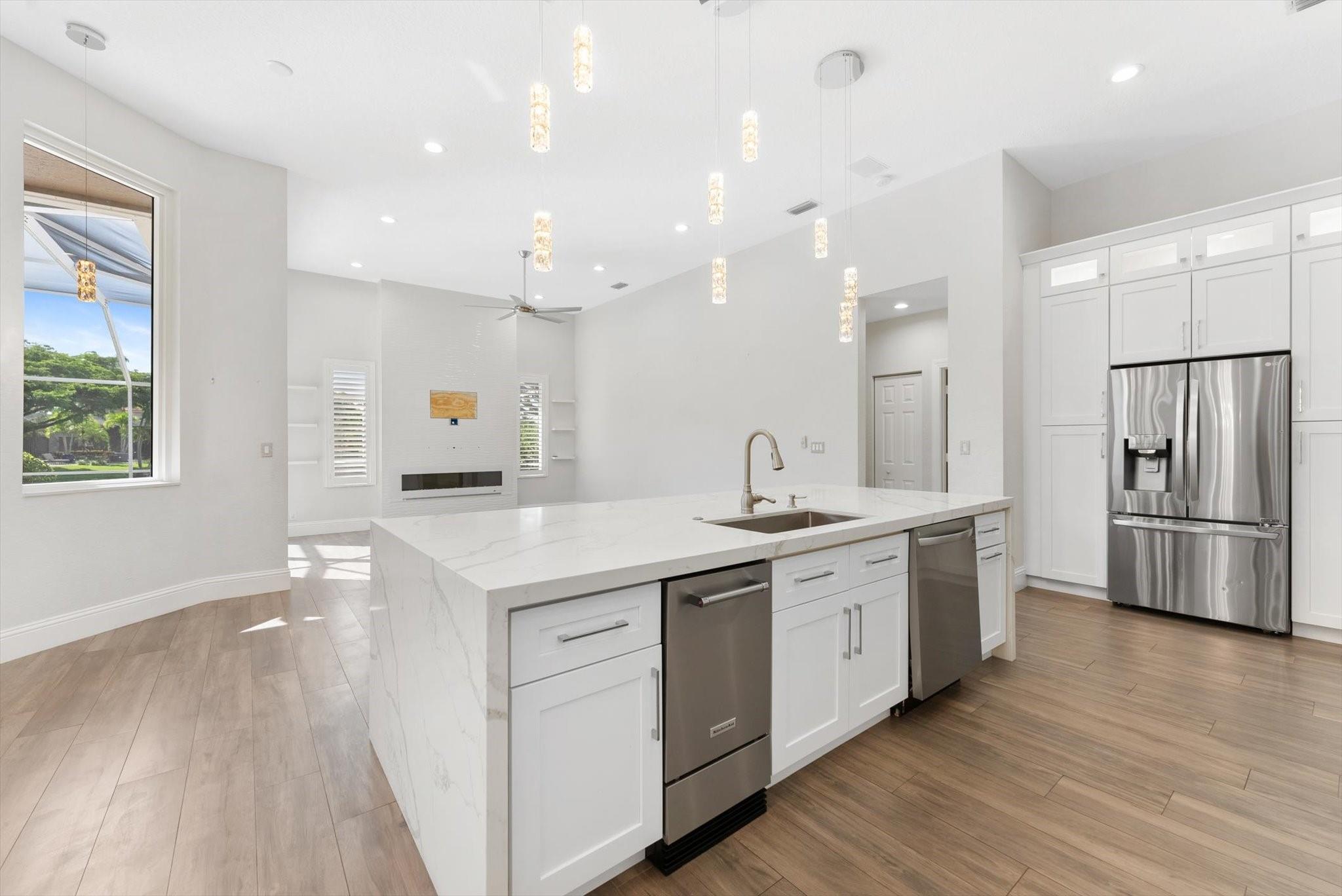 Completely reimagined & impeccably renovated with the finest materials. A sophisticated, contemporary oasis tailored for Florida’s seamless indoor/outdoor lifestyle. Walls of impact windows & doors flood the space with natural light & offer stunning views of the pool & lake. At the heart of the home, a show-stopping white kitchen takes center stage, featuring a dramatic waterfall island, quartz counters, top-of-the-line appliances & a striking glass tile backsplash. The Primary suite is impressive in size & boasts a spa like bathroom, several large closets with cabinetry & serene water views. Outside is an expansive screened porch with a heated saltwater pool with a spa & full service summer kitchen. Other offerings: Wood Like tile thruout, gorgeous lighting, Tesla charging station & more.