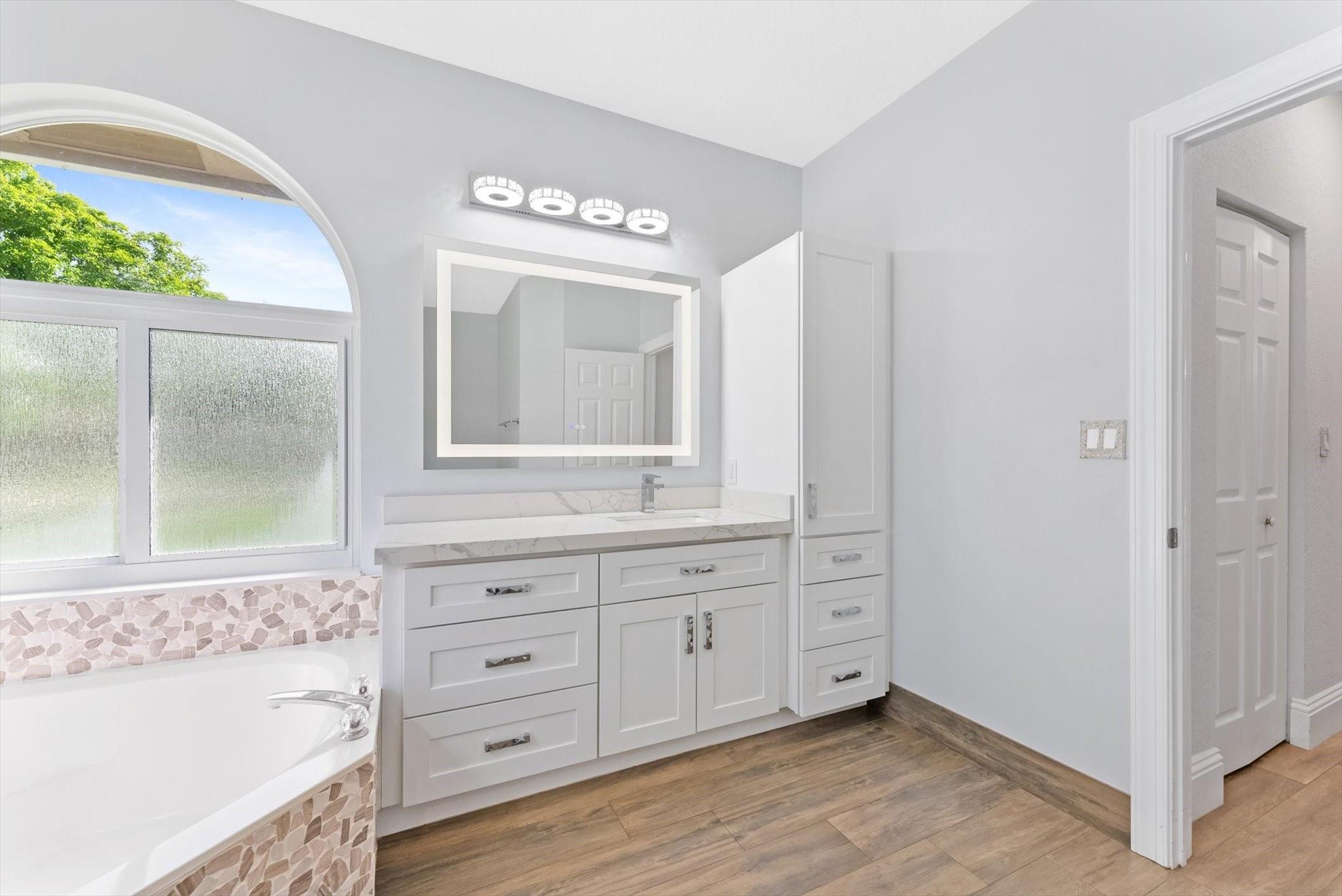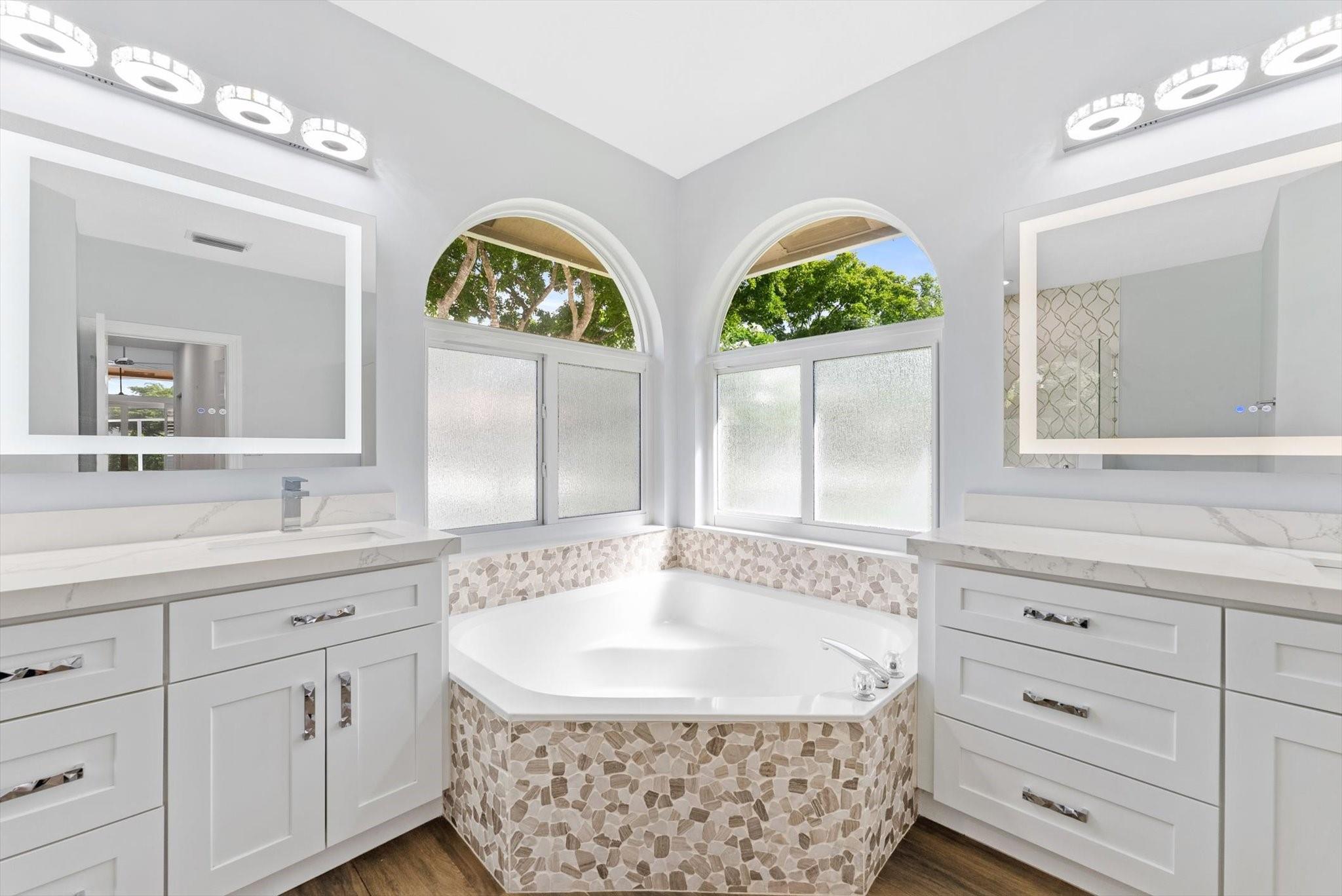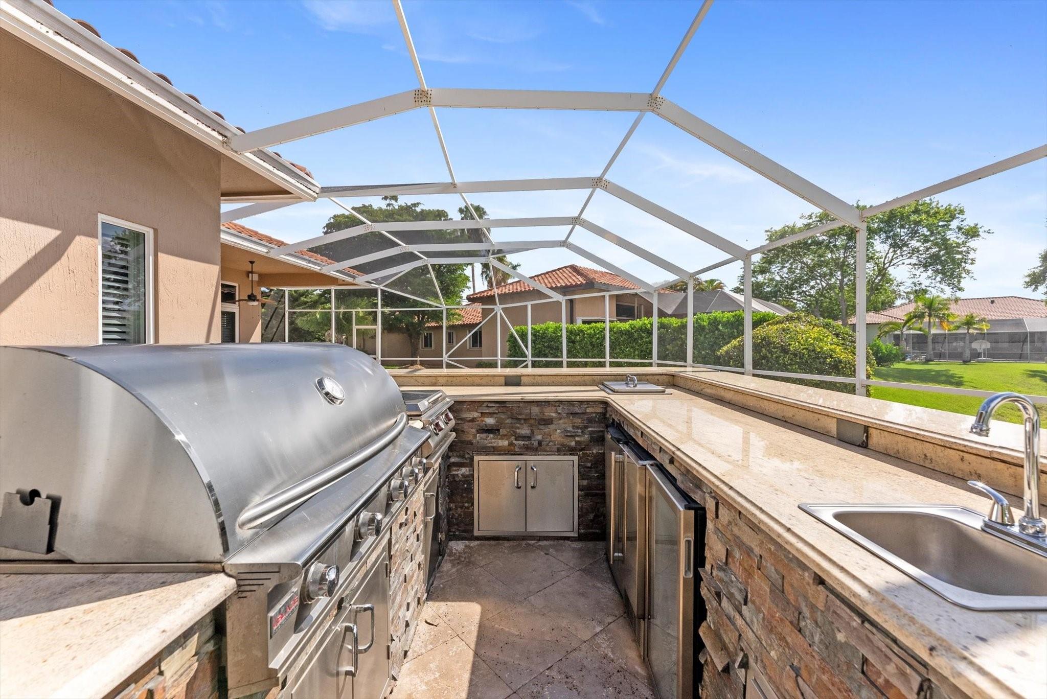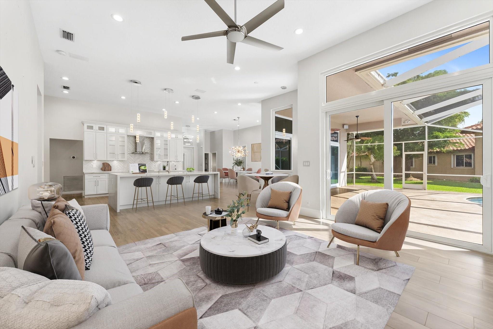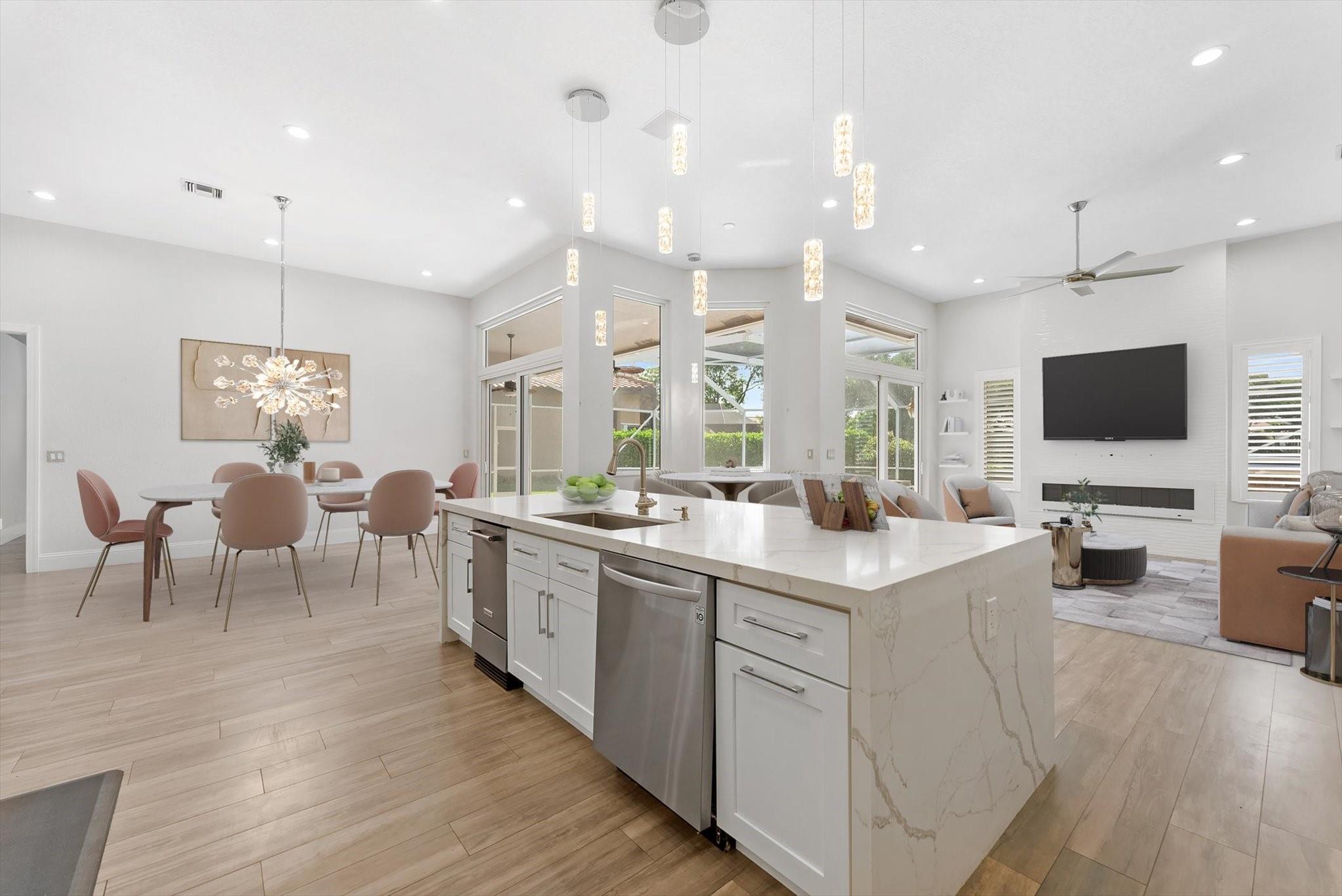 Completely reimagined & impeccably renovated with the finest materials. A sophisticated, contemporary oasis tailored for Florida’s seamless indoor/outdoor lifestyle. Walls of impact windows & doors flood the space with natural light & offer stunning views of the pool & lake. At the heart of the home, a show-stopping white kitchen takes center stage, featuring a dramatic waterfall island, quartz counters, top-of-the-line appliances & a striking glass tile backsplash. The Primary suite is impressive in size & boasts a spa like bathroom, several large closets with cabinetry & serene water views. Outside is an expansive screened porch with a heated saltwater pool with a spa & full service summer kitchen. Other offerings: Wood Like tile thruout, gorgeous lighting, Tesla charging station & more.