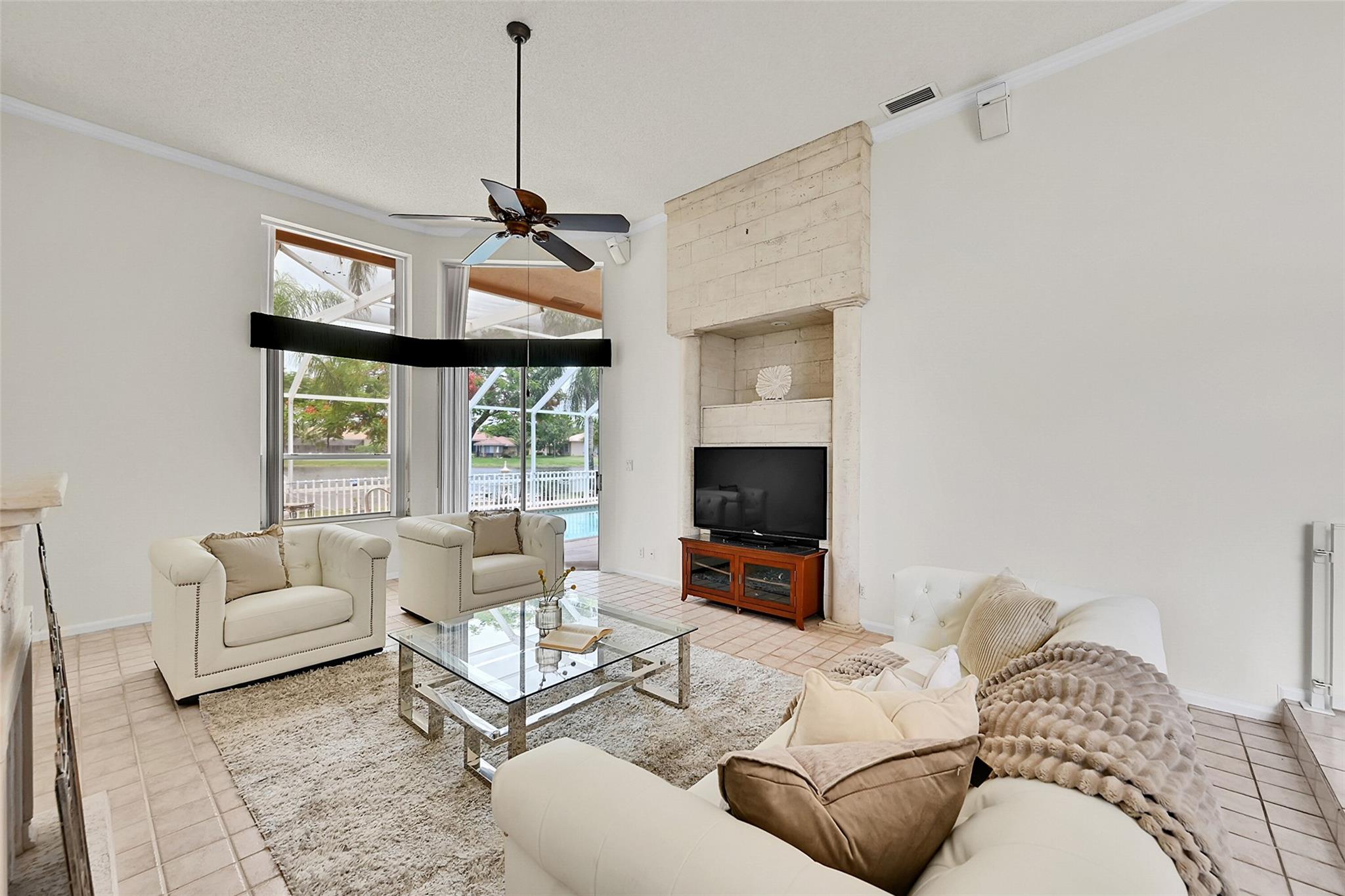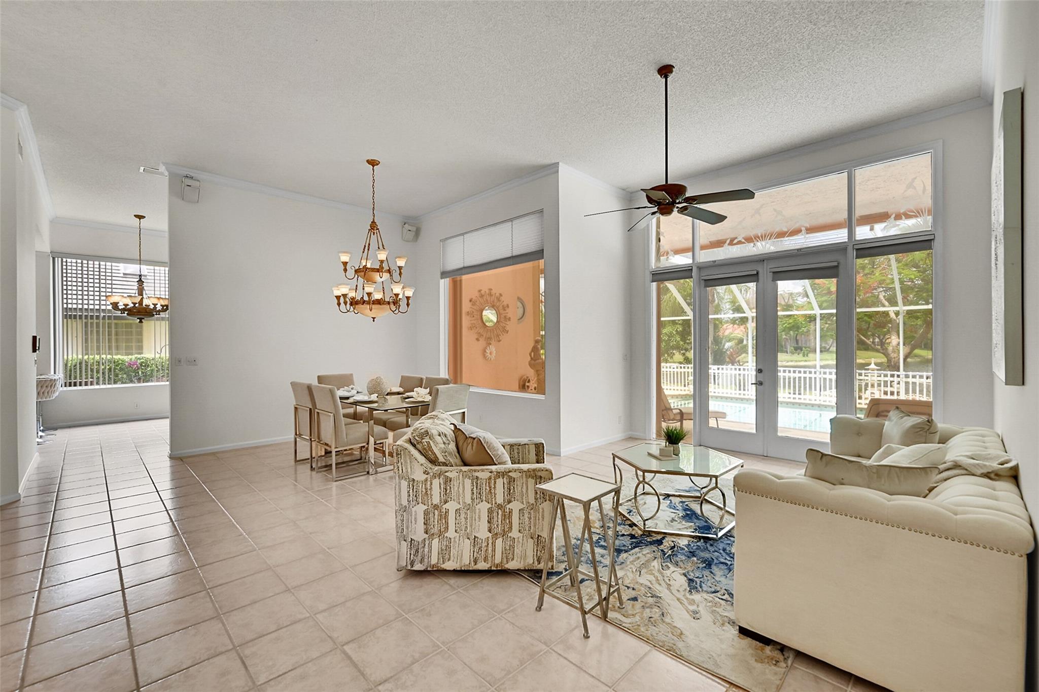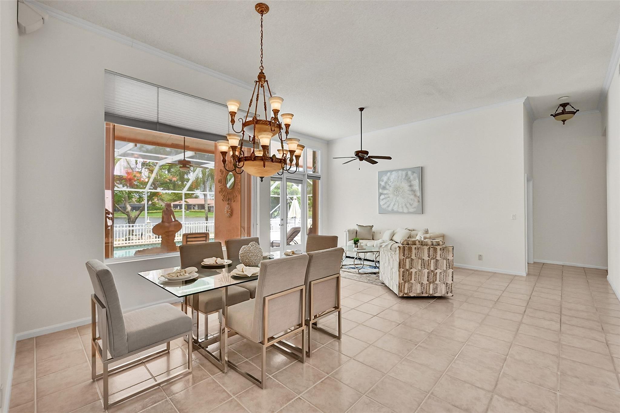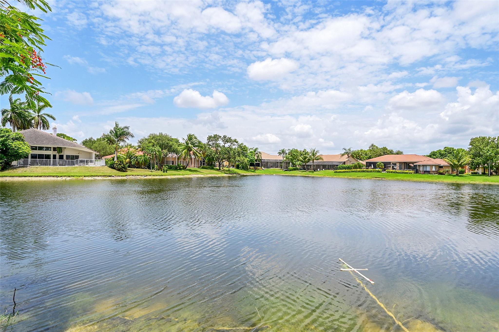 Imagine the sunsets here! Panoramic lake & pool views the moment you walk into this beautifully maintained home in the sought-after North Springs neighborhood - no HOA! Vaulted ceilings & tons of natural light make the space feel even bigger. Bright, open layout offers great flow for everyday living & entertaining. Spacious family room connects seamlessly to the kitchen & breakfast area - perfect for gatherings. Large primary suite has a sitting area w/ lake views & two walk-in closets w/ built-ins. The primary bath features double vanities, soaking tub, & a separate shower. All bedrooms are generously sized. 1/2 bath for guests & separate pool bathroom outside, so no one has to bring water through the house after swimming. This smart & functional layout works for any lifestyle.