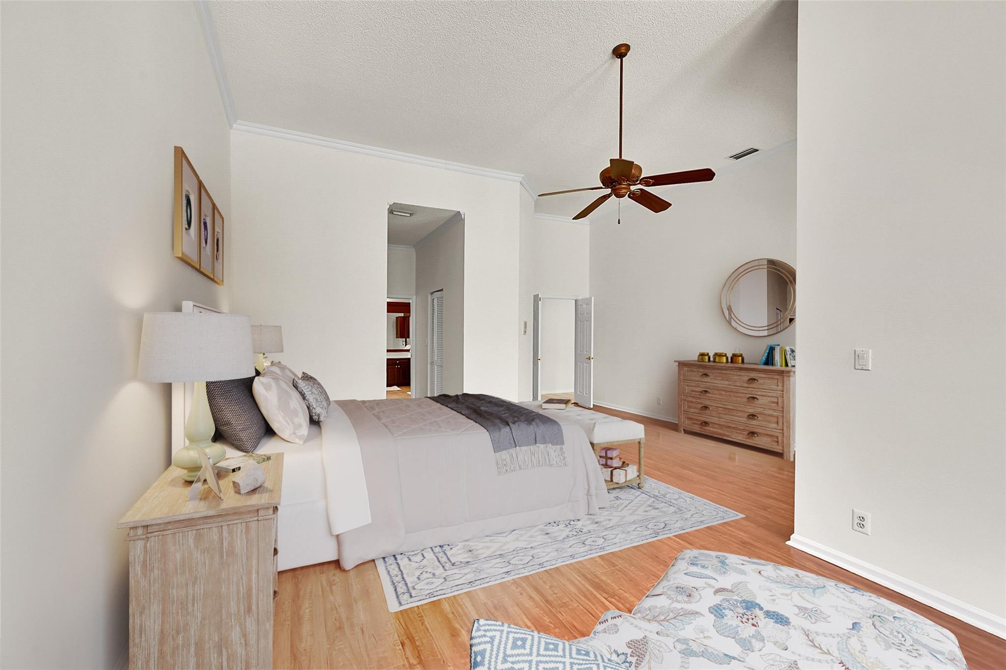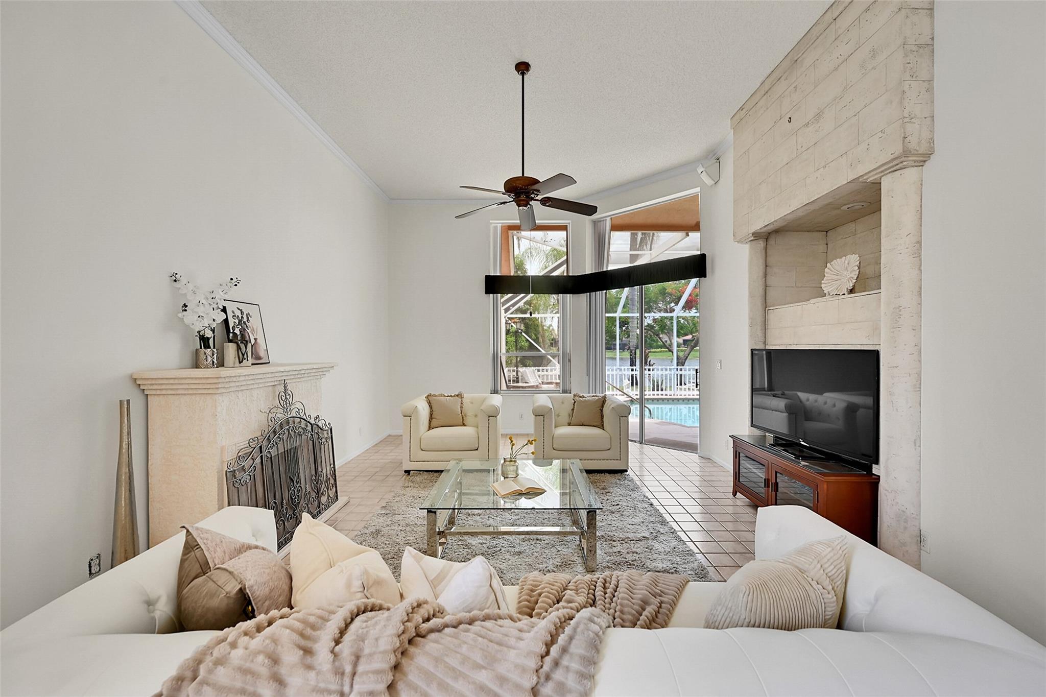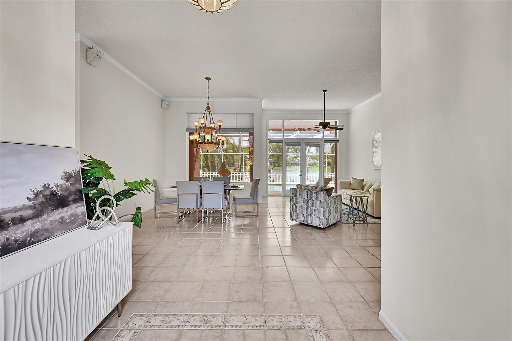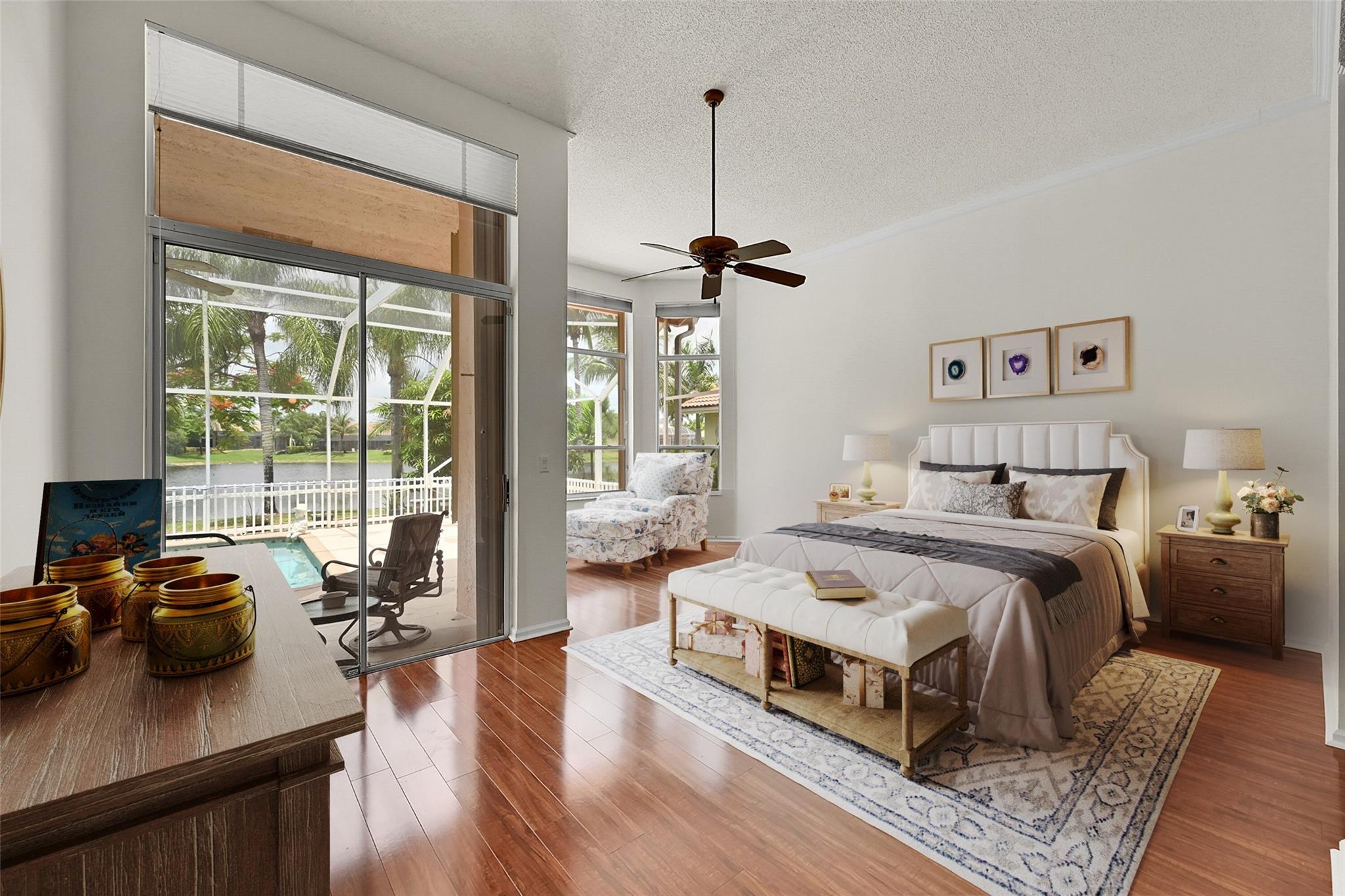 Imagine the sunsets here! Panoramic lake & pool views the moment you walk into this beautifully maintained home in the sought-after North Springs neighborhood - no HOA! Vaulted ceilings & tons of natural light make the space feel even bigger. Bright, open layout offers great flow for everyday living & entertaining. Spacious family room connects seamlessly to the kitchen & breakfast area - perfect for gatherings. Large primary suite has a sitting area w/ lake views & two walk-in closets w/ built-ins. The primary bath features double vanities, soaking tub, & a separate shower. All bedrooms are generously sized. 1/2 bath for guests & separate pool bathroom outside, so no one has to bring water through the house after swimming. This smart & functional layout works for any lifestyle.