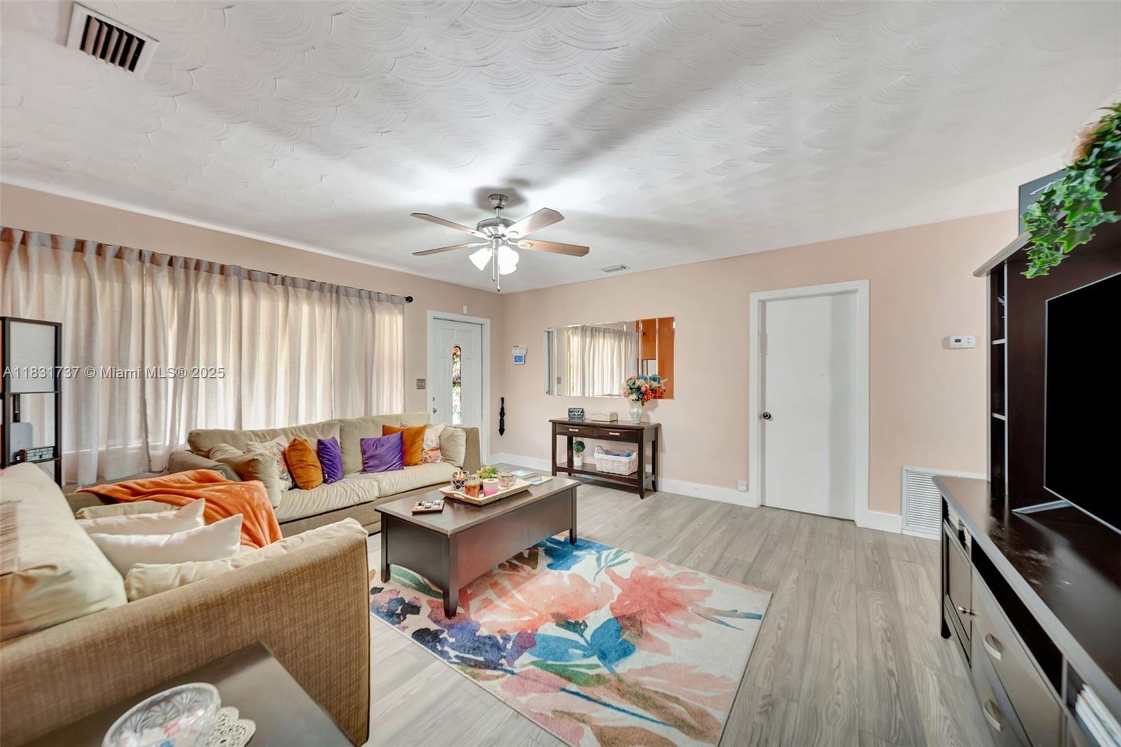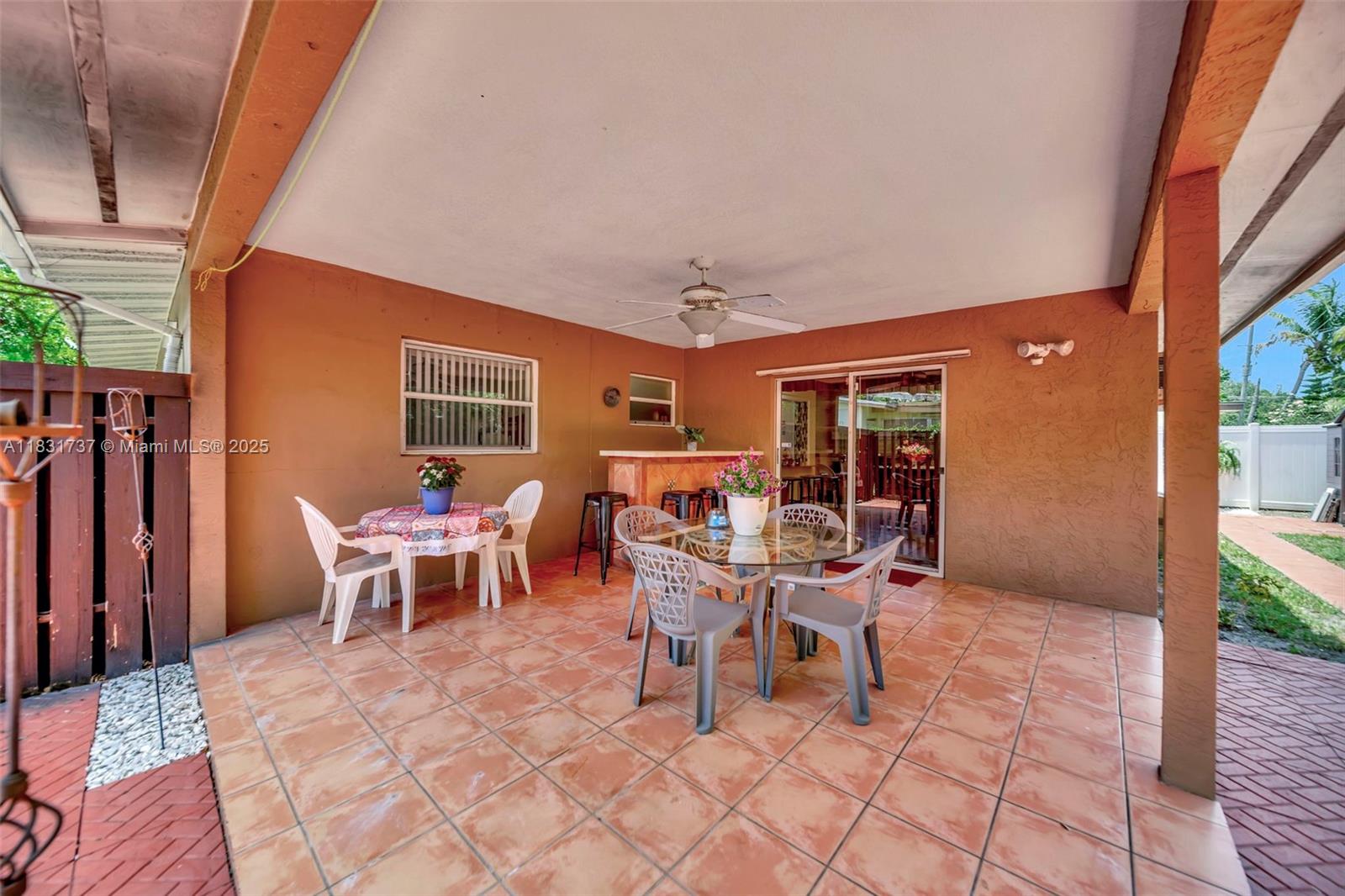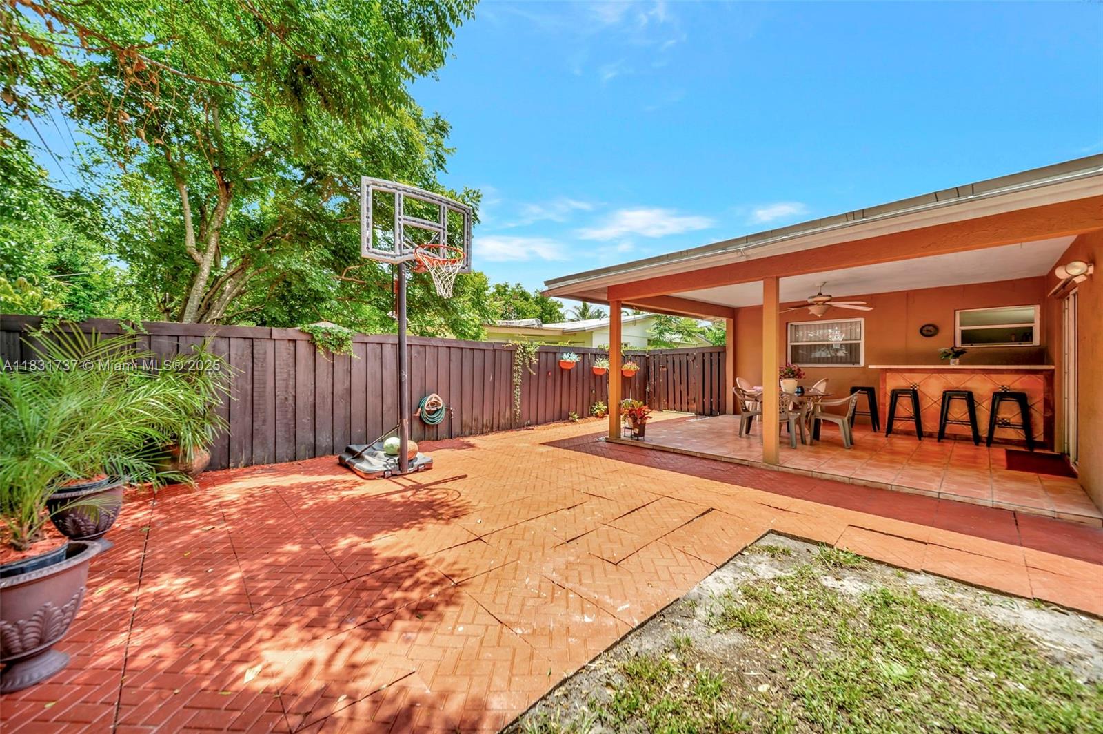 Beautiful home offers 3 bedroom, 2 bath. 1,820 sq ft of living space. The spacious layout features an upgraded kitchen, large living area, formal dining/family room, den or office, and a master bathroom with double sinks. Elegant laminate flooring flows throughout, and the eastern exposure fills the home with natural light. Large front and backyard, plus a covered patio with a snack bar, perfect for entertaining. Parking: 1-car garage and a paved driveway accommodating up to 5 large vehicles. Located in a quiet residential neighborhood just steps from T.Y. Park with its beautiful green spaces and water park. Prime location is under 10 minutes to Hard Rock Casino, FLL Airport, Memorial Hospital, major highways, shopping, dining, and more.