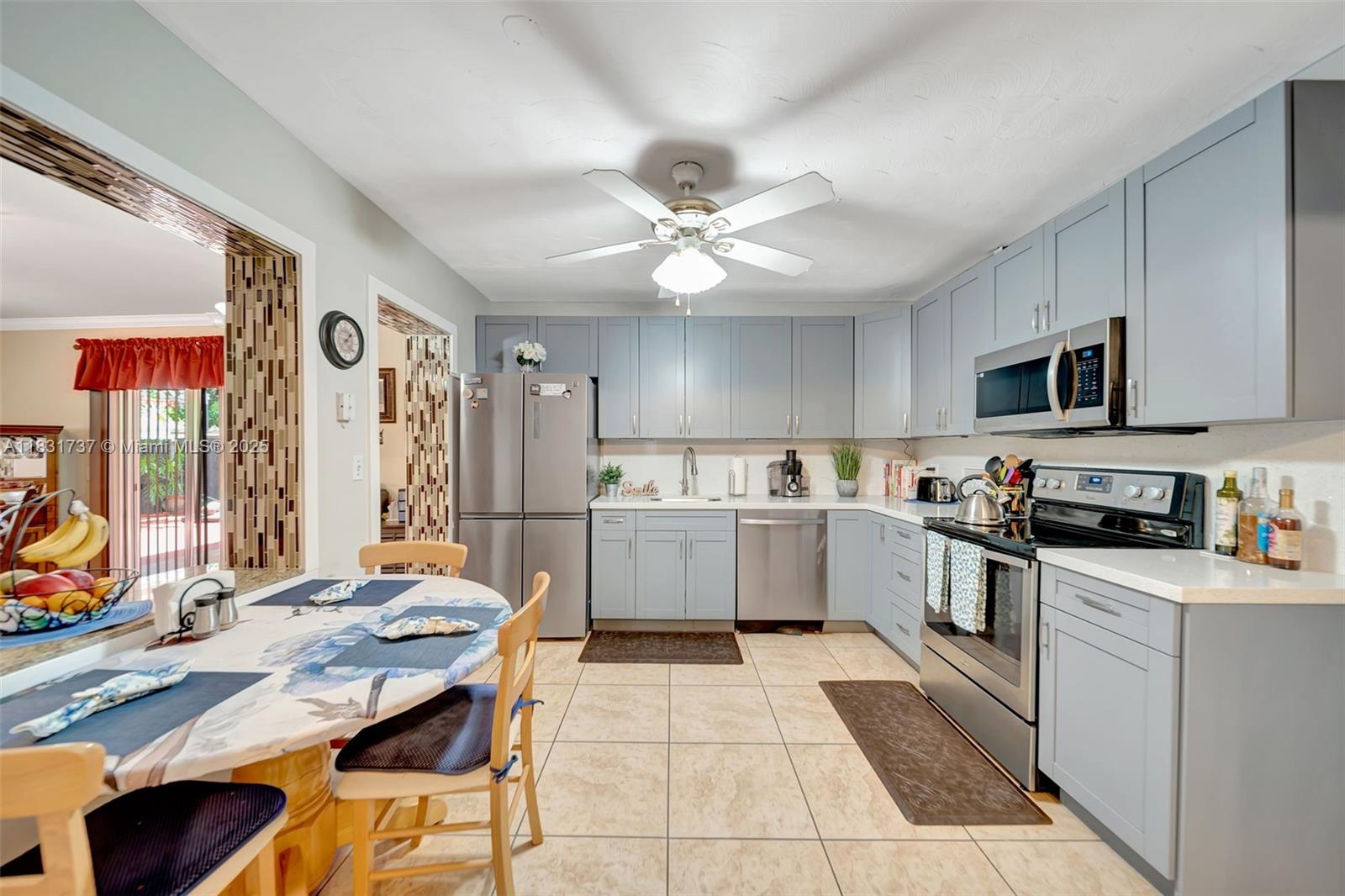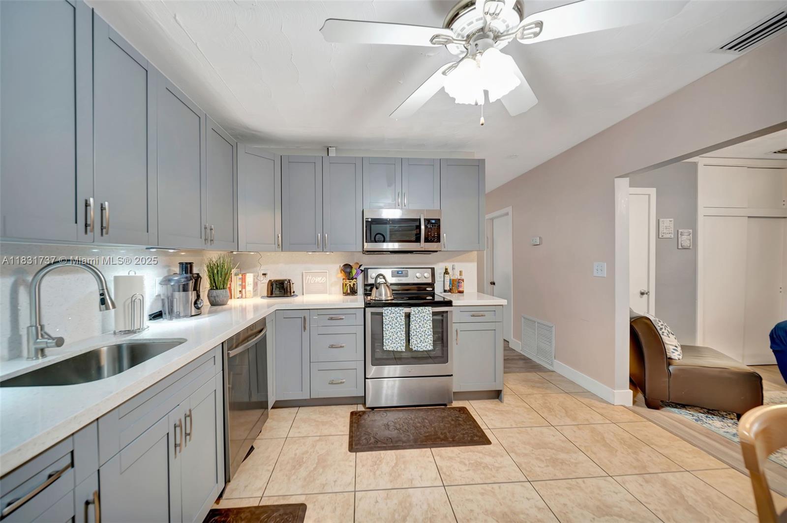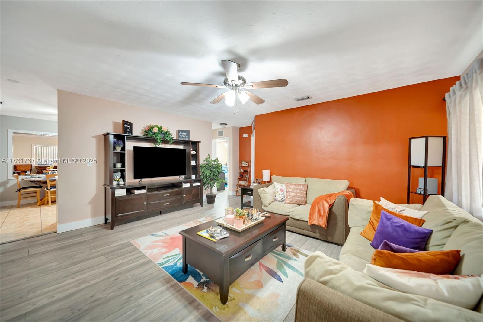 Beautiful home offers 3 bedroom, 2 bath. 1,820 sq ft of living space. The spacious layout features an upgraded kitchen, large living area, formal dining/family room, den or office, and a master bathroom with double sinks. Elegant laminate flooring flows throughout, and the eastern exposure fills the home with natural light. Large front and backyard, plus a covered patio with a snack bar, perfect for entertaining. Parking: 1-car garage and a paved driveway accommodating up to 5 large vehicles. Located in a quiet residential neighborhood just steps from T.Y. Park with its beautiful green spaces and water park. Prime location is under 10 minutes to Hard Rock Casino, FLL Airport, Memorial Hospital, major highways, shopping, dining, and more.