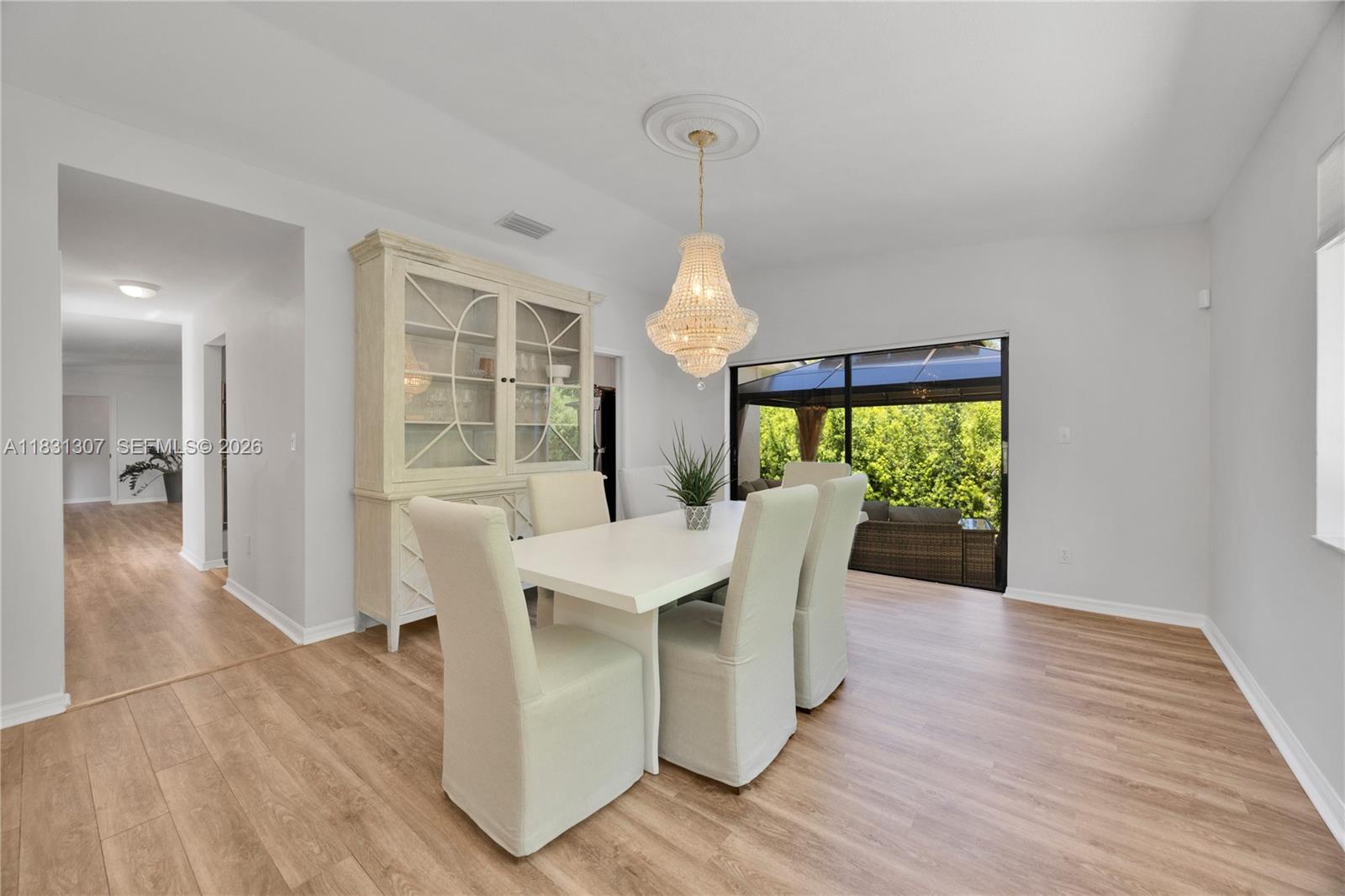 Located in the heart of Cutler Bay’s desirable Saga Bay community, this 3-bedroom, 2-bath home features a bright, open-concept design with volume ceilings and an inviting courtyard-style entrance for added privacy and curb appeal. Designed for comfortable living and entertaining, the residence offers a formal dining room, spacious bedrooms, a primary suite with separate tub and shower, generous closet space, an indoor laundry room, and a 2-car garage. The expansive backyard provides ample space for a future pool. Conveniently located near shops, restaurants, parks, and the Turnpike. A wonderful opportunity to enjoy one of Cutler Bay’s true gem neighborhoods.