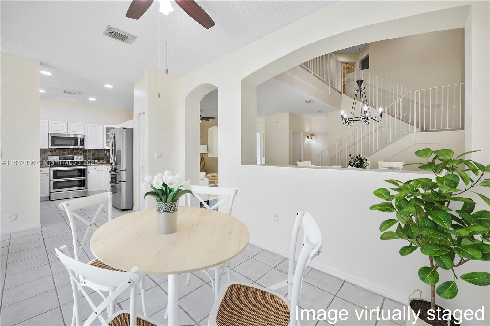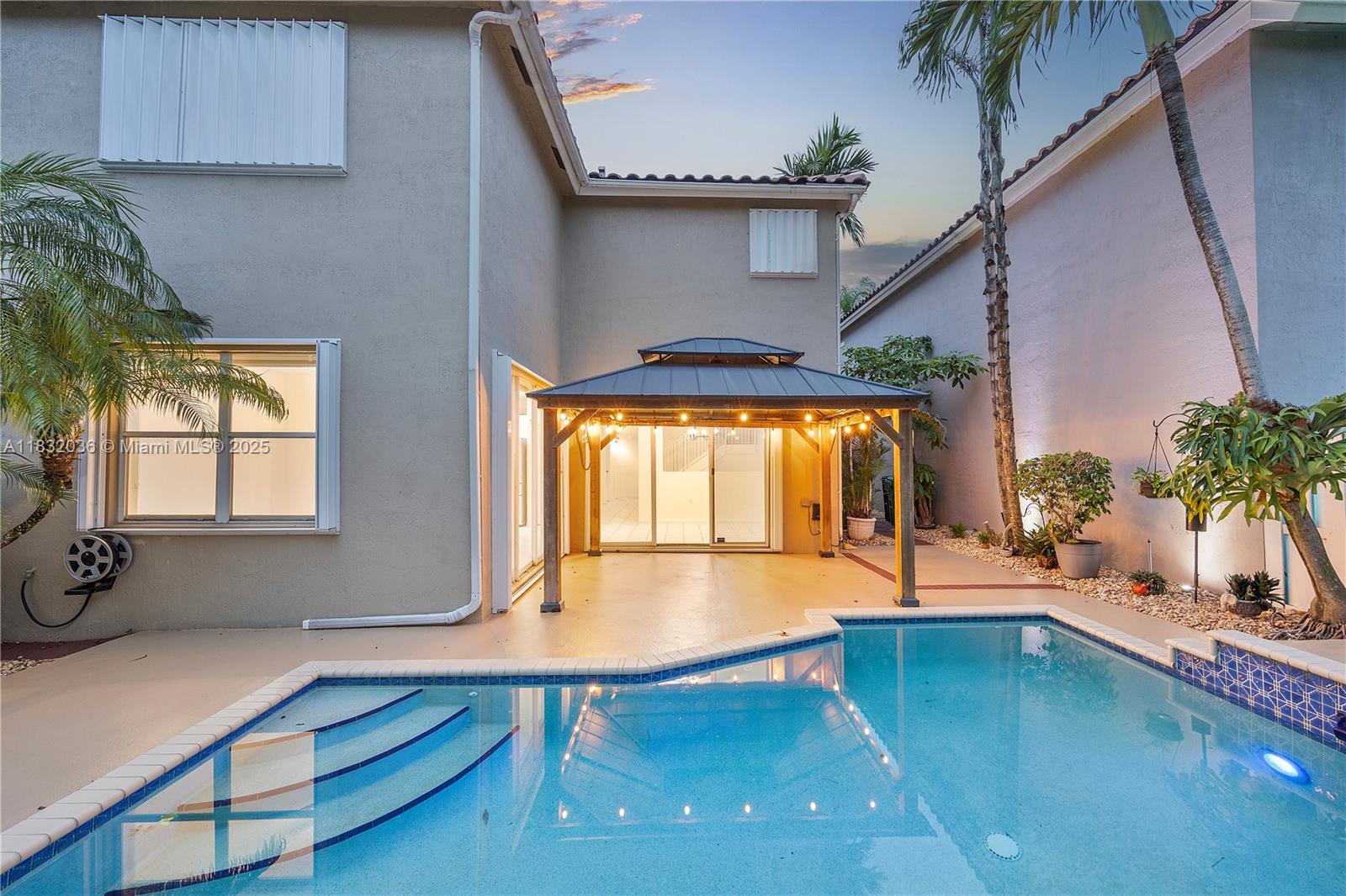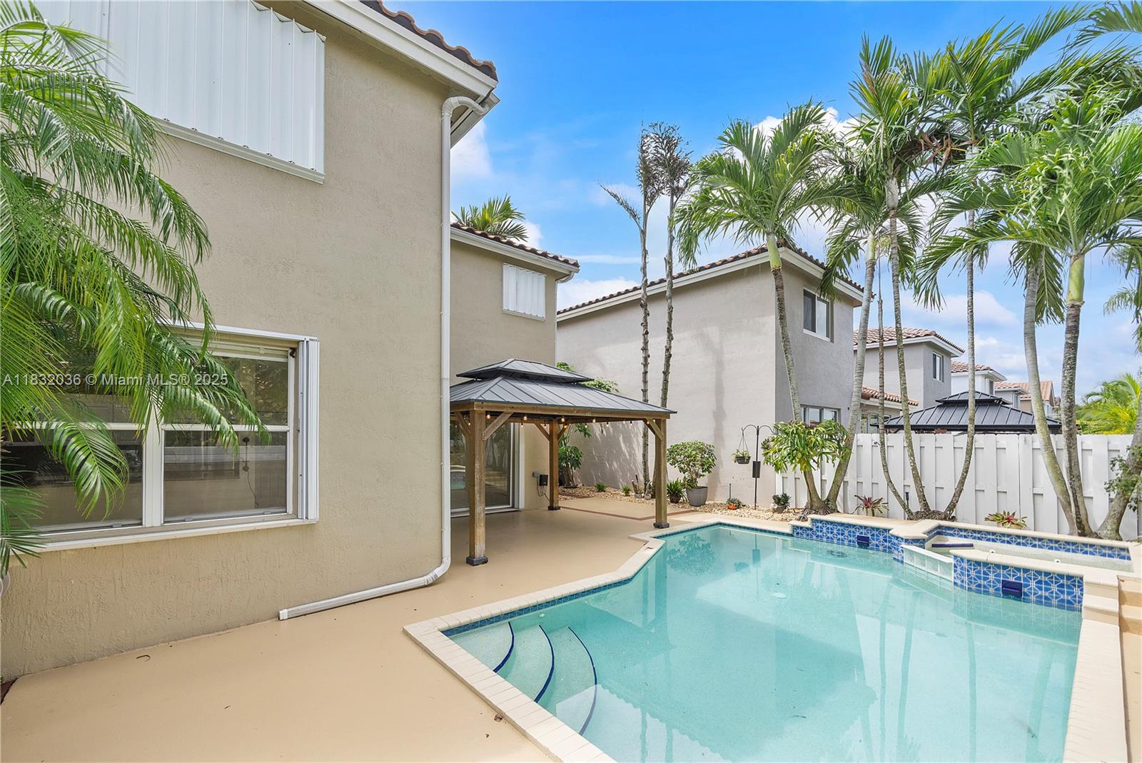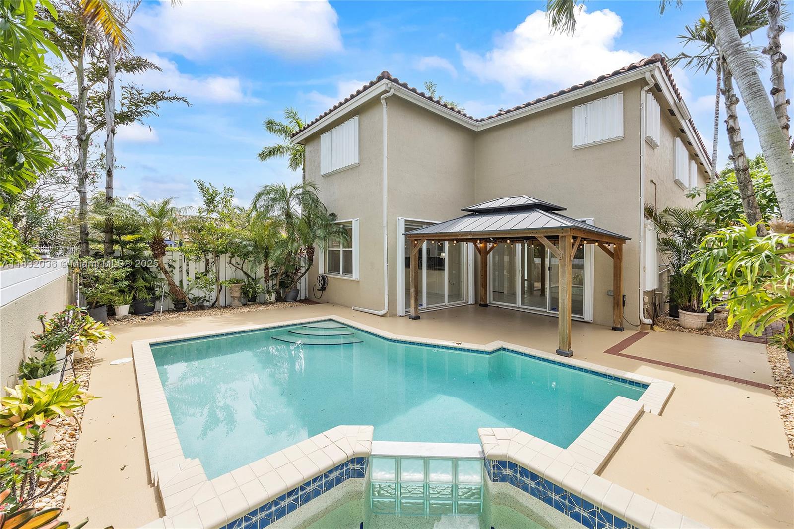 Meticulously maintained single family home on a corner lot in the desirable community of Three Lakes in Kendall. This two-story home consists of four bedrooms, two and a half bath, two-car garage & pool with gazebo in a spacious floor plan. The kitchen features granite countertops & newer stainless steel appliances. The primary bedroom offers walk-in closet, ensuite bath with standing shower & separate tub as well as build-in storage cabinets. The home is cooled via a Trane AC system and accordion shutters help to protect it from storms. Enjoy resort-style living in this waterfront community, which offers tennis courts, fitness center, kids playground, common boat ramps, bike trails, lots of guess parking & guard gate. Close to major highways, top-rated schools, shopping & dining.