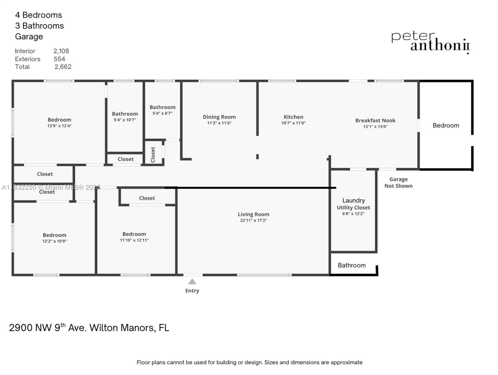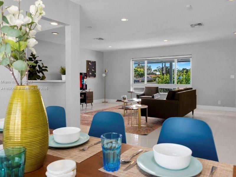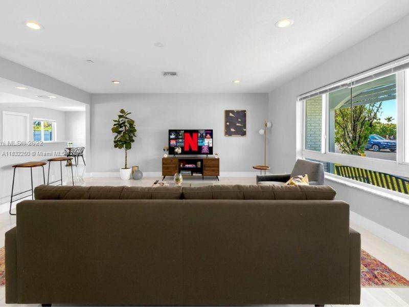 Fully renovated 4 bed, 3 bath home in corner lot in Wilton Manors. Spacious and bright! 36' x 36' tile throughout. Great for entertaining, with formal and informal dining spaces. Glass enclosed showers in bathrooms. Recessed LED lighting in living room and kitchen bar. All impact windows throughout. The fourth bedroom can be used as an office or den with private street entrance off the kitchen, and 3rd bathroom in the 2-car garage. Beautiful outdoor living space with yard, built-in grill in outside patio, with plenty of additional space for entertaining. Home is great for an investor who wants to transform to a stylish income earning duplex with 2 separate entrances and ample parking including 2 car garage!