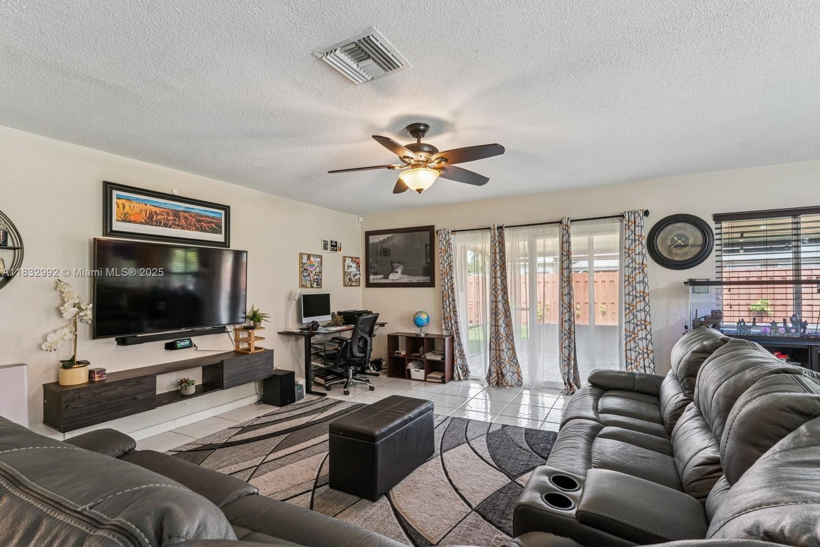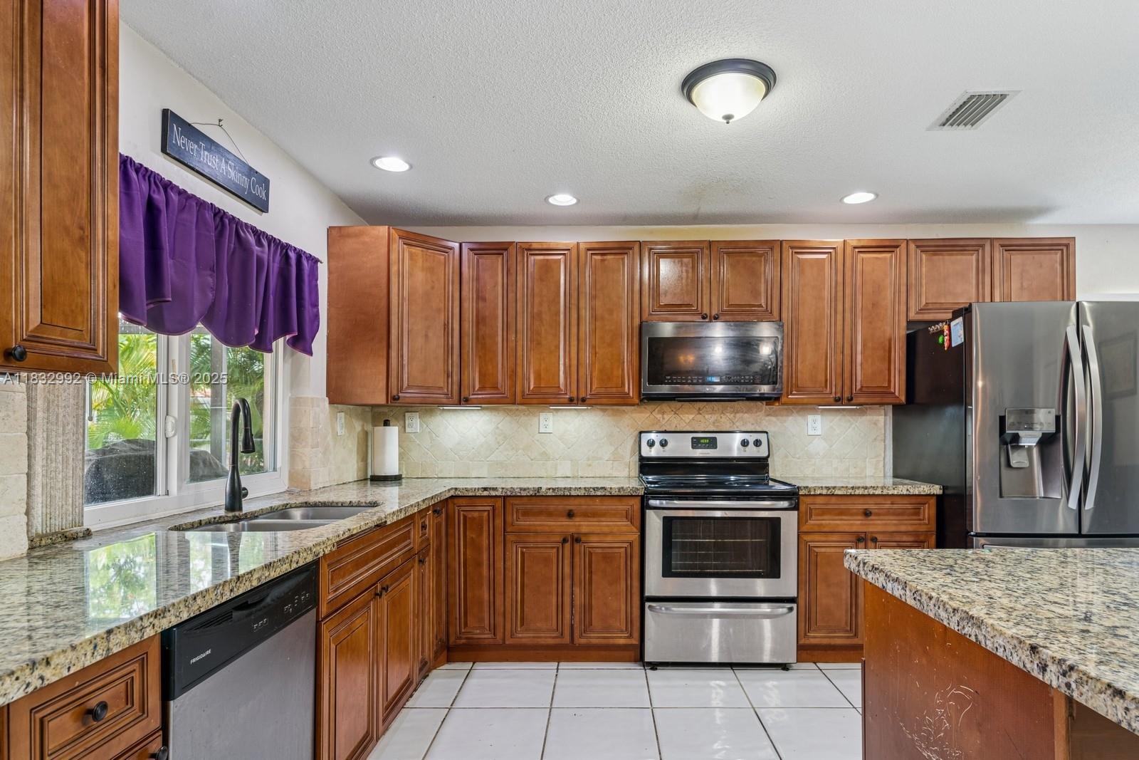 This beautifully designed 4-bedroom, 2-bath home features an open floor plan with a spacious kitchen, granite countertops, stainless steel appliances, and a center island for convenient living and entertaining. All bedrooms are generously sized, including a large primary suite with a walk-in closet. Enjoy the oversized screened-in patio and fully fenced backyard—private, spacious, and full of potential. A 2-car garage adds convenience, and the low $148 annual HOA includes a community pool, tennis and basketball courts, playground, picnic areas, and more!