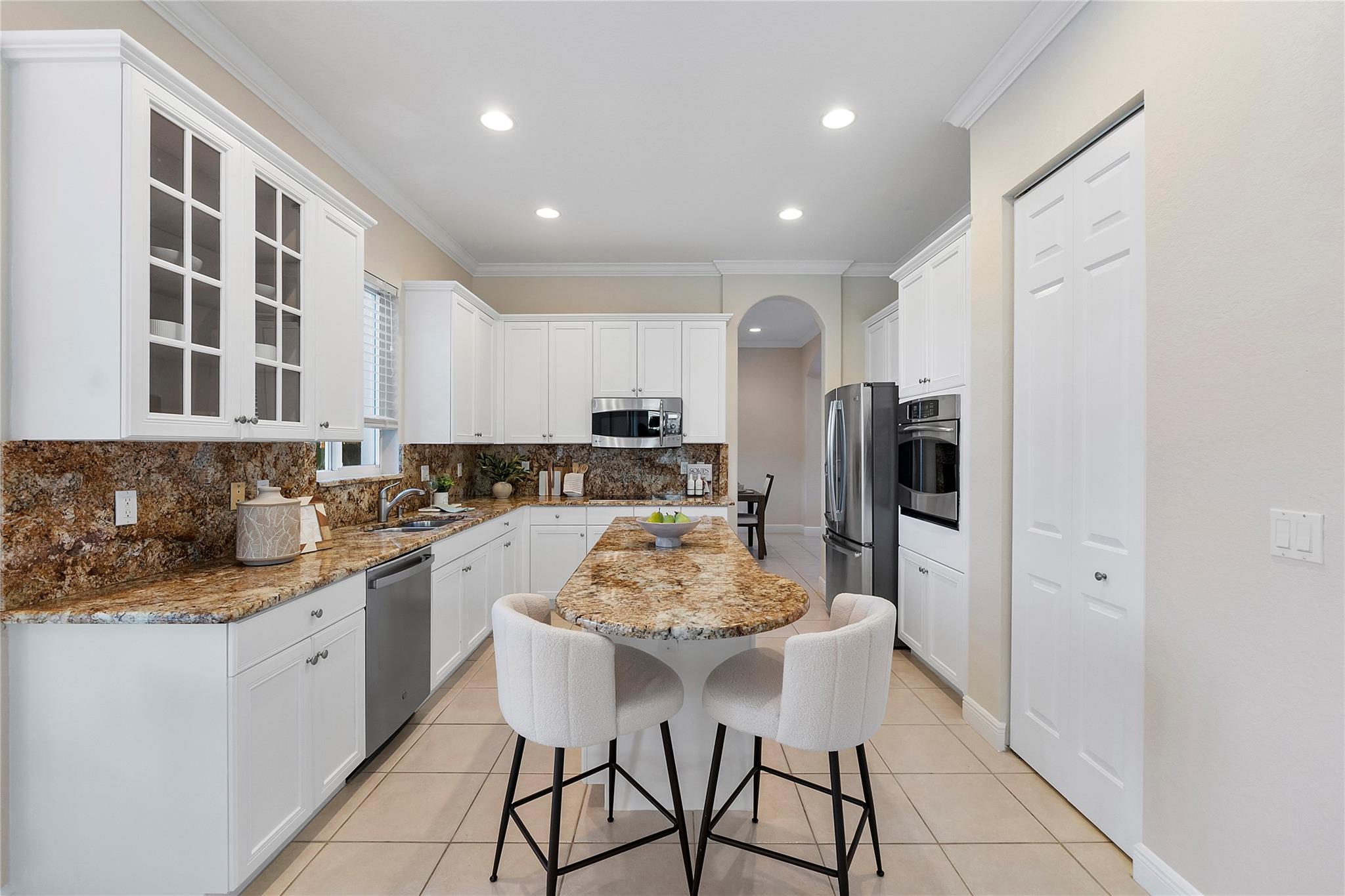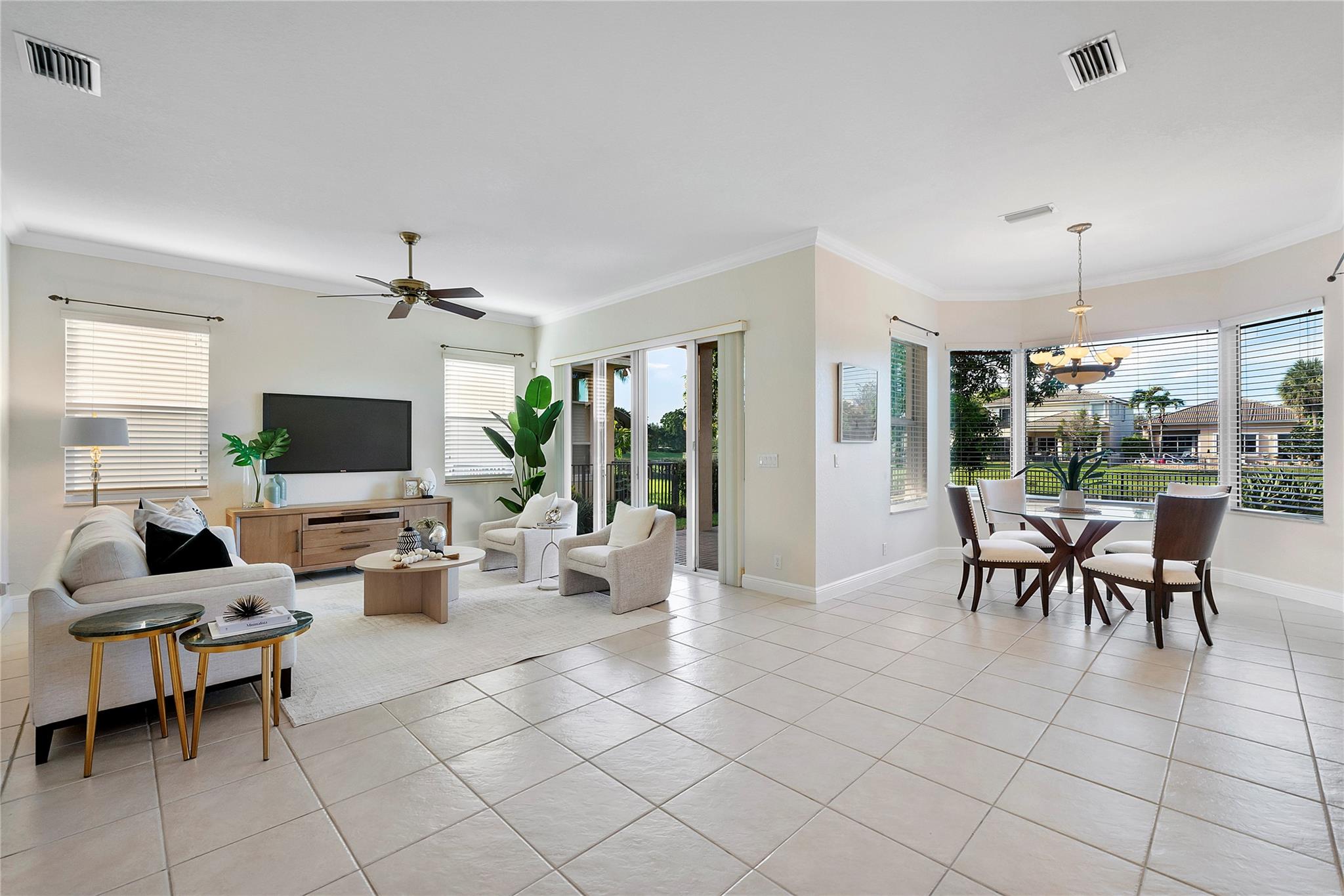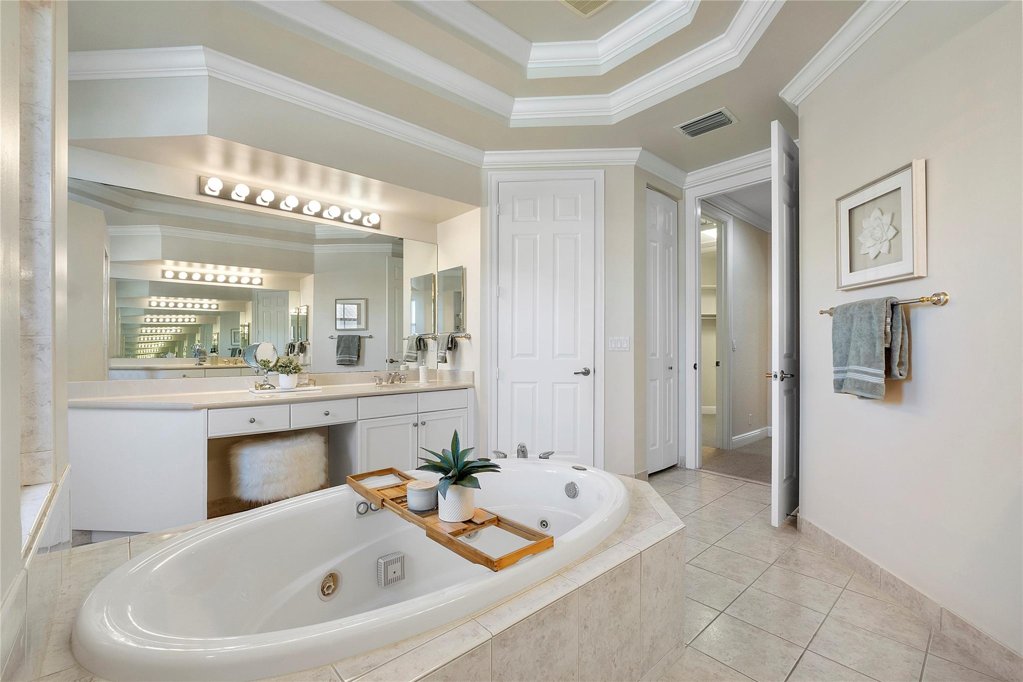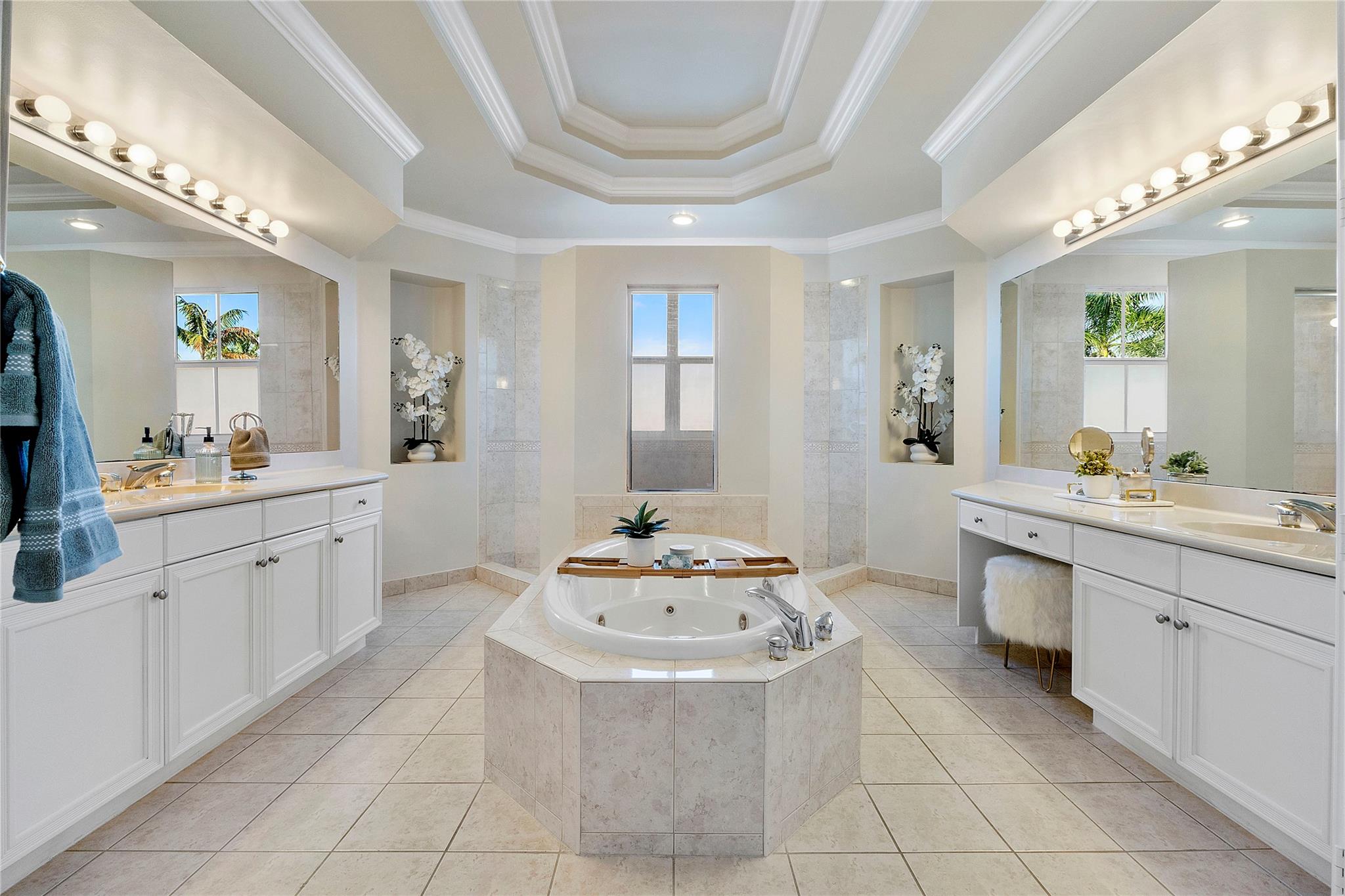 Magnificent opportunity to own this gem in prestigious Heron Bay! This meticulously maintained 5 BR/flex/office, 4BA home features soaring ceilings, elegant living & dining rooms, family room and a spacious kitchen with walk-in pantry—perfect for gatherings. Enjoy tranquil water views from your private tropical oasis with pool, hot tub, and mature mango & sapodilla trees. The luxurious primary suite boasts a sitting area, balcony, 2 custom walk-in closets, and spa bath with Jacuzzi tub & walk-through shower. Impact windows/doors, crown molding, tray ceilings & 3-car tiled garage. Sprinkler system pulls from the lake for lower water bill. Resort-style living with 2 clubhouses, pools, gyms, tennis, pickleball, basketball, walking trails, 3 gated entrances & more. Your dream home awaits!