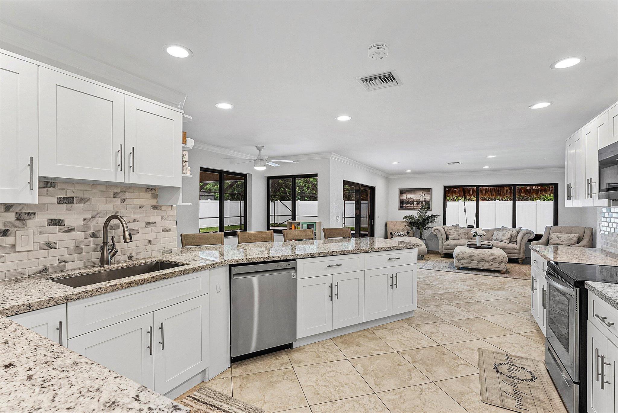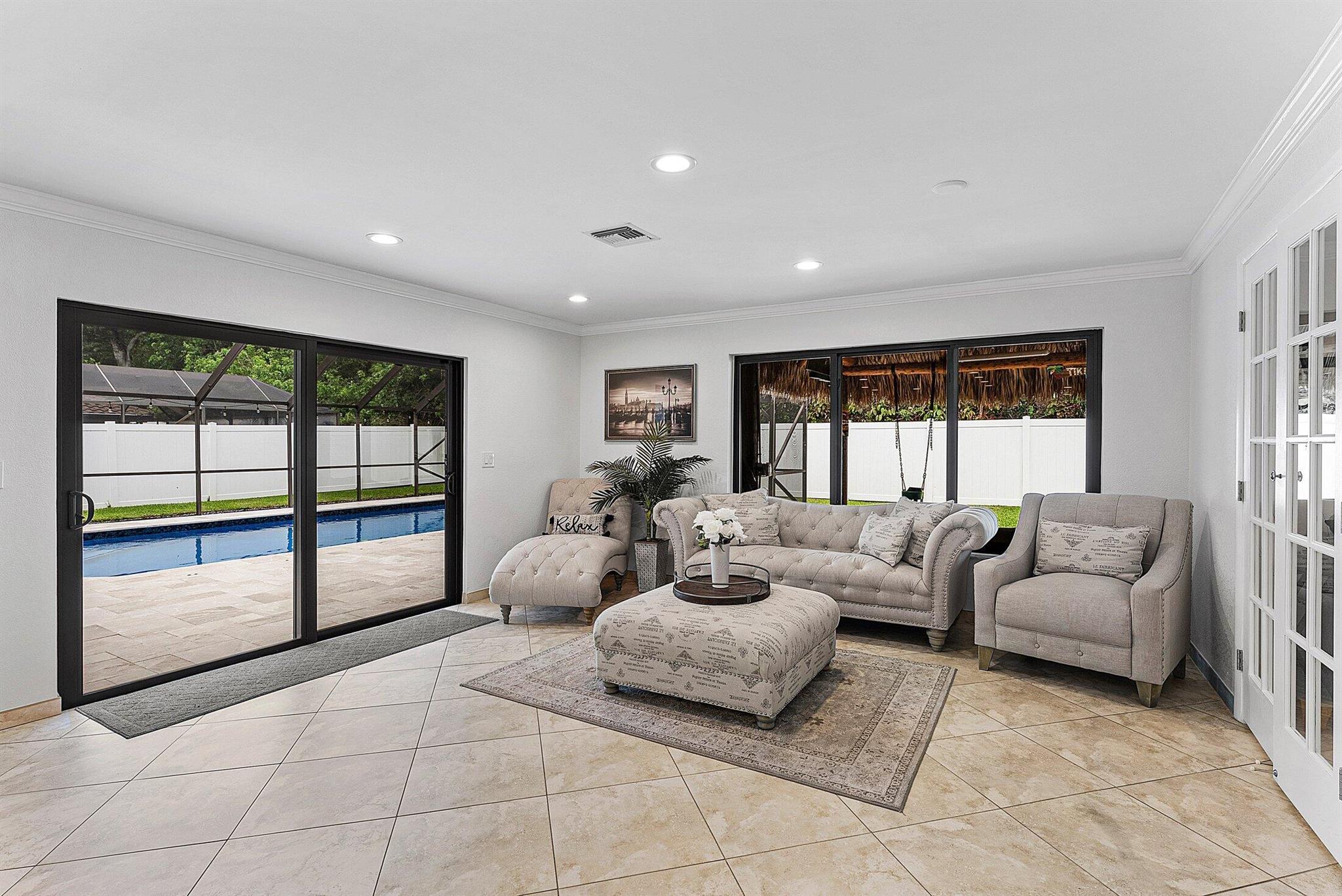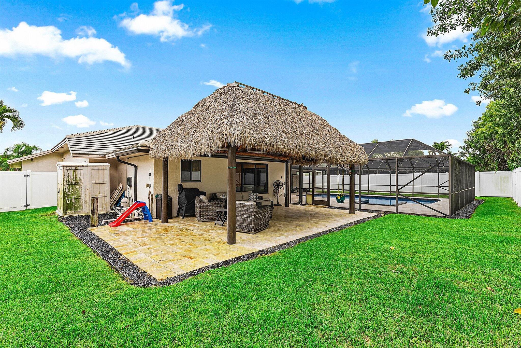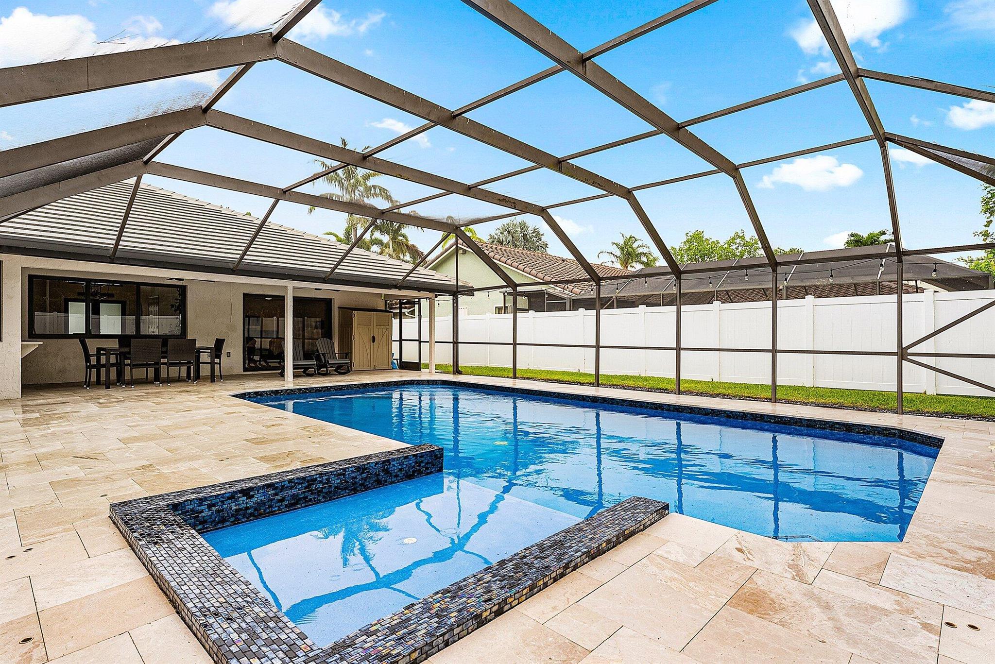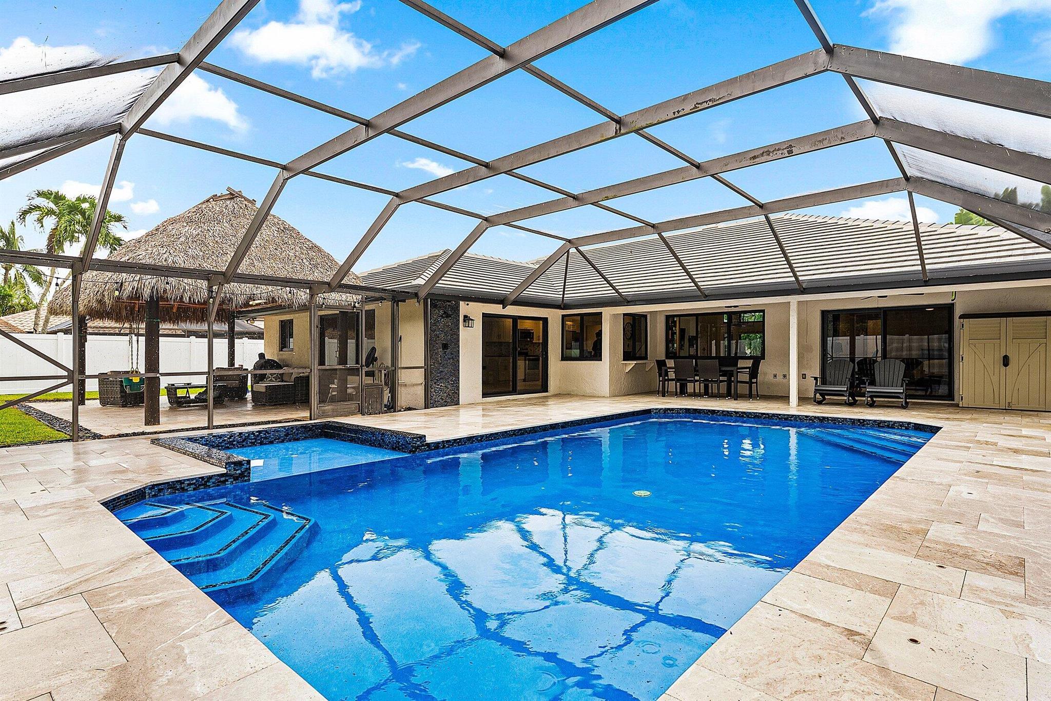 Rare opportunity in Boca Rio Heights, one of Boca's best-kept secrets! Tucked away in this quiet, hidden gem of a neighborhood, this 4 bedroom, 2.5-bath pool home offers the perfect blend of privacy, space, and style. Enjoy lush landscaping and peaceful golf course views from your backyard oasis. Inside, a wide-open & fully updated split floor plan is designed for both comfort and entertaining, featuring vaulted ceilings, impact windows, and an abundance of natural light. Additional upgrades include a 3-car garage, newer AC units, roof, and water heater, plus a tiki hut & new travertine pool deck that completes your tropical retreat. Homes in this neighborhood rarely come to market & a home like this in Boca for less than a million is almost unheard of. Schedule your showing TODAY!