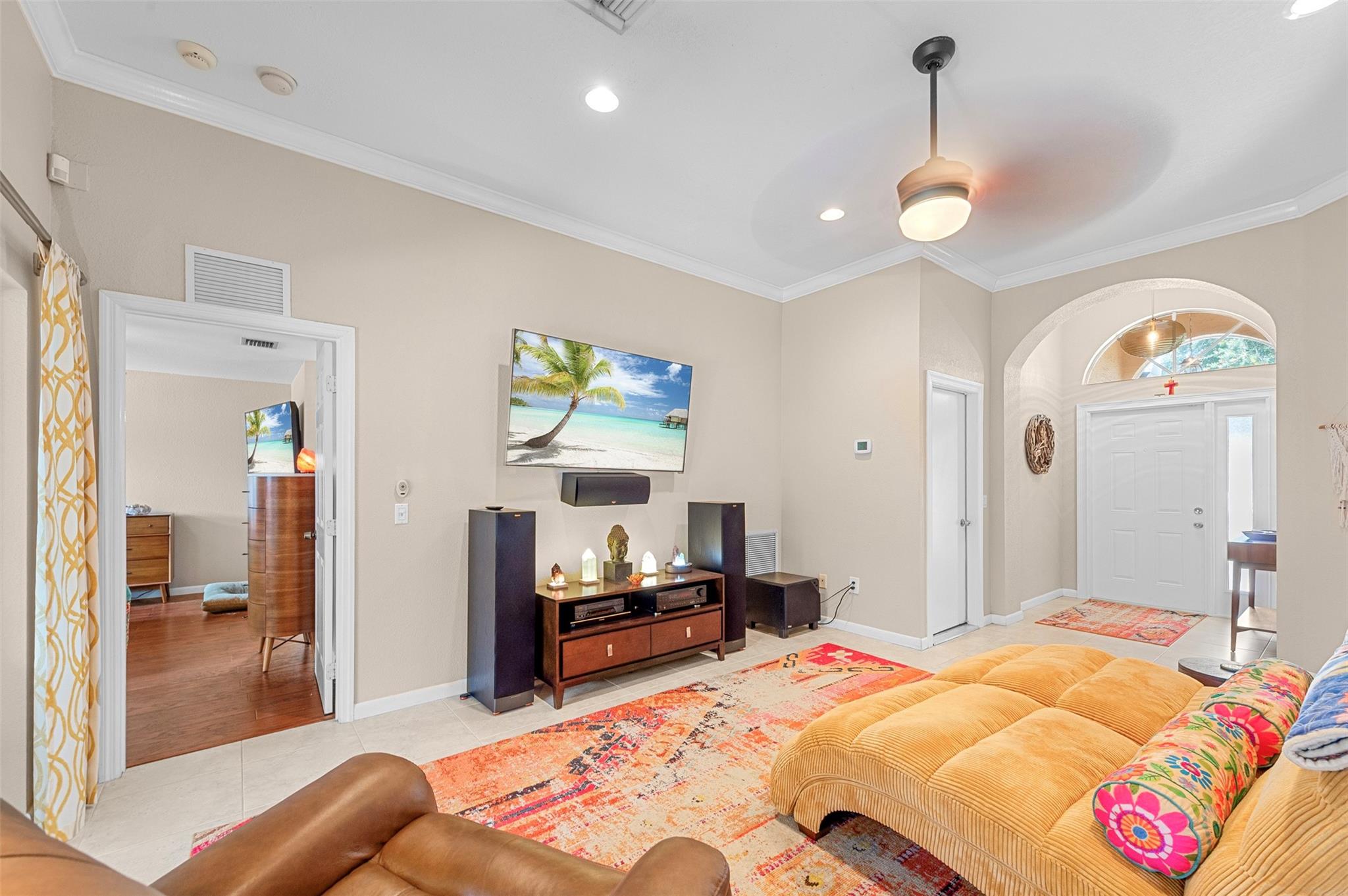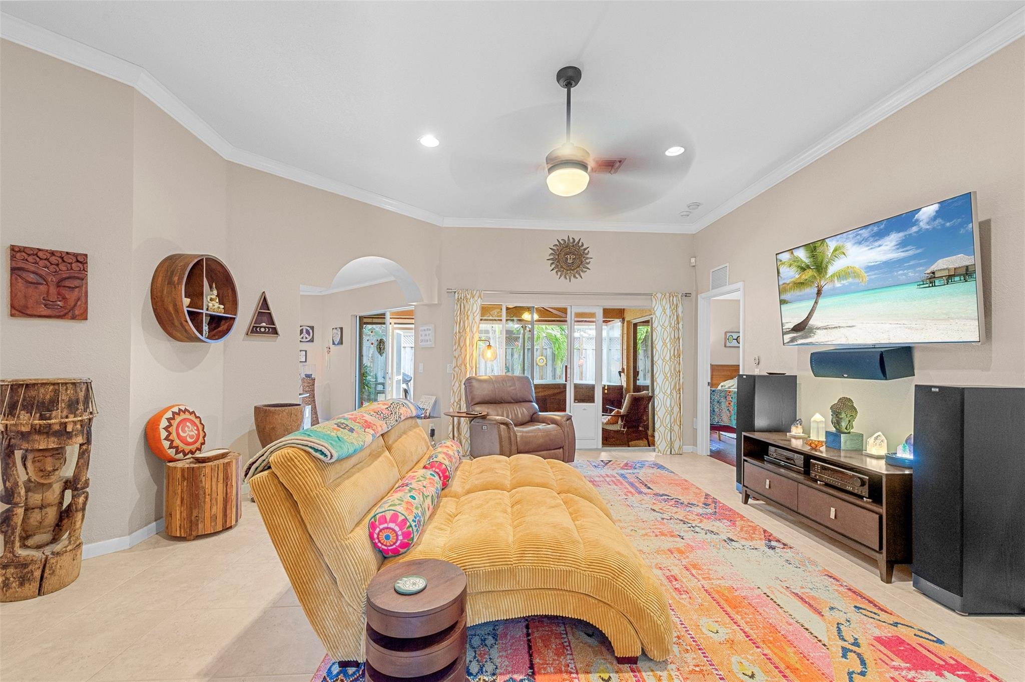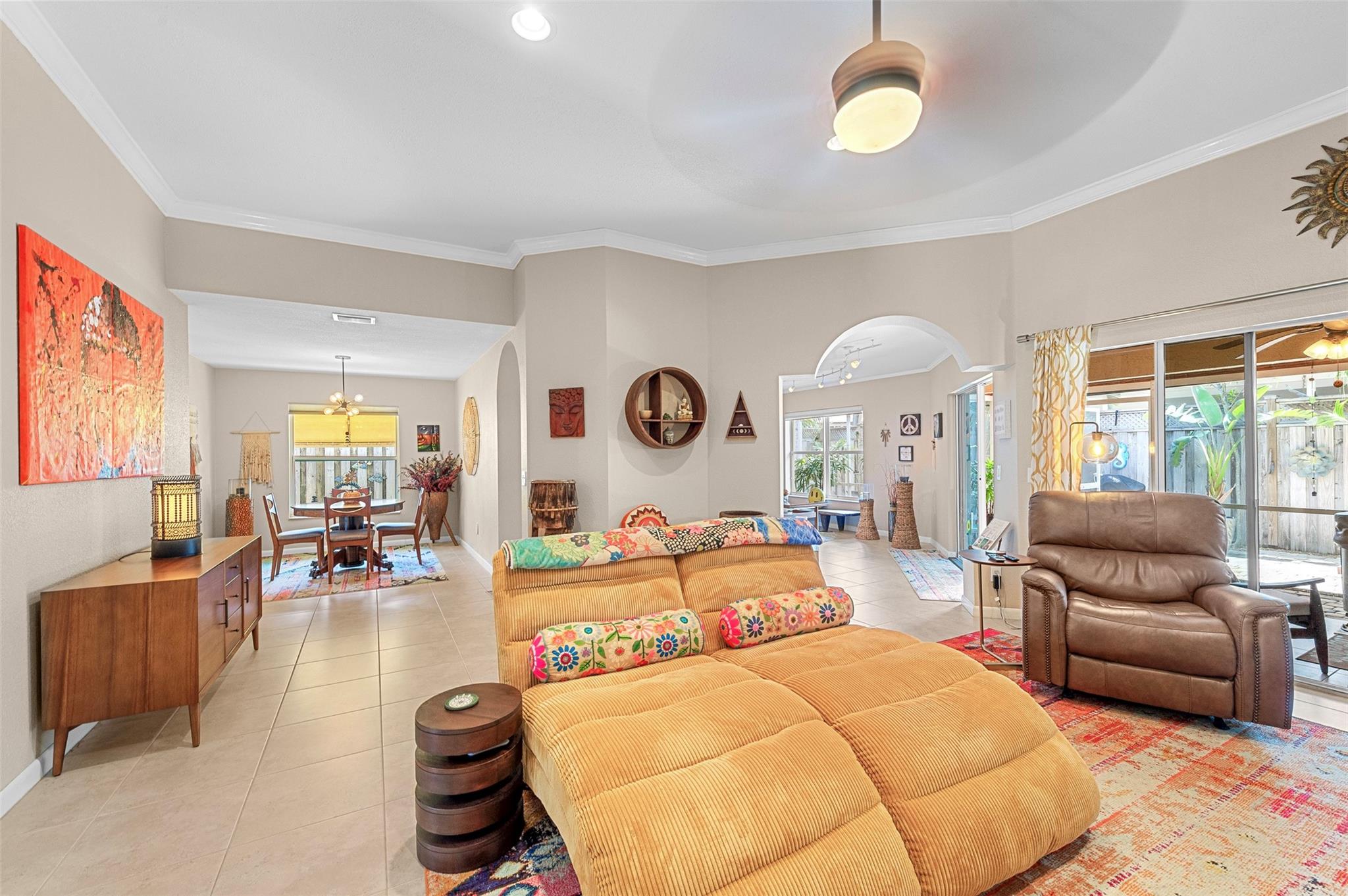 Gorgeous and unique 3/2 home built in 2005 with a 2-car garage. Well-maintained with tile floors throughout main areas and laminate in spacious bedrooms. Enjoy high ceilings, crown molding, recessed lighting, and open kitchen with stainless steel appliances and gas range. Upgrades include custom built-out closets, main bath with tub/separate shower, 2018 AC with mini-split cooling garage/laundry area, tankless (gas) water heater and attic. Backyard offers maintenance free artificial turf, storage sheds and Zen Garden. Oversized driveway accommodates up to 6 cars. NO HOA, underground electric lines. Located just minutes from beaches, shopping, dining, and highways. This home is in great condition and is the perfect blend of comfort, style, and convenience.  Move in ready!