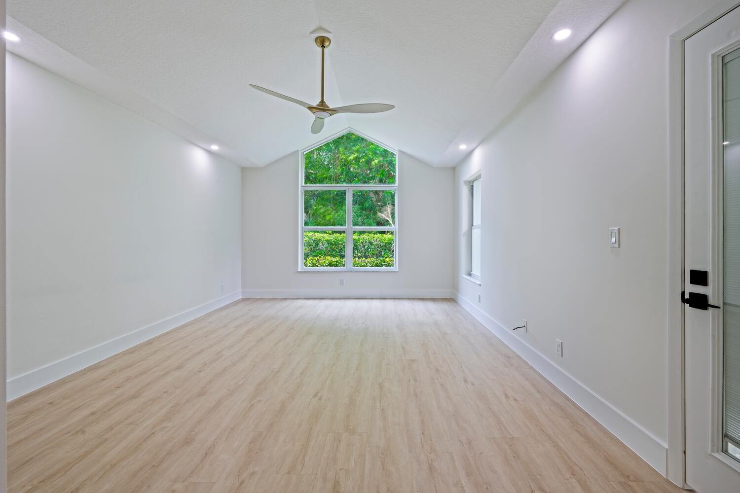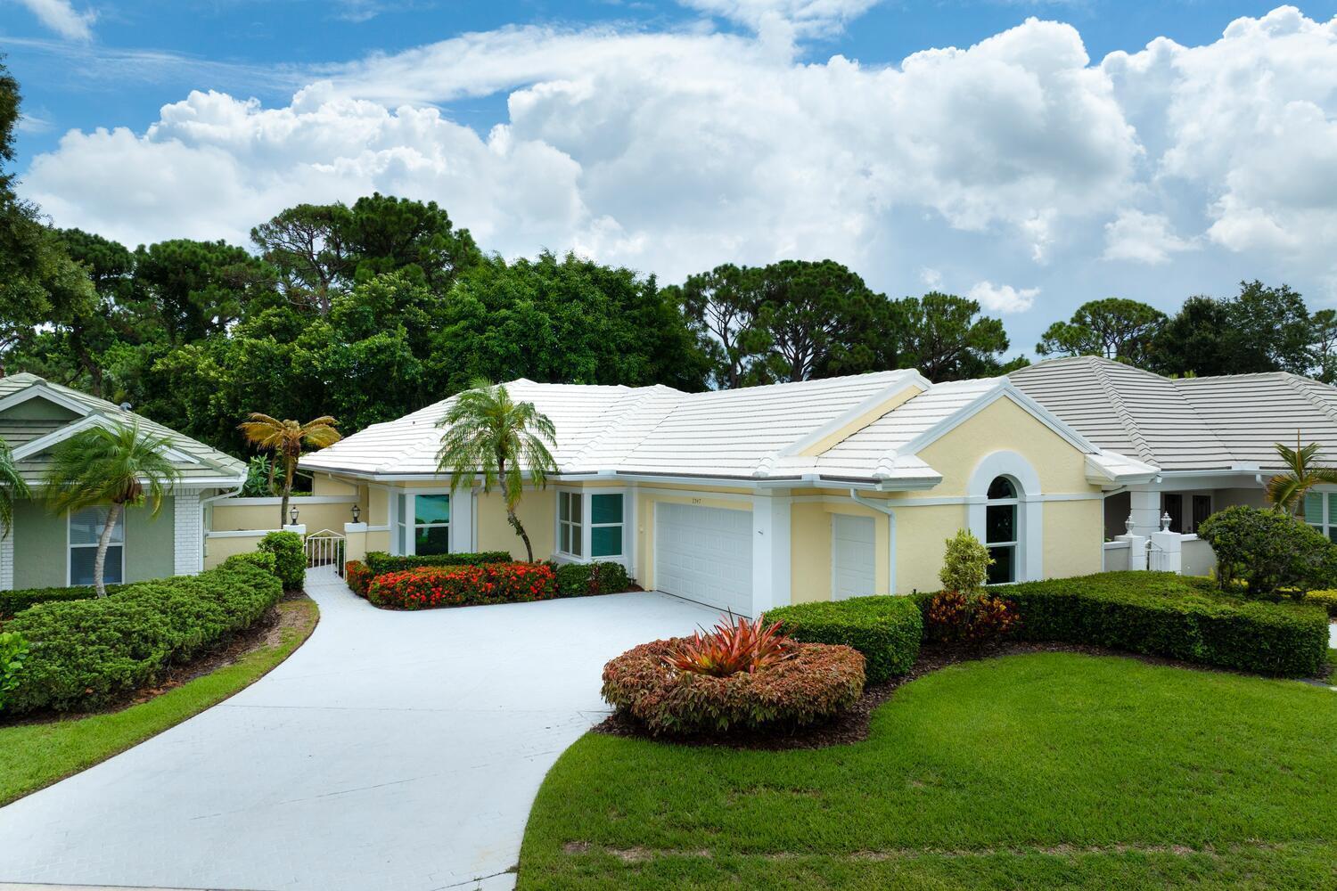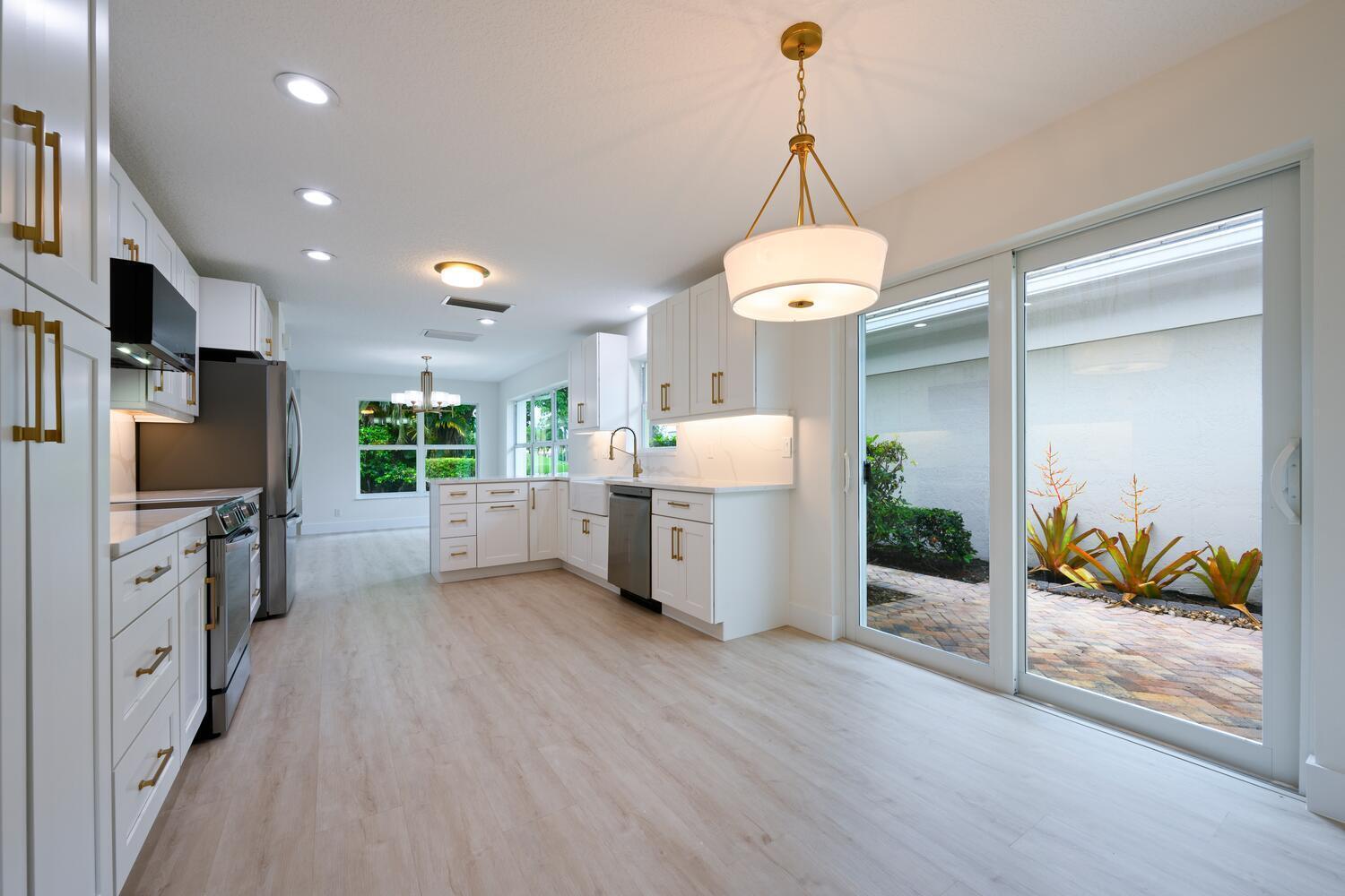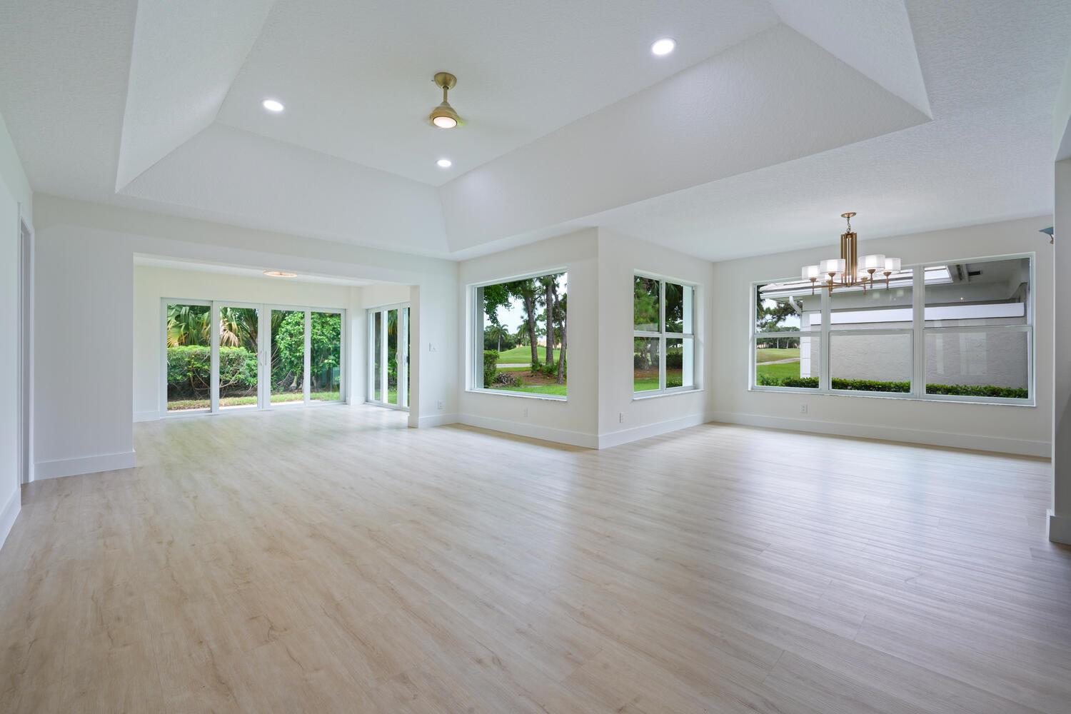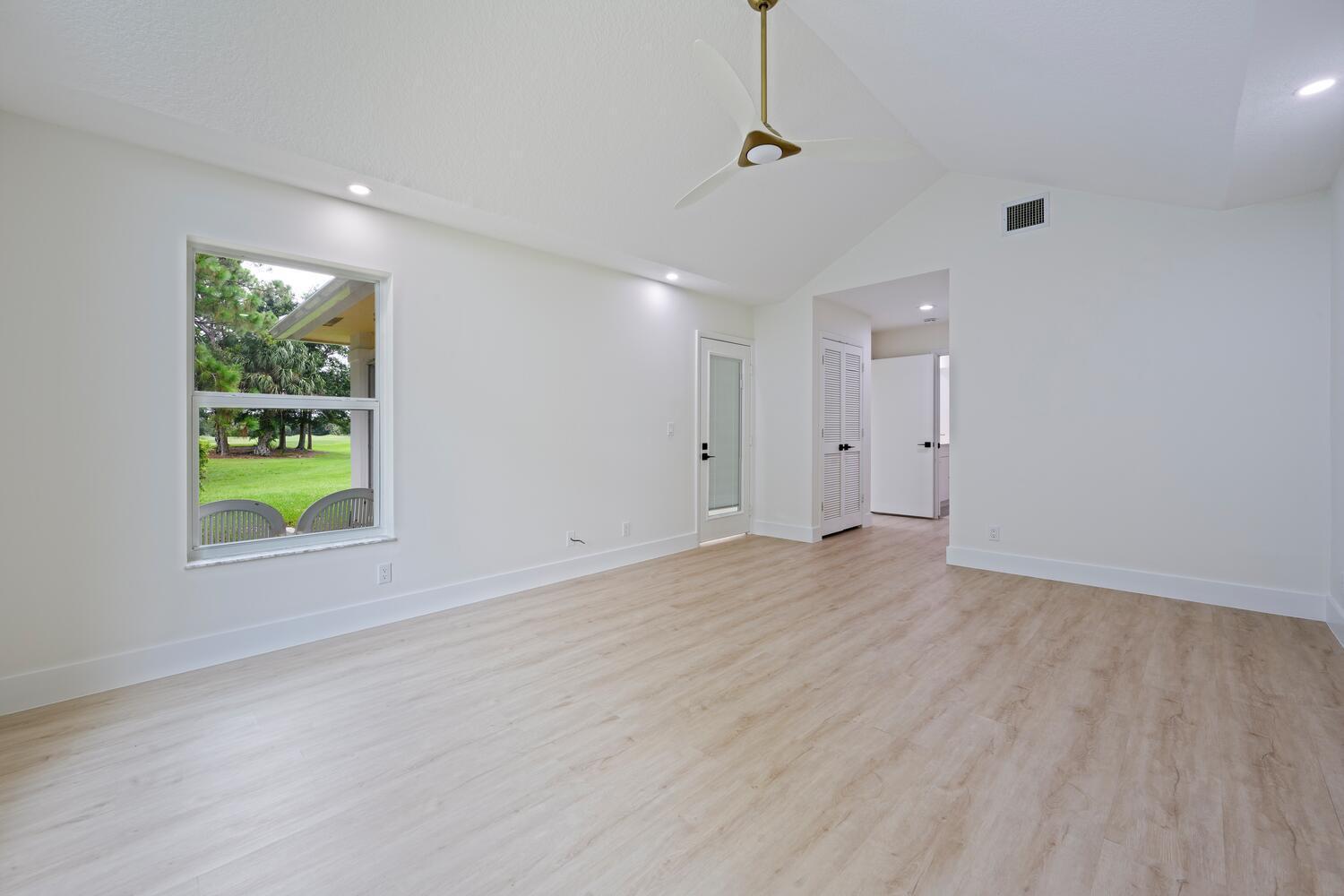 This home in Monarch Country Club is located on the 15th fairway of the Arnold Palmer Championship Golf Course, offering beautiful views from the living room. It features three bedrooms, two bathrooms, and a two-car garage with space for a golf cart. Recently remodeled, upgrades include a newer roof with leaf guard gutters, impact-resistant windows, and light oak luxury vinyl tile. The primary bathroom has modern Euro-style cabinets, and the kitchen includes new LG appliances and a wine fridge. An enclosed porch provides additional relaxation space. The monthly HOA fee of $541 covers gate maintenance, lawn care, cable, high-speed internet, and biannual roof cleaning, while the exterior, walkways, and driveways are pressure cleaned and repainted every six years.