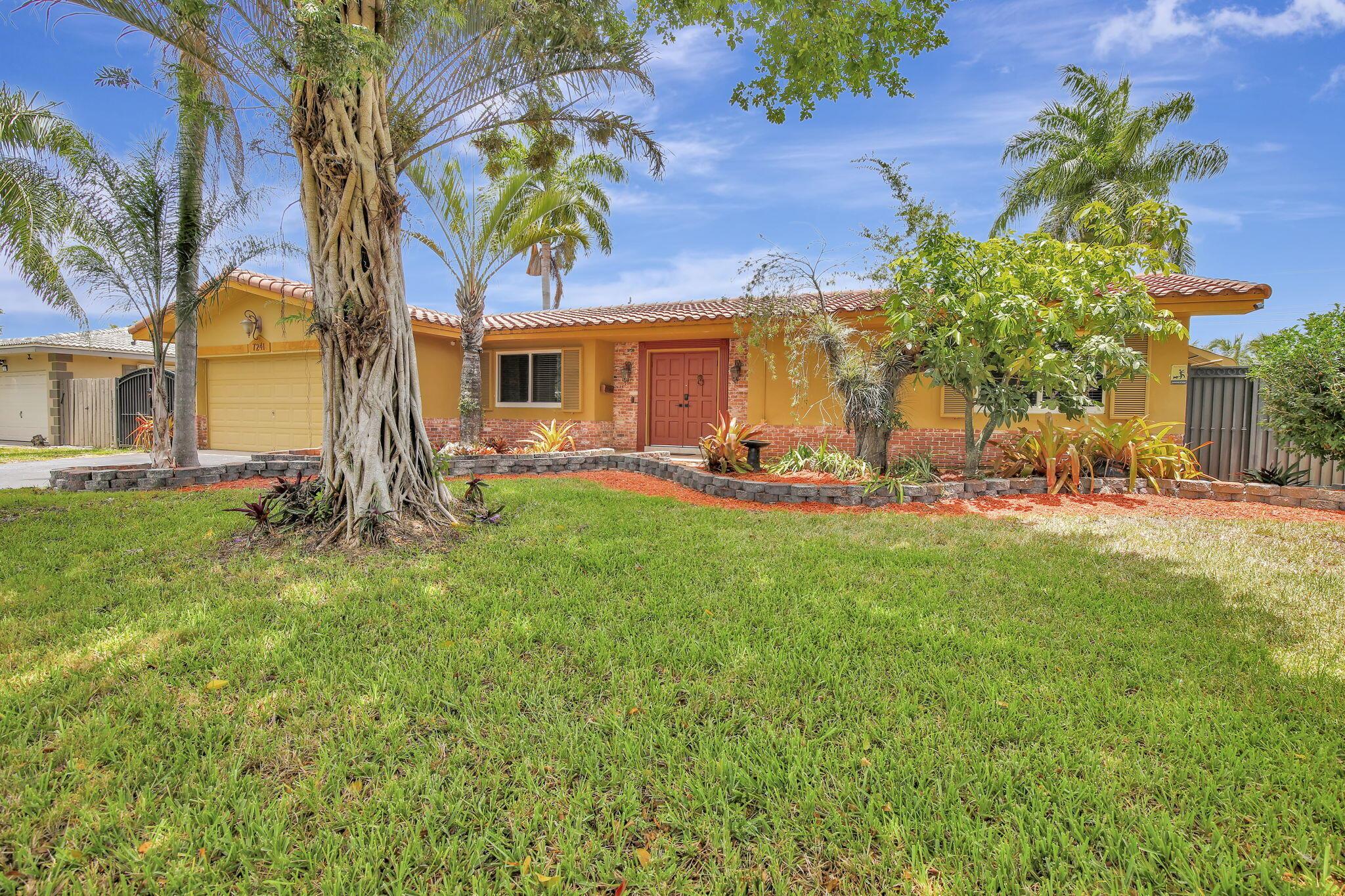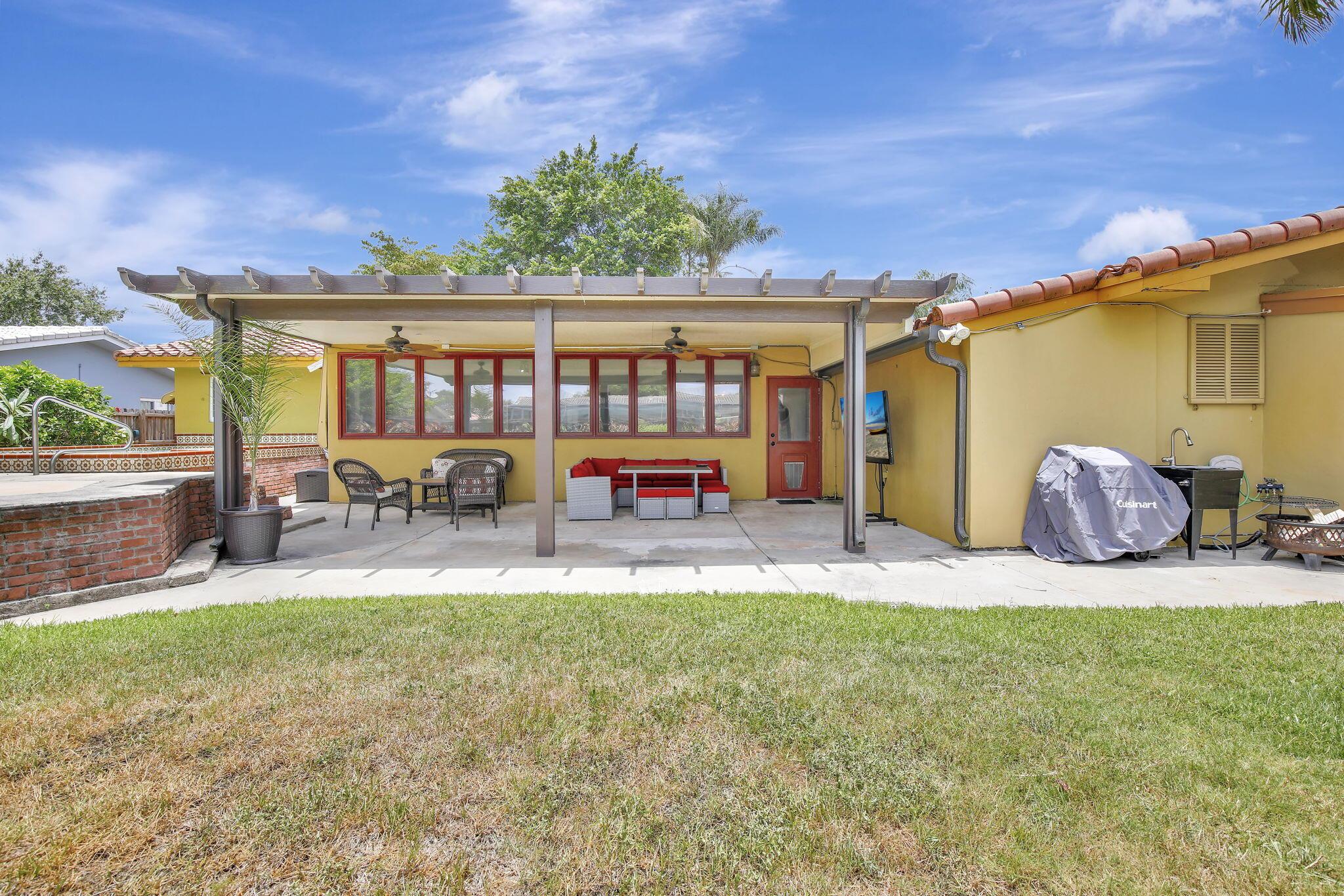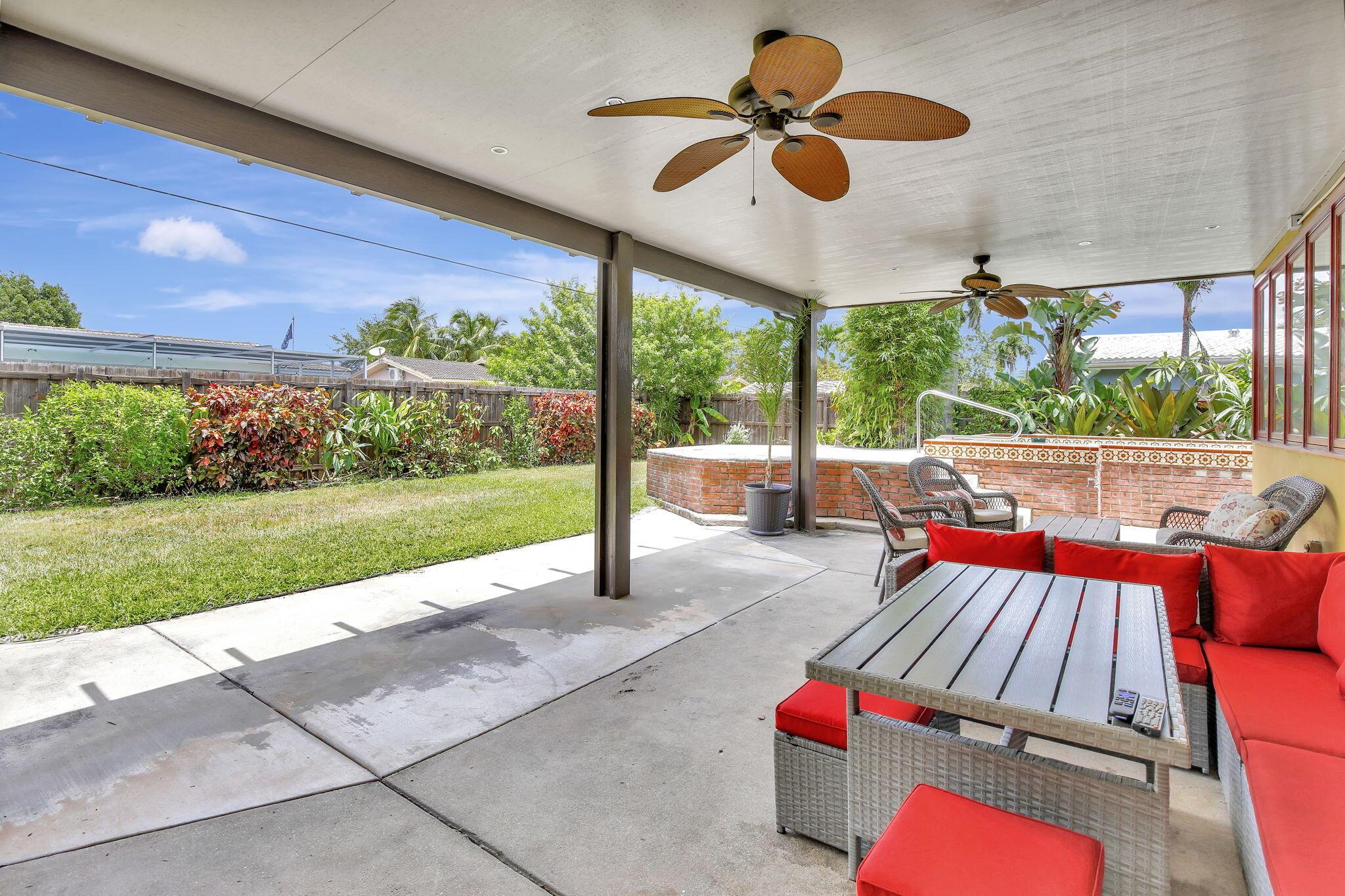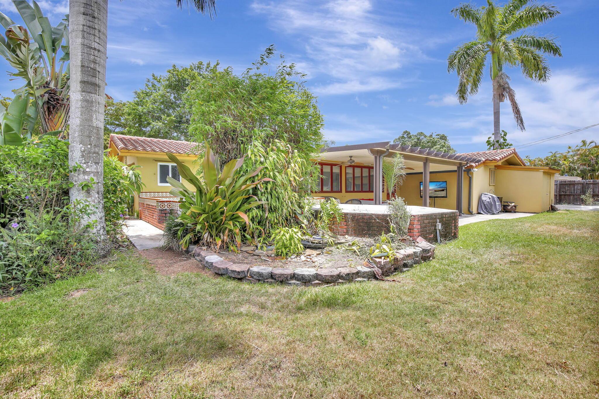 This well-kept four-bedroom, two-bathroom home offers fantastic savings with no HOA fees. It features plenty of storage space for boats and RVs, a securely fenced yard, and 10-foot metal gates. Inside, you'll find a spacious layout with coffered ceilings, a formal dining area, and a kitchen showcasing beautiful Indian granite countertops. Designed for comfort and peace of mind, the home includes high-impact windows, full storm protection, a sturdy barrel tile roof, and a transferable termite warranty. The enclosed flex space is great for a home office, gym, or game room. Outside, relax under a covered pergola with fans and lighting, take a dip in the sparkling pool, or enjoy the peaceful pond with a soothing fountain.