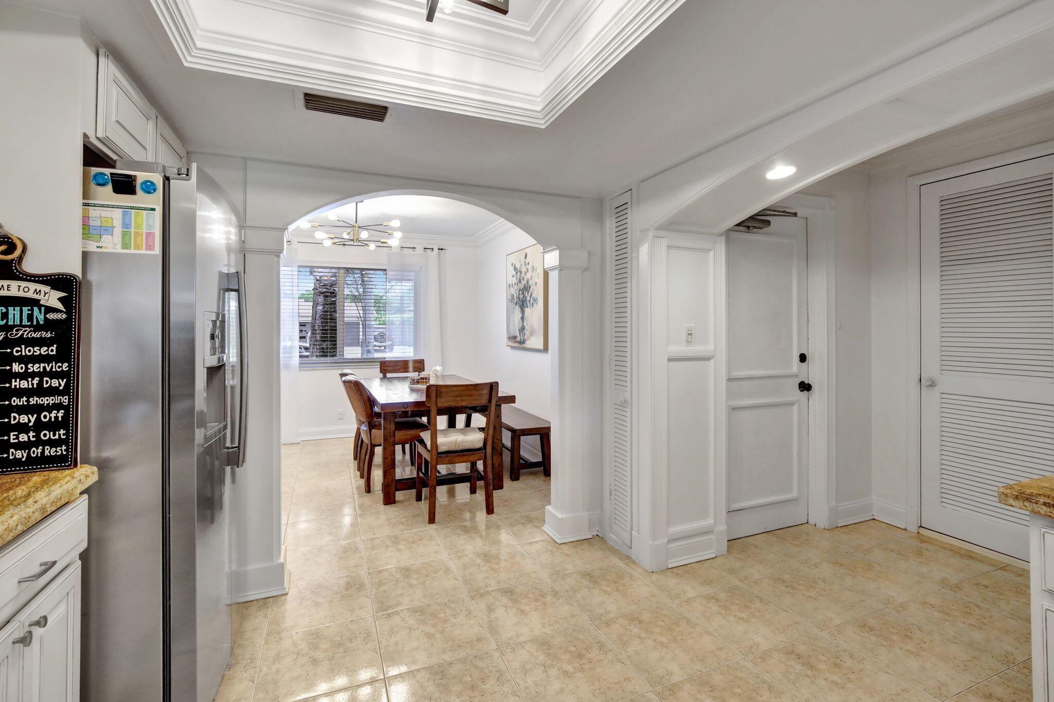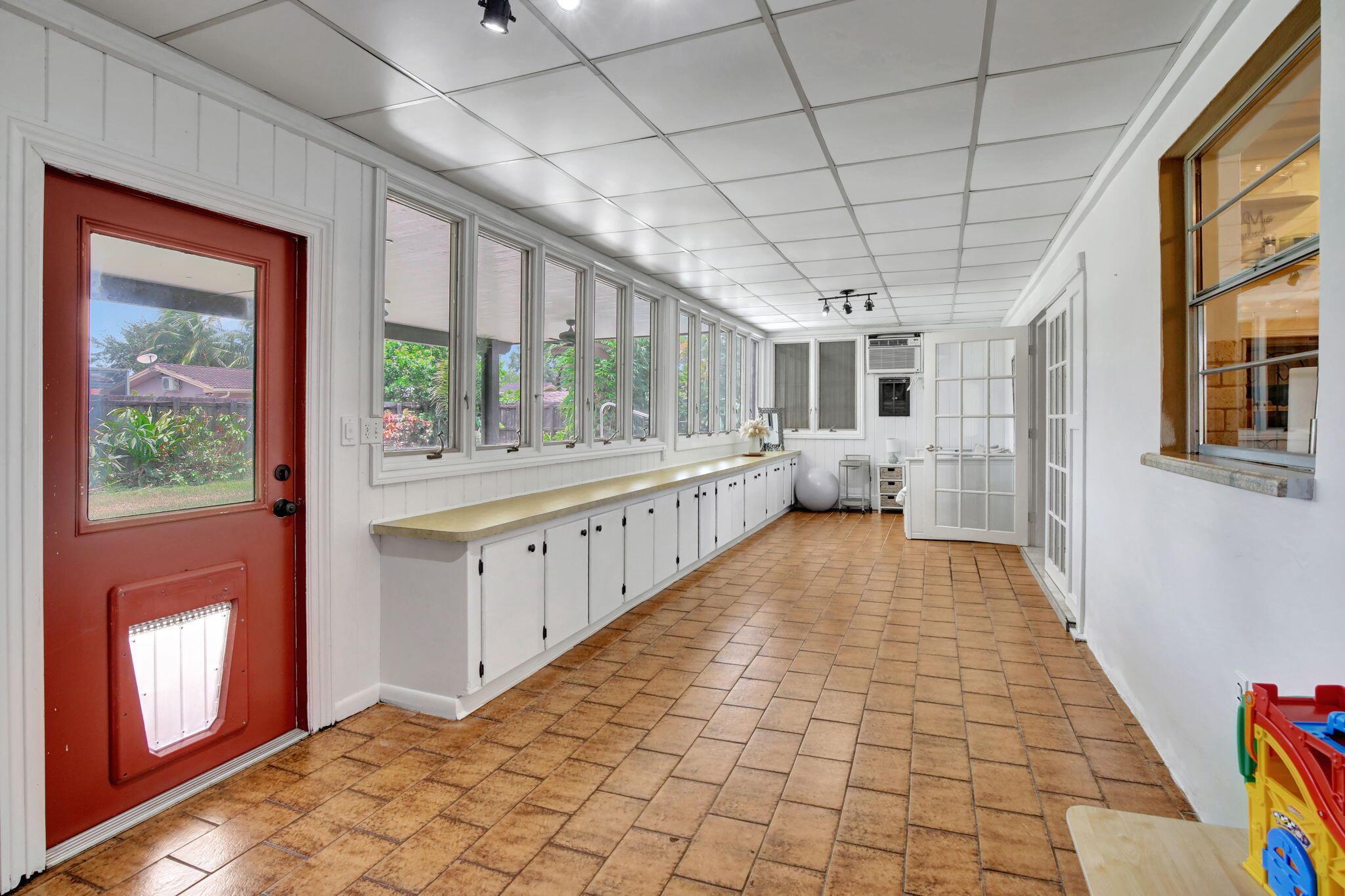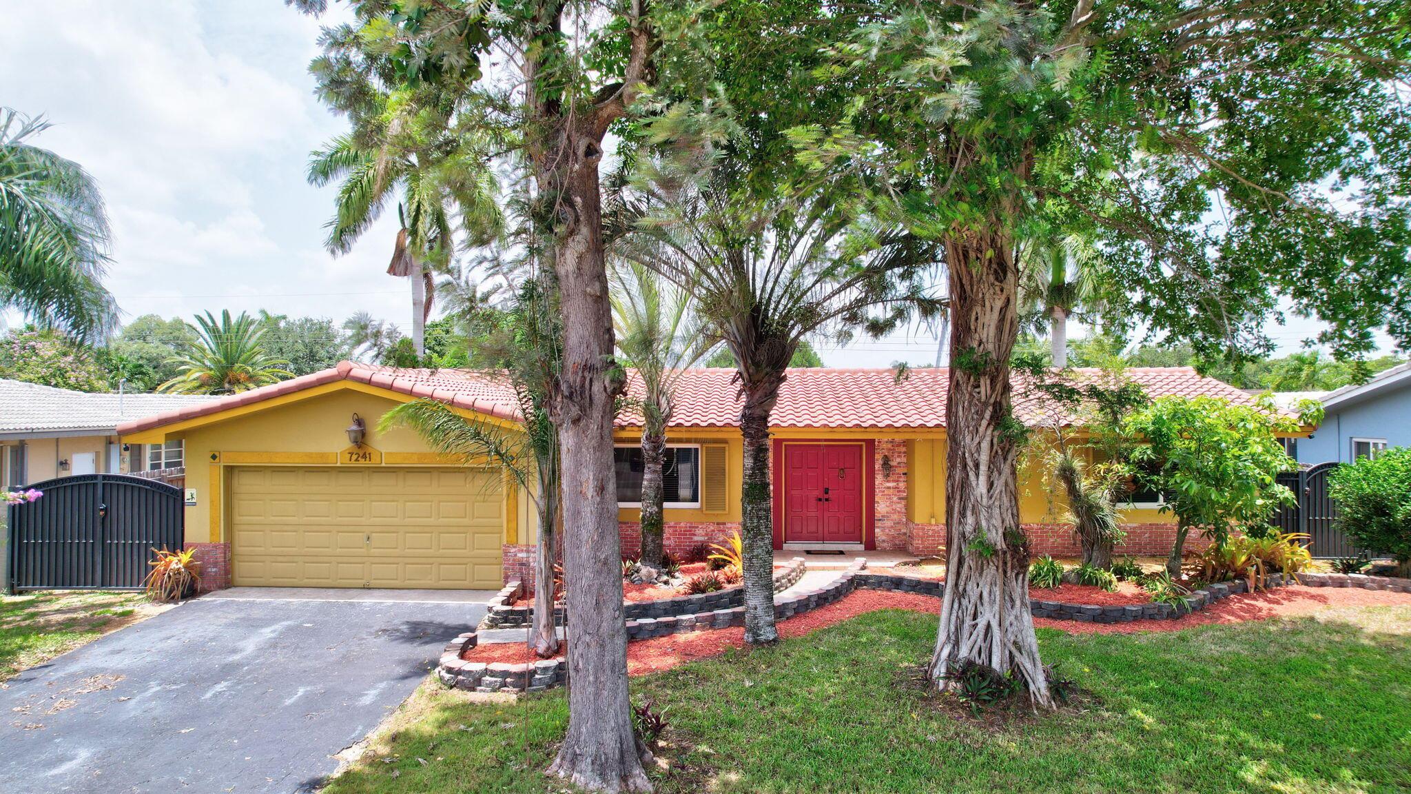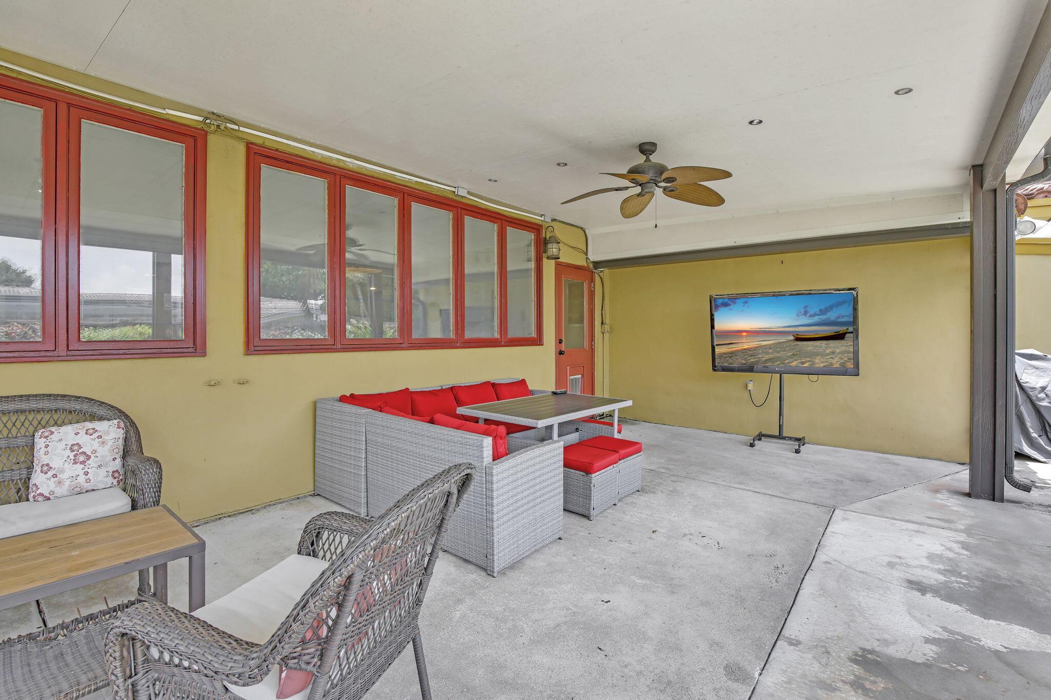 This well-kept four-bedroom, two-bathroom home offers fantastic savings with no HOA fees. It features plenty of storage space for boats and RVs, a securely fenced yard, and 10-foot metal gates. Inside, you'll find a spacious layout with coffered ceilings, a formal dining area, and a kitchen showcasing beautiful Indian granite countertops. Designed for comfort and peace of mind, the home includes high-impact windows, full storm protection, a sturdy barrel tile roof, and a transferable termite warranty. The enclosed flex space is great for a home office, gym, or game room. Outside, relax under a covered pergola with fans and lighting, take a dip in the sparkling pool, or enjoy the peaceful pond with a soothing fountain.