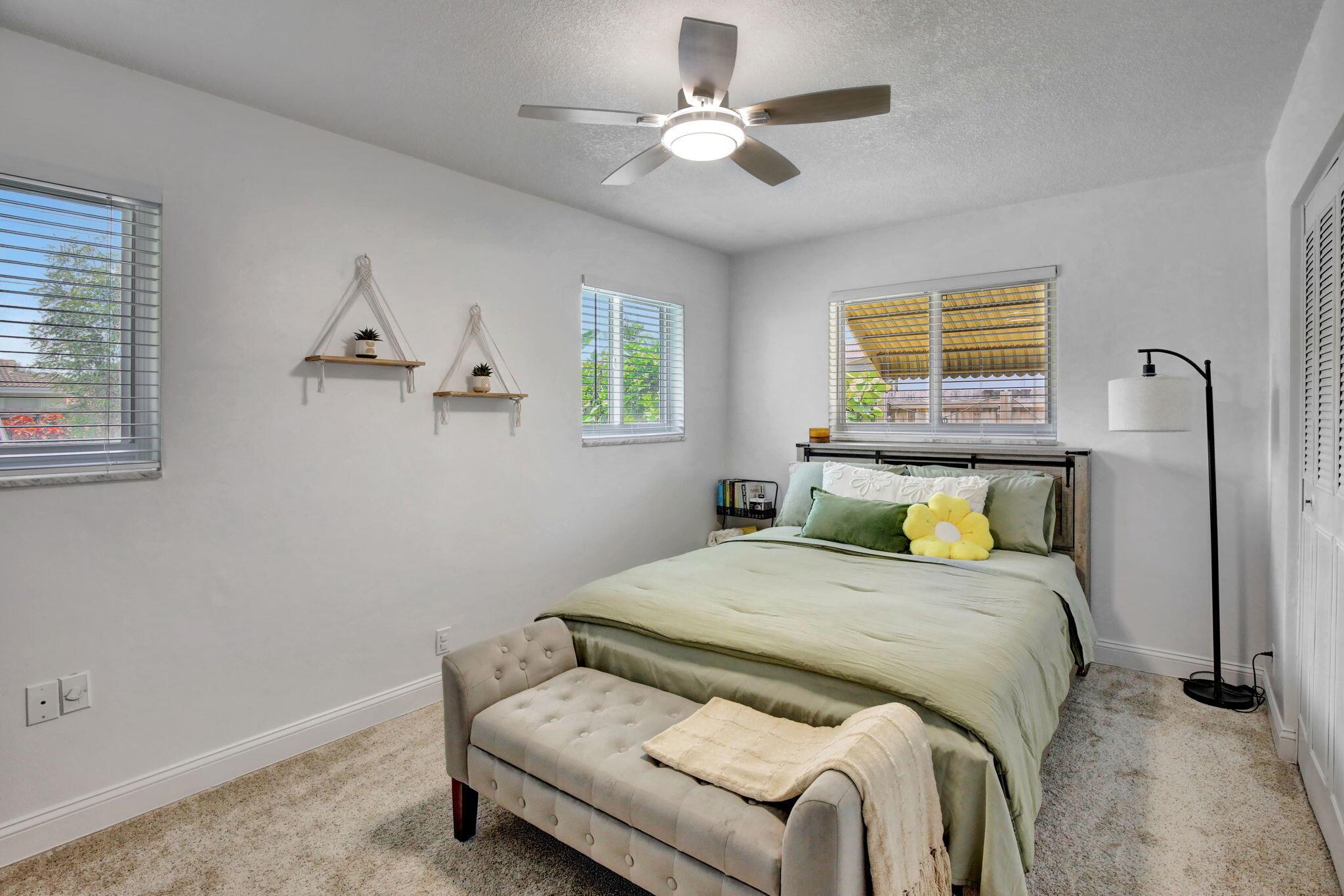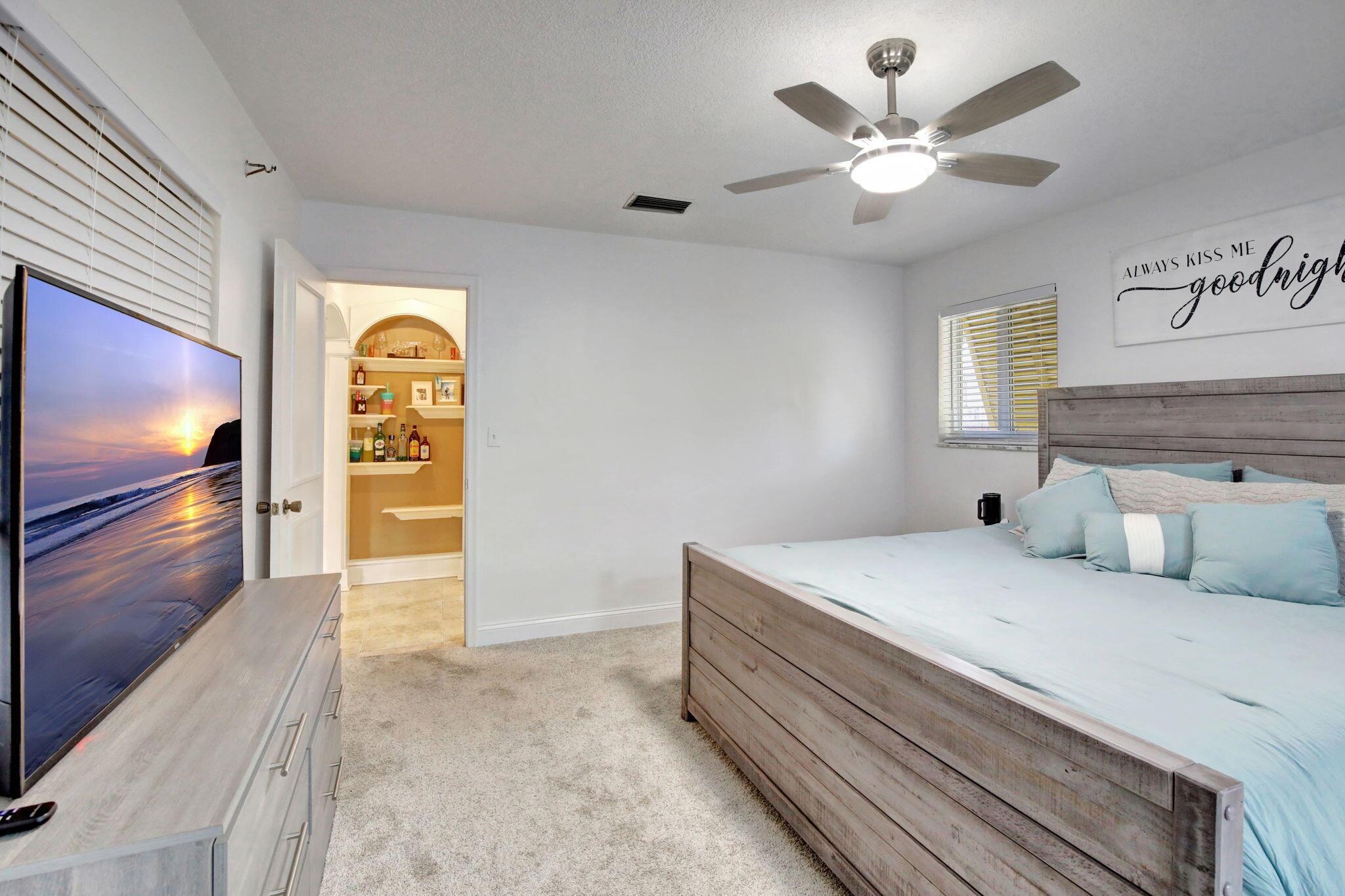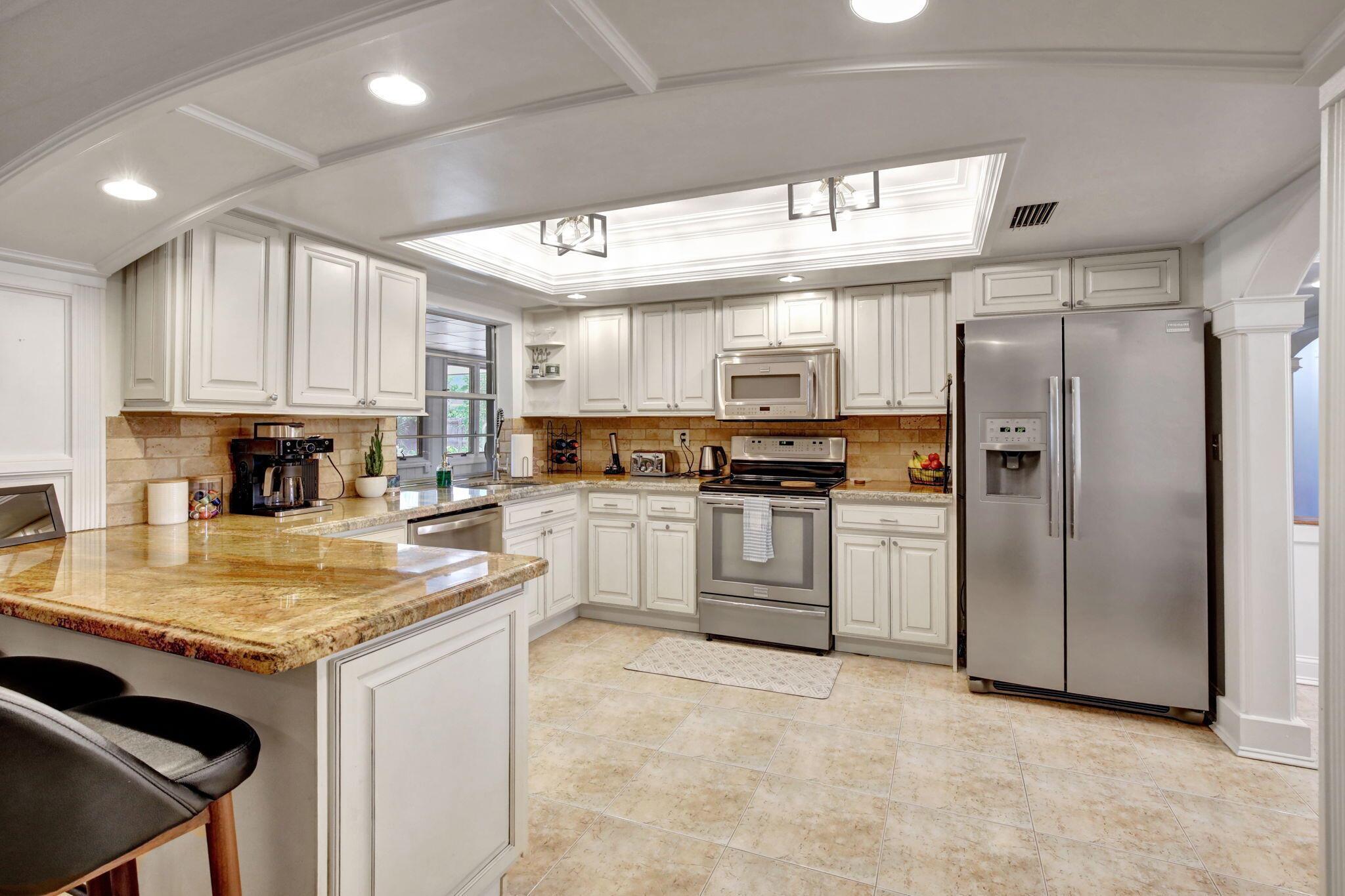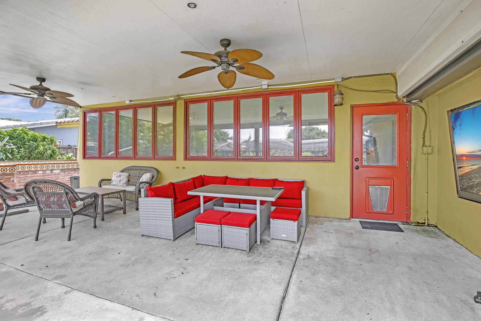 This well-kept four-bedroom, two-bathroom home offers fantastic savings with no HOA fees. It features plenty of storage space for boats and RVs, a securely fenced yard, and 10-foot metal gates. Inside, you'll find a spacious layout with coffered ceilings, a formal dining area, and a kitchen showcasing beautiful Indian granite countertops. Designed for comfort and peace of mind, the home includes high-impact windows, full storm protection, a sturdy barrel tile roof, and a transferable termite warranty. The enclosed flex space is great for a home office, gym, or game room. Outside, relax under a covered pergola with fans and lighting, take a dip in the sparkling pool, or enjoy the peaceful pond with a soothing fountain.