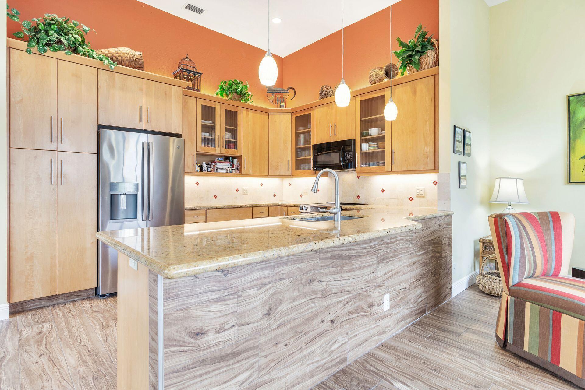 Unmatched Lakefront Views in Lantern Bay - Jonathan's Landing. Quite possibly the best lakefront view in all of Jonathan's Landing, this rarely available 3-bedroom, 3-bath home in Lantern Bay is a true gem. Perfectly positioned to capture panoramic, unobstructed views straight across the wide lake to tranquil Butterfly Island, the scenery here is nothing short of breathtaking--and the kind of peaceful beauty that's impossible to replicate. Step inside and be immediately drawn to the expansive wall of impact glass framing the view like artwork. The open living and dining areas are flooded with natural light, seamlessly connecting to a spacious screened and covered lanai where you can relax or entertain while soaking in the spectacular setting. The chef's kitchen opens to a cozy