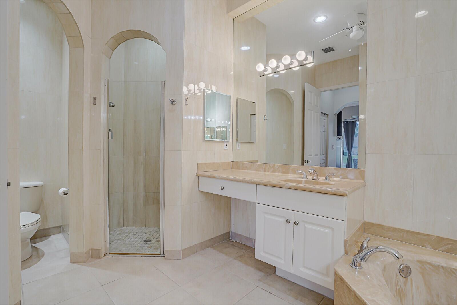 Exceptional opportunity to own a 2 story Lakefront Townhome in the desirable community of Andros Isle , 4br/3ba/2 car garage, This CBS home has a brand new roof, over 2900 total sq. ft. soaring ceilings in the main living area w/decorative niches, tile & laminate floors throughout, updated kitchen w/granite counter tops, lg. center island, s.s. appliances & 42'' wood cabinets. The primary bedroom is on the main floor with 8 ft sliding glass doors that open to a pavered patio that overlooks the Lake. The private primary bathroom has dual vanities, make-up vanity, separate spa-like soaking tub, separate shower & linen closet. Two additional bedrooms are on the 2nd floor that share a jack & jill bathroom, another bedroom is located on the main floor that could be used as an office.