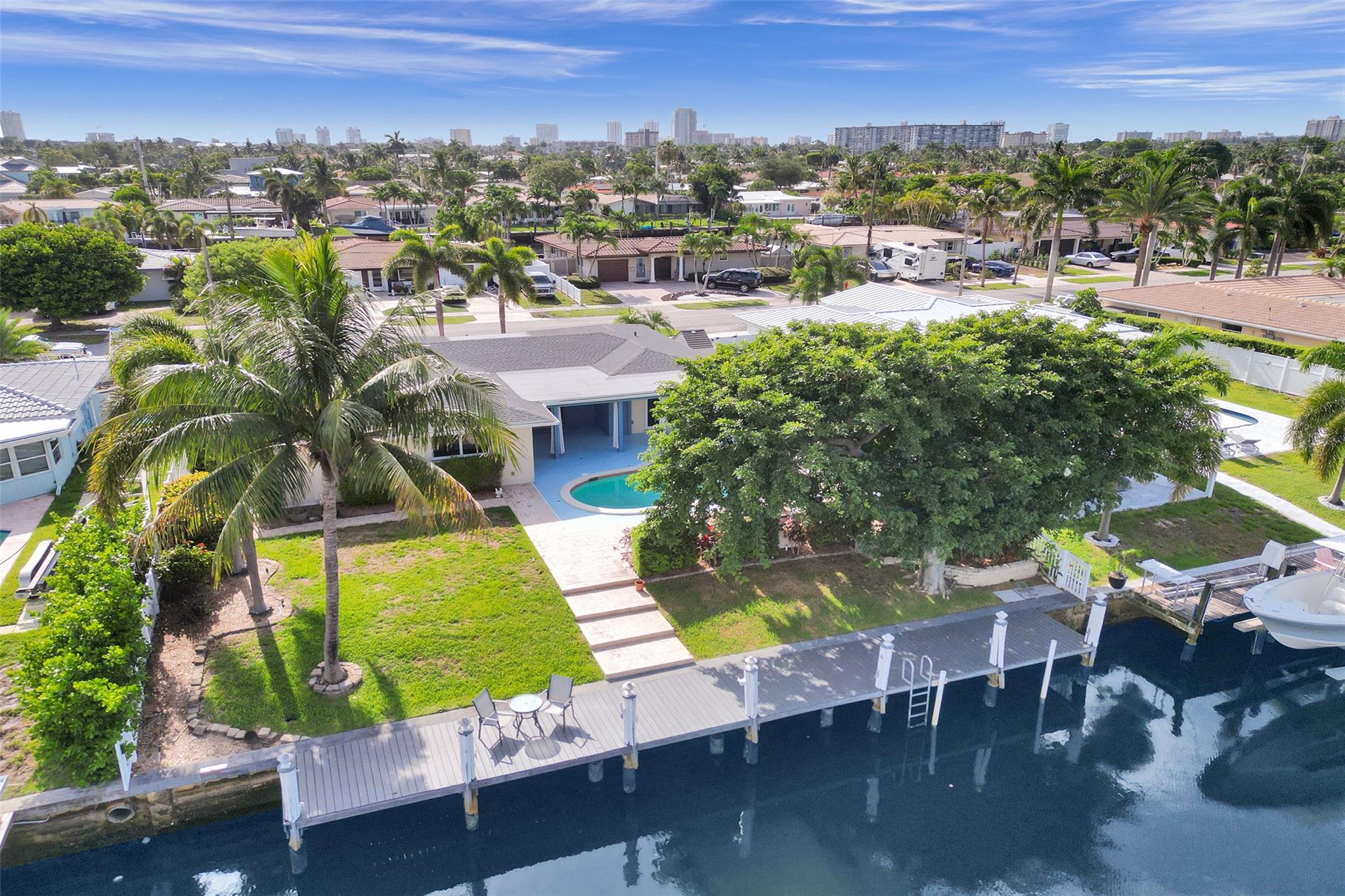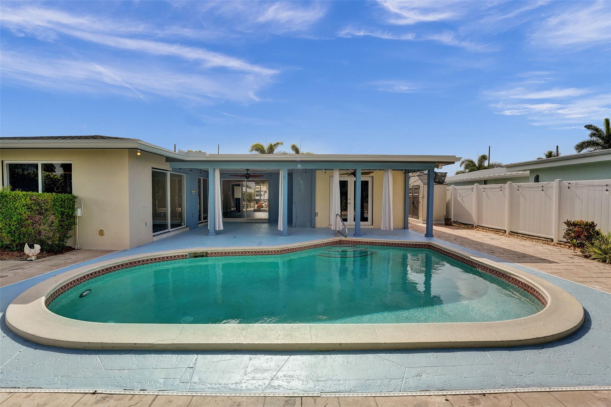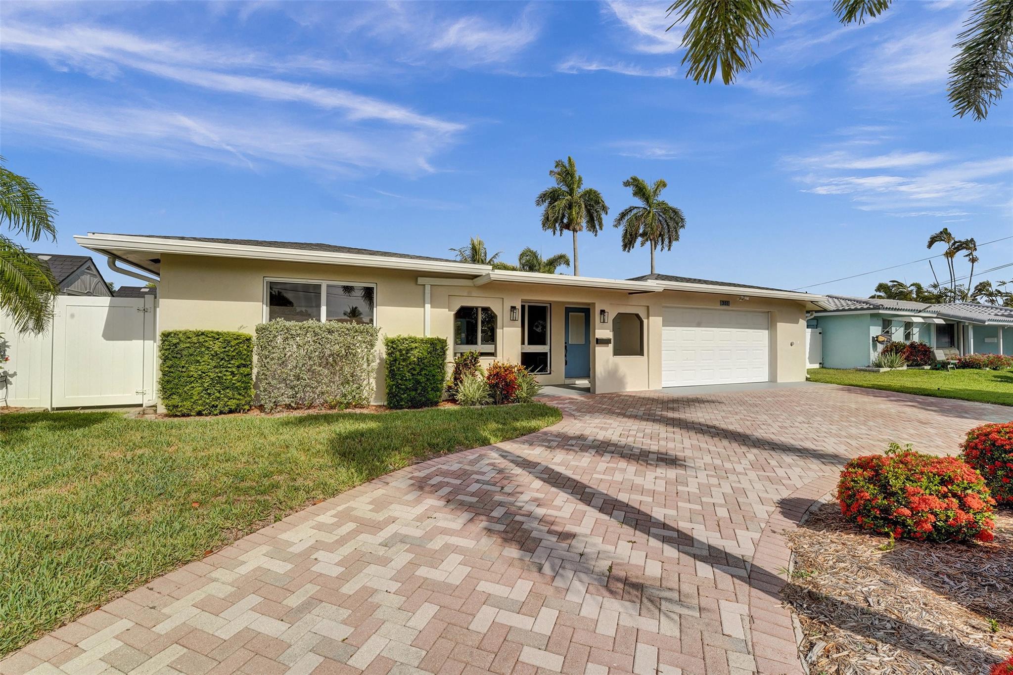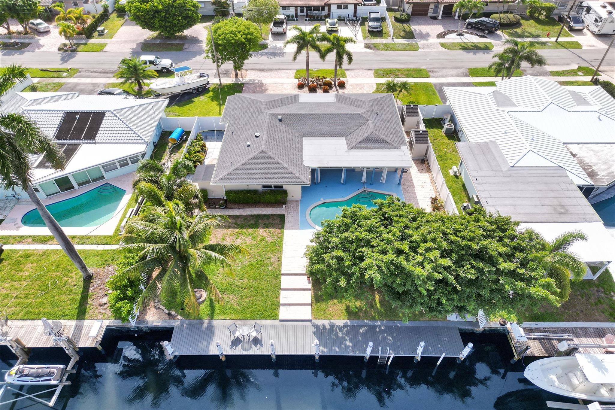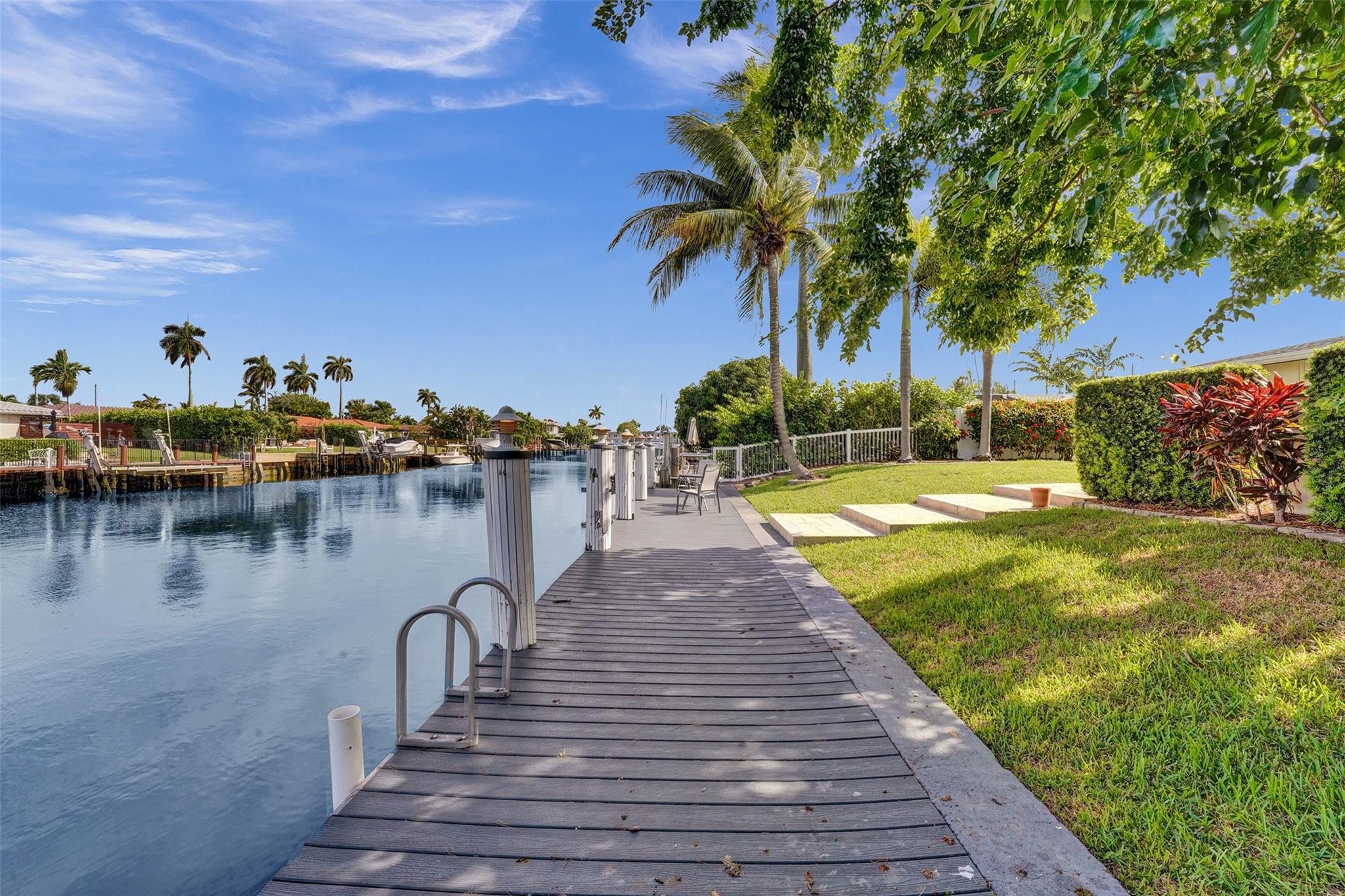 Enjoy relaxed coastal living in one of Pompano Beach’s most desirable waterfront communities! This hidden gem offers 75’ of water frontage on a wide canal with easy access to the Intracoastal. The private tropical yard is perfect for entertaining with a saltwater pool, hot tub, and an outdoor built-in gas fireplace. Other features include a 2021 roof, impact windows and french doors, updated bath, newer AC, tankless water heater, PVC fence, large 2-car garage with extra storage closets, 3 sheds, an outdoor side workstation, parking for a boat or RV and a large paver circular driveway. Ideal for boaters and those who love the Florida lifestyle. Minutes to Pompano Beach Pier, beaches, shopping, entertainment, dining, and marinas!