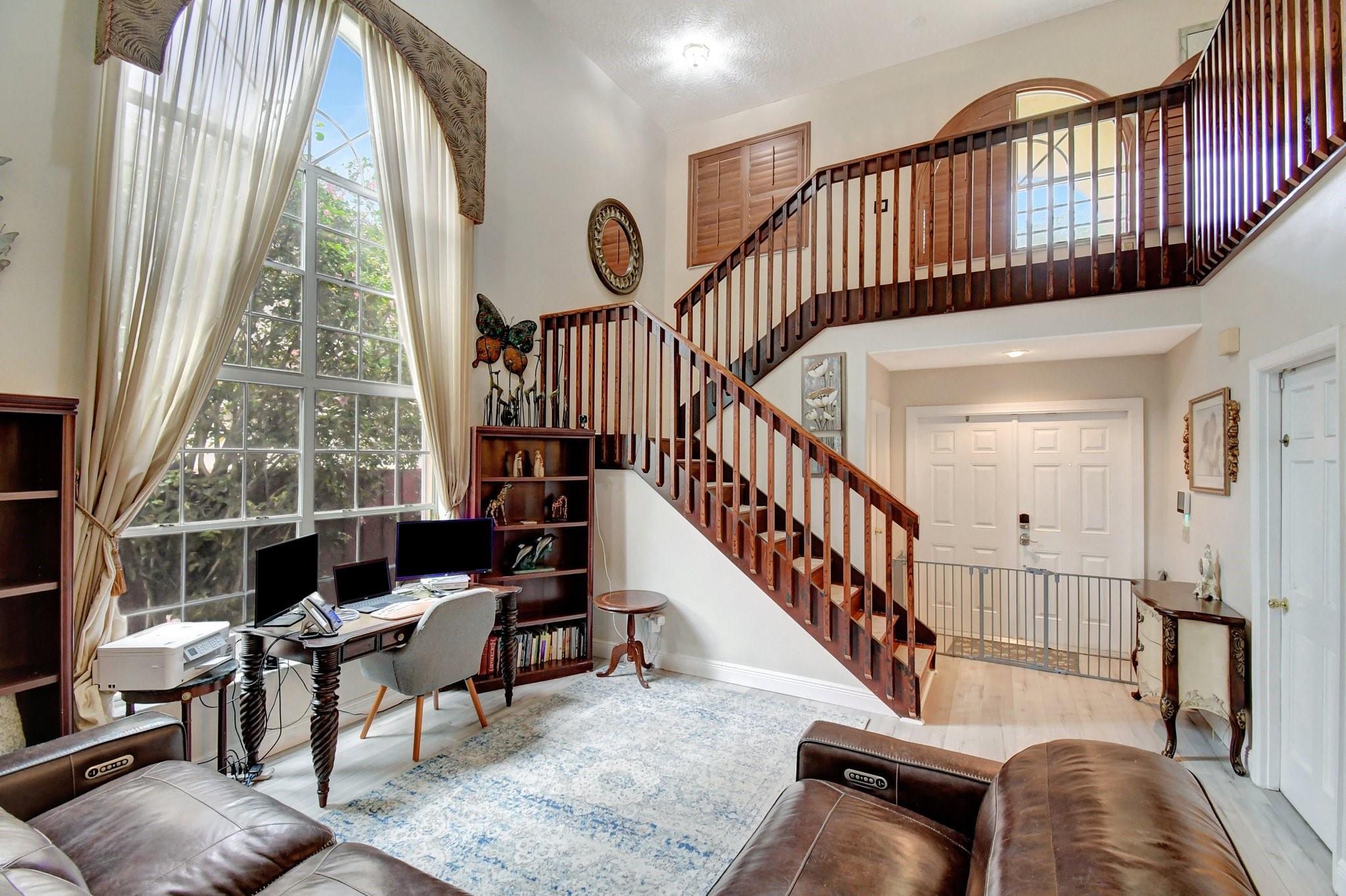 Desirable Embassy Lakes Heated Pool Home!!! Welcome to this beautifully maintained 4 bed/3 bath pool home in the desirable, guard-gated Embassy Lakes with low HOA. Functional layout with spacious primary suite on the first floor. Open and airy with volume ceilings, vinyl flooring on 1st floor and Brazilian wood upstairs. Step outside to a private screened patio and heated pool with low-maintenance yard. All "big ticket" items on home done!!! Roof 2017, WH 2023, ACs 2024 & 2014, generator hookup added to electrical panel , full hurricane protection throughout. Enjoy community pools, tennis, clubhouse, scenic walking paths and multiple houses of worship.