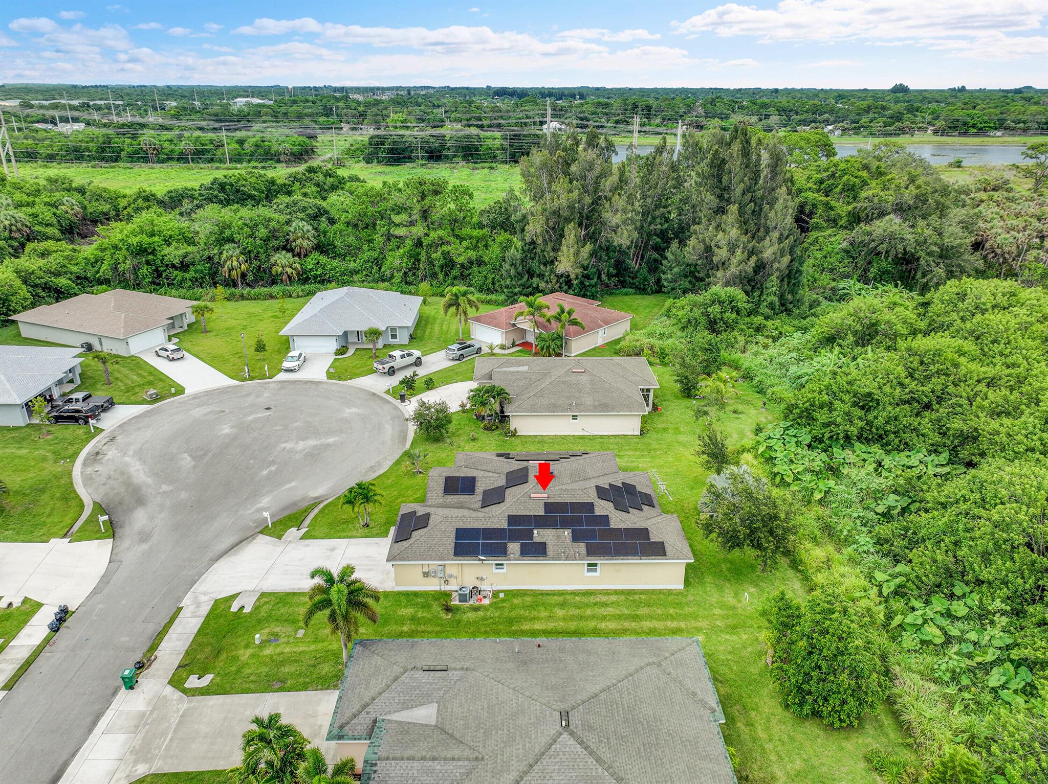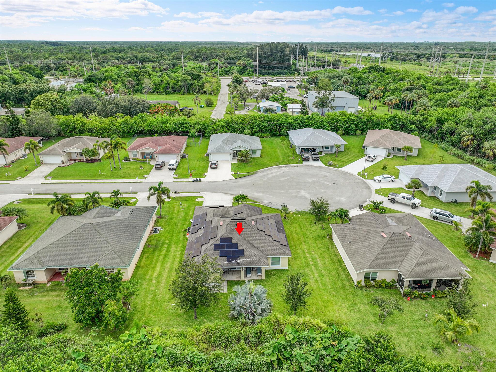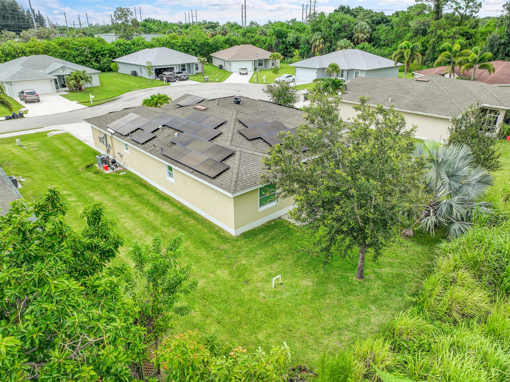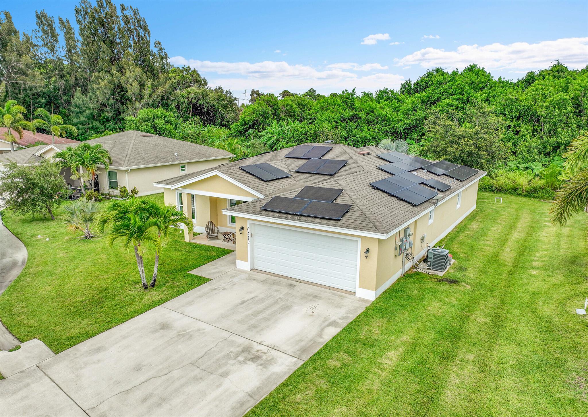 WOW!! FREE POWER!! NE PSL. SAVE $Thousands/Year With NO Power Company (FPL) Usage!! 2017-Built CBS Nearly 1900sf 3+Den/2/2 w/ 2022 EXTENSIVE 17.6KW WHOLE HOUSE SOLAR SYSTEM ($72K System! Remaining Balance Will Be Paid Off By Seller!) Located on Quiet Cul-De-Sac. Granite Kitchen w/ Hi-End Maple Cabinets. Large Family Rm. Den/Office Could Be 4th Bdrm. NO NEIGHBORS BEHIND. Elementary 5 Minutes away! Intracoastal 10 Minutes. Roman Tub/Separate Shower And Dual Vanities In Mstr Bath. Covered Patio. Remarkable Value. (Agent Can Provide Utility Bill Showing NO FPL USAGE For Buyer Review.)
