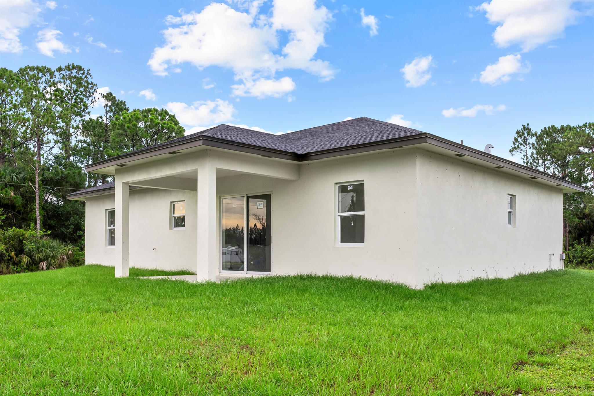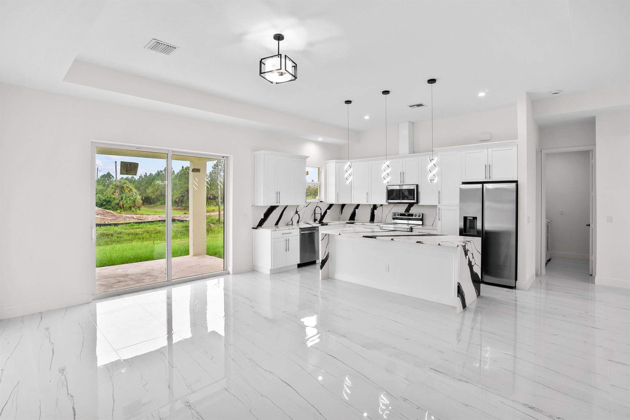 MODERN UPGRADED BRAND NEW HOME! If you are looking for a home that is different then the other builder spec homes, this is the one for you! This Beautiful, Brand New Home will come with one year Builder Warranty! This home features 4 Bedrooms, 2 Full Baths , a 2 Car Garage, and an Indoor Laundry Room. Featuring vaulted ceilings in the living area, this spacious floor plan includes tile in the whole home. The kitchen offers all white high quality cabinets with a black kitchen island, quartz countertops, stainless steel appliances. IMPACT WINDOWS, GARAGE DOOR AND DOORS. Truss covered lanai. GORGEOUS PORCELAIN TILES. TANKLESS WATER HEATER. WINE COOLER. -BEAUTIFUL BACKYARD VIEW WITH NO NEIGHBORS BEHIND OR NEXT DOOR ON ONE SIDE!