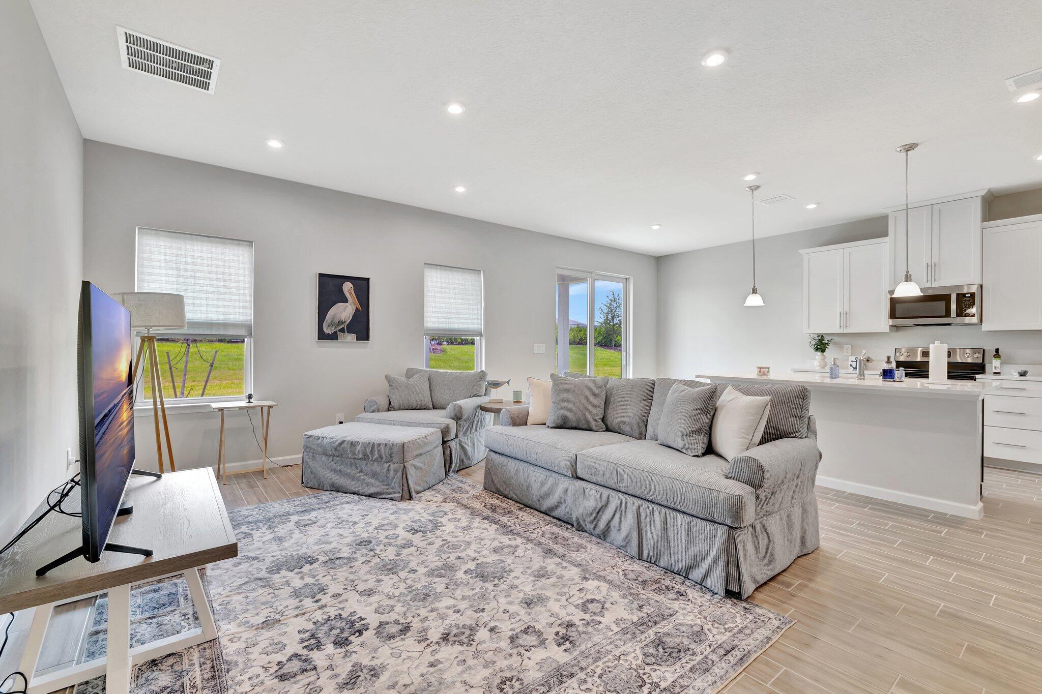 Welcome to Central Park--just 15 minutes to beautiful beaches and close to top golf courses, shopping, and dining. This vibrant community offers 10 acres of resort-style amenities including a pool, splash park, cabana, snack bar, walking trails, dog park, and sports courts for pickleball, tennis, and basketball. The Adeline model features 3 bedrooms, 2 baths, and a desirable split floorplan with a spacious great room. The kitchen comes equipped with an oven, refrigerator, dishwasher, and disposal. The Owner's Suite offers dual sinks, a walk-in shower, and a large closet. Enjoy peace of mind with hurricane impact windows throughout. Relax outdoors on the covered lanai and take in the Florida breeze.