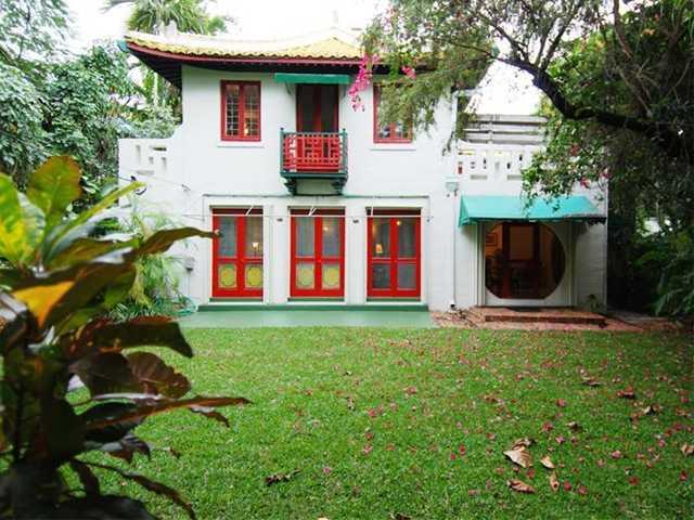 Historic 2 story 5/3.5 home in the remarkable 1920's Chinese Village. 3375 sq', 6090 sq' walled & gated lot, foyer, large dining room, exquisite formal living room with fireplace, oak floors & a wall of intricately carved glass & Chinese fret work doors o verlooking the large backyard. Eat-in kitchen. 1 bedm 1 & 1/2 baths down, 4 bdrms + office & 2 bths up. 2 car garge. Rare opportunity to acquire this elaborately detaied homage to "Forbidden City" architecture. Possibly rm for a pool. Needs some updating.