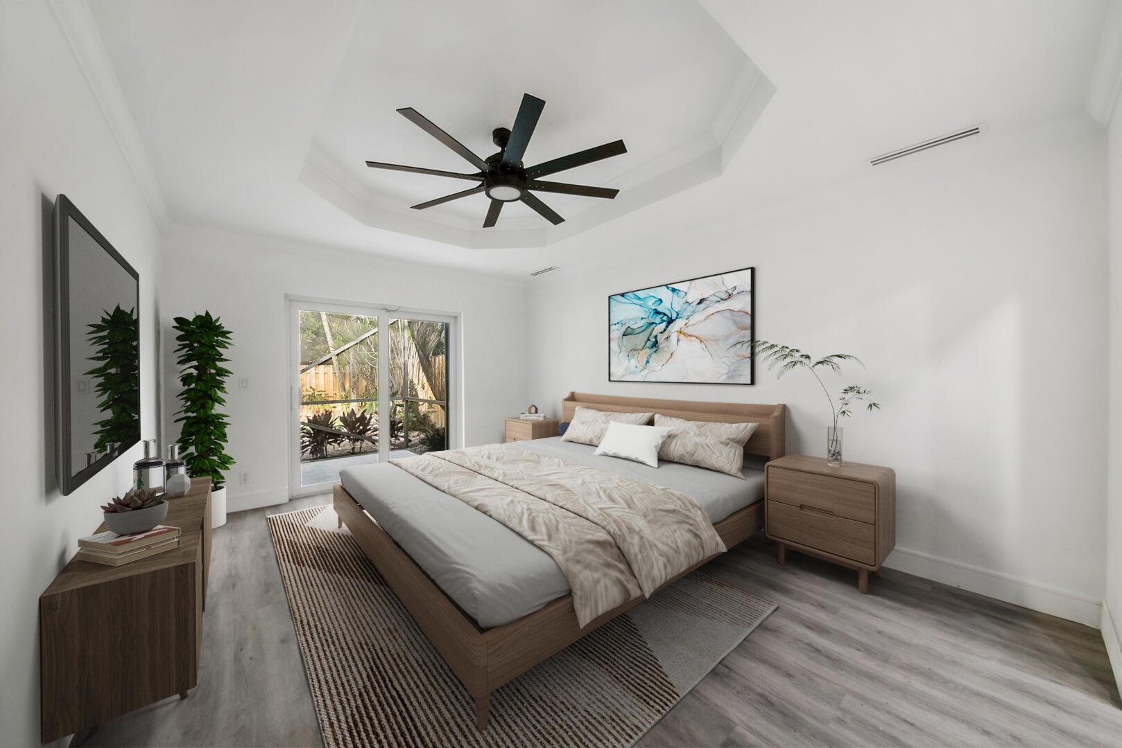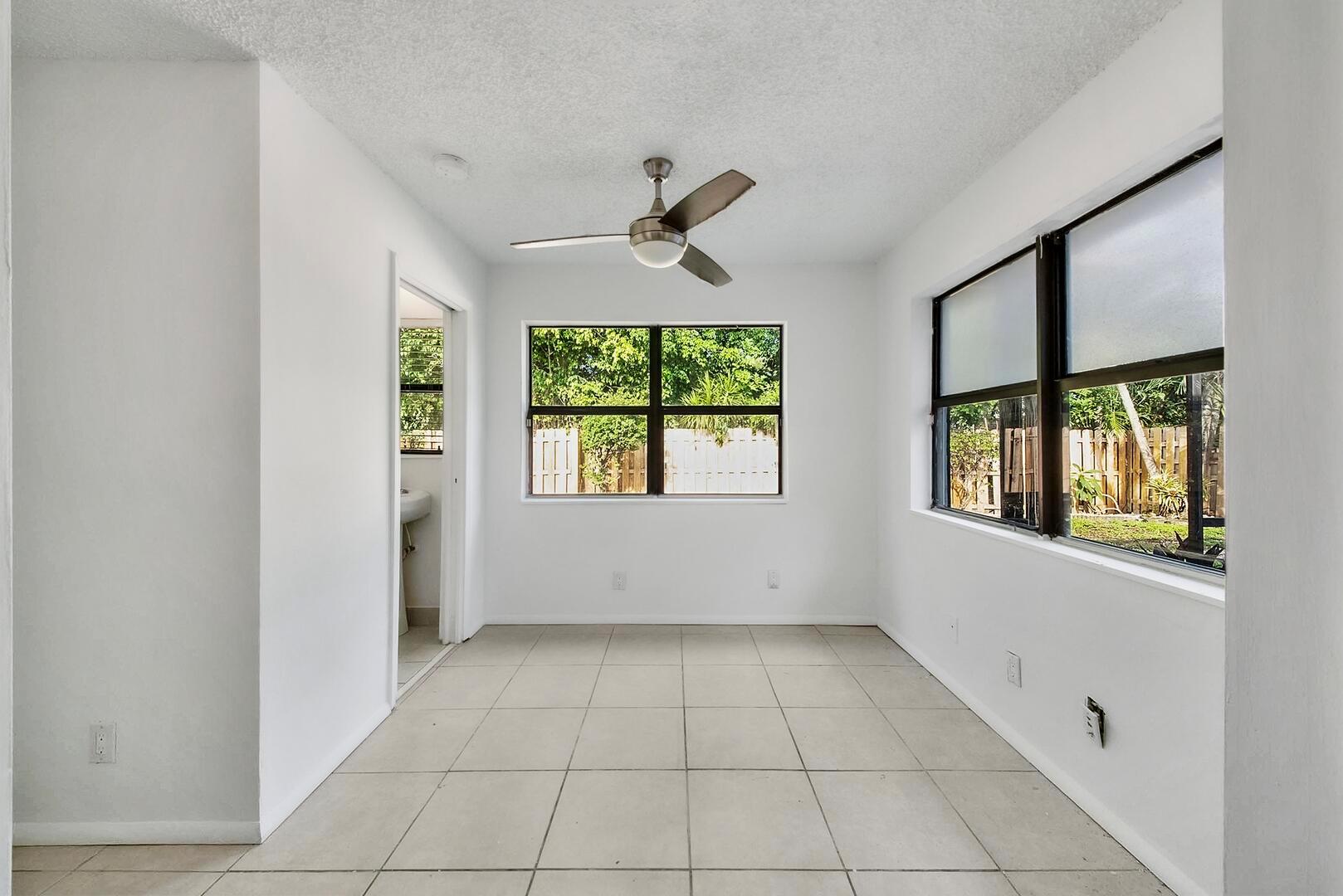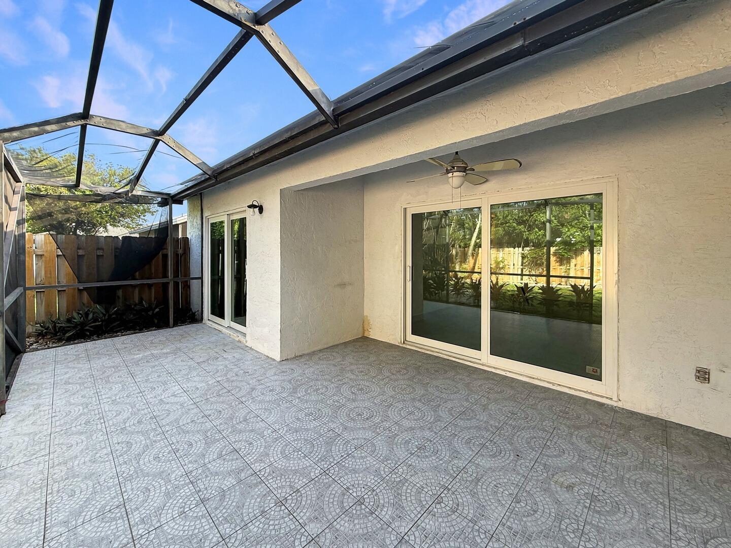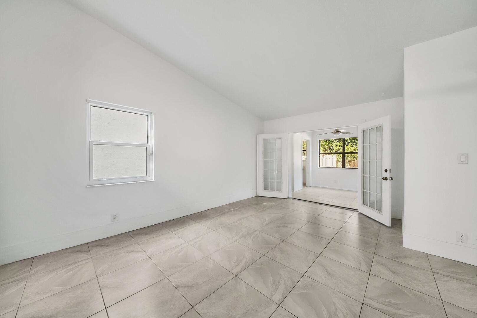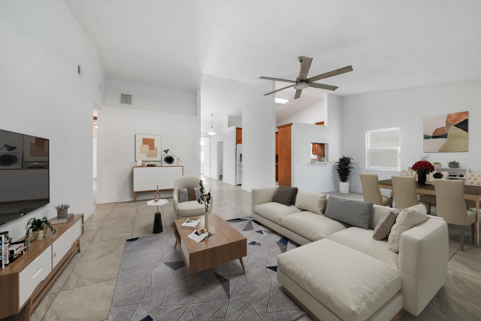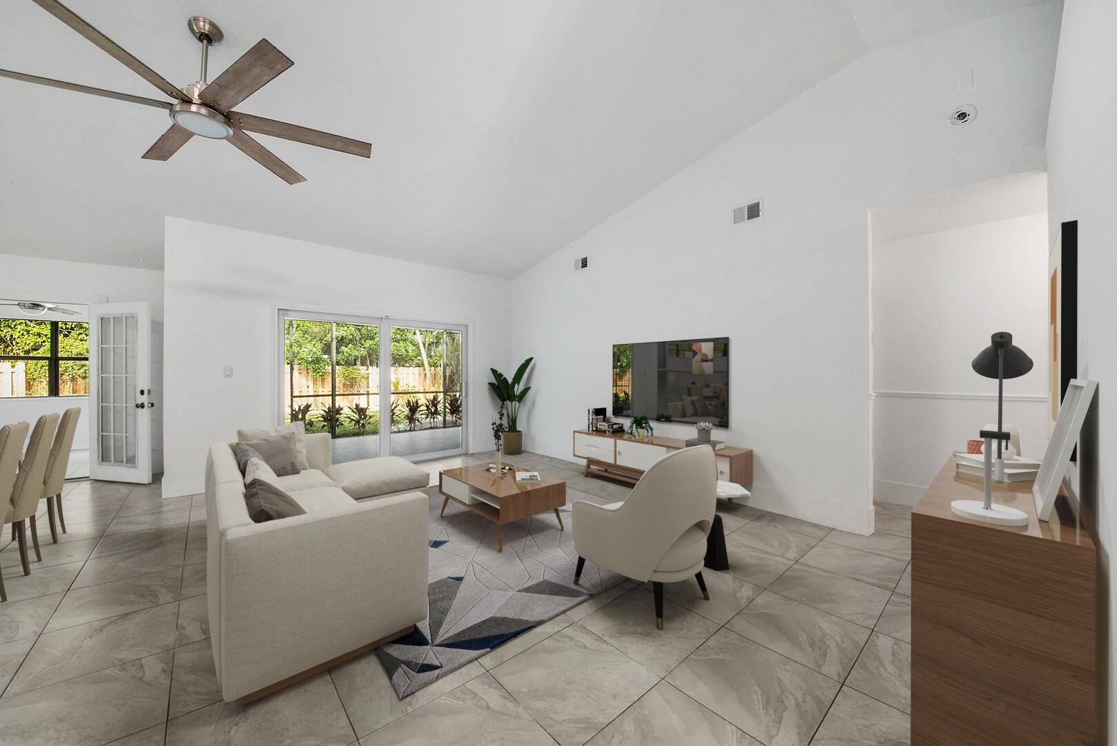 Welcome to this beautifully maintained 4 bedroom, 2 bath home in the desirable Boca Trace community. Step into the inviting foyer and enjoy the spacious feel created by vaulted ceilings and abundant natural light. The home features neutral flooring throughout, has been freshly painted, and includes impact windows for added peace of mind. The updated kitchen is a chef's delight, showcasing granite countertops, a full granite backsplash, and ample cabinetry. The primary suite offers a relaxing retreat with a coffered ceiling, sliding glass doors to the patio, a soaking tub, walk-in shower, and generous closet space. Additional highlights include solar panels for energy efficiency, a newer roof, and a newer washer and dryer