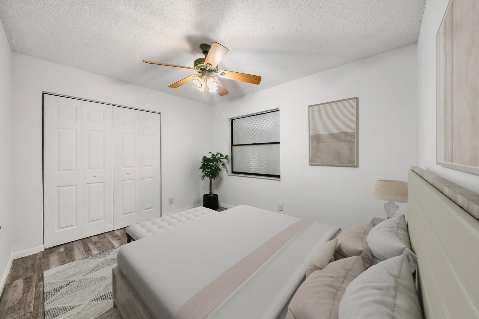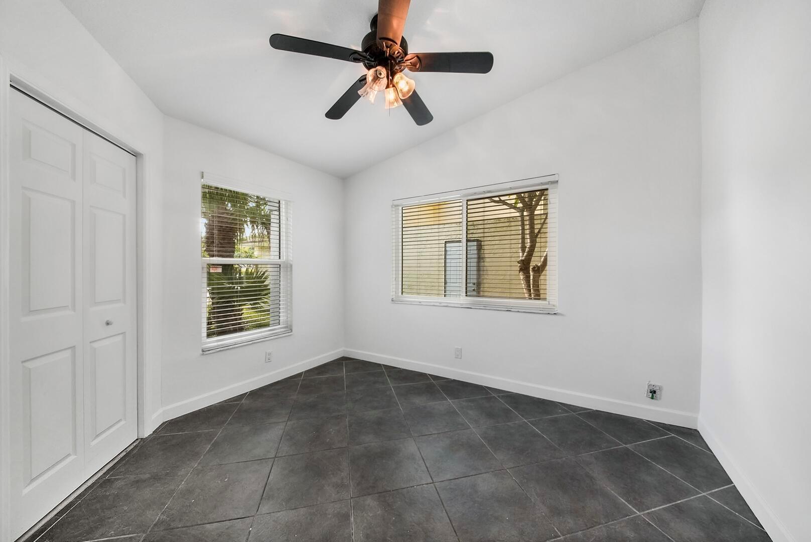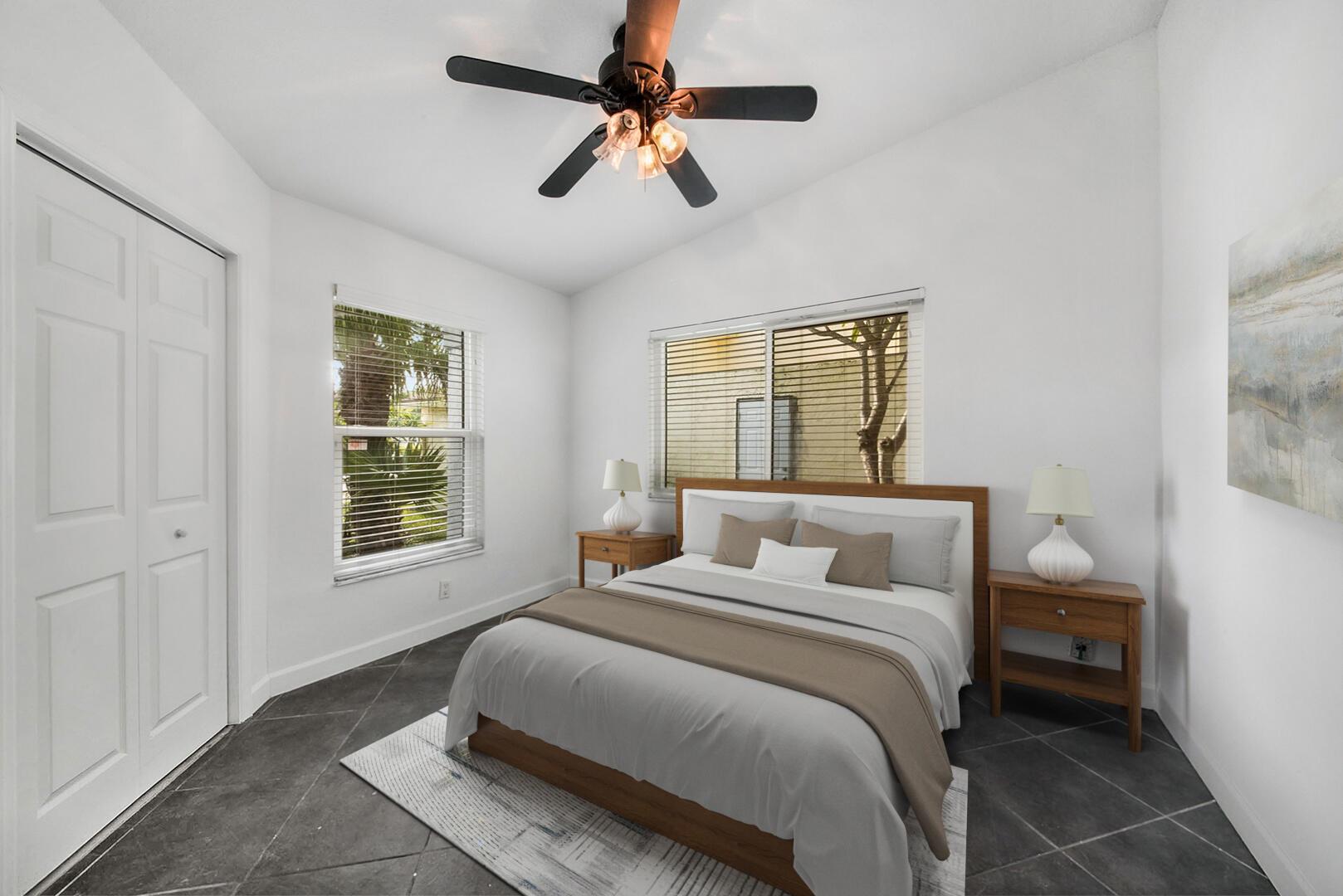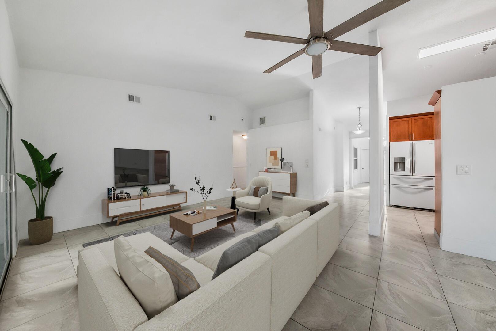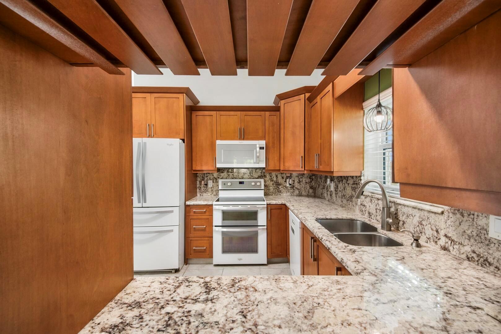 Welcome to this beautifully maintained 4 bedroom, 2 bath home in the desirable Boca Trace community. Step into the inviting foyer and enjoy the spacious feel created by vaulted ceilings and abundant natural light. The home features neutral flooring throughout, has been freshly painted, and includes impact windows for added peace of mind. The updated kitchen is a chef's delight, showcasing granite countertops, a full granite backsplash, and ample cabinetry. The primary suite offers a relaxing retreat with a coffered ceiling, sliding glass doors to the patio, a soaking tub, walk-in shower, and generous closet space. Additional highlights include solar panels for energy efficiency, a newer roof, and a newer washer and dryer