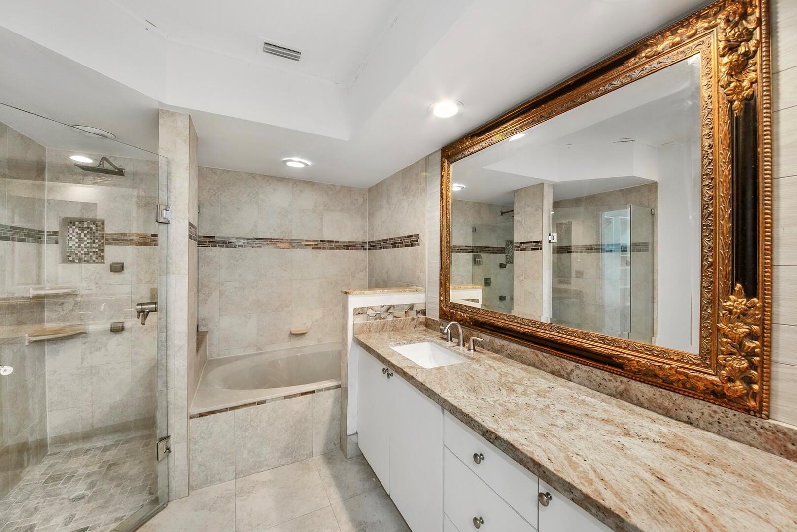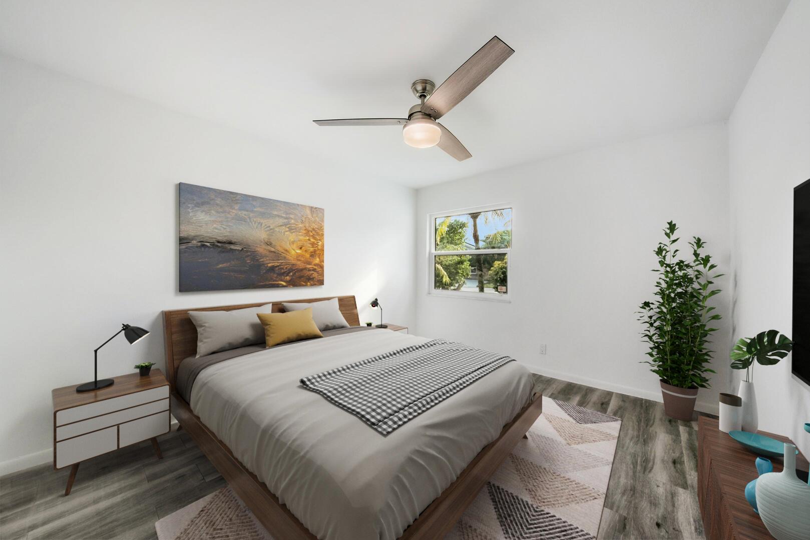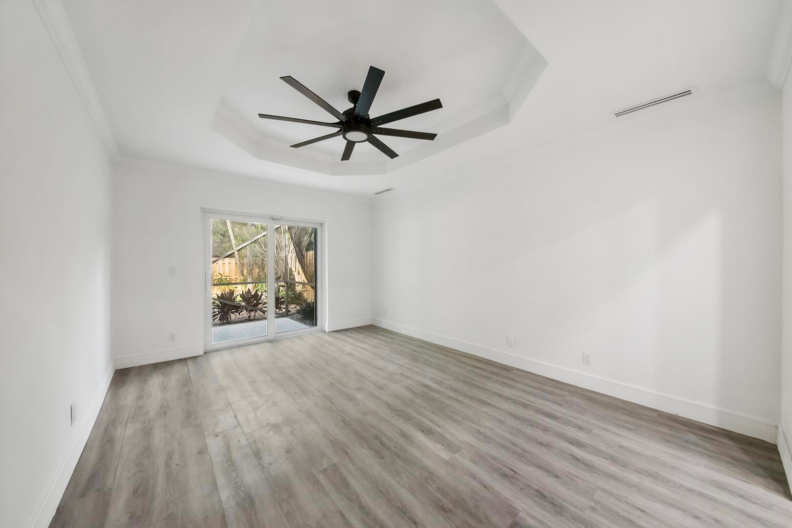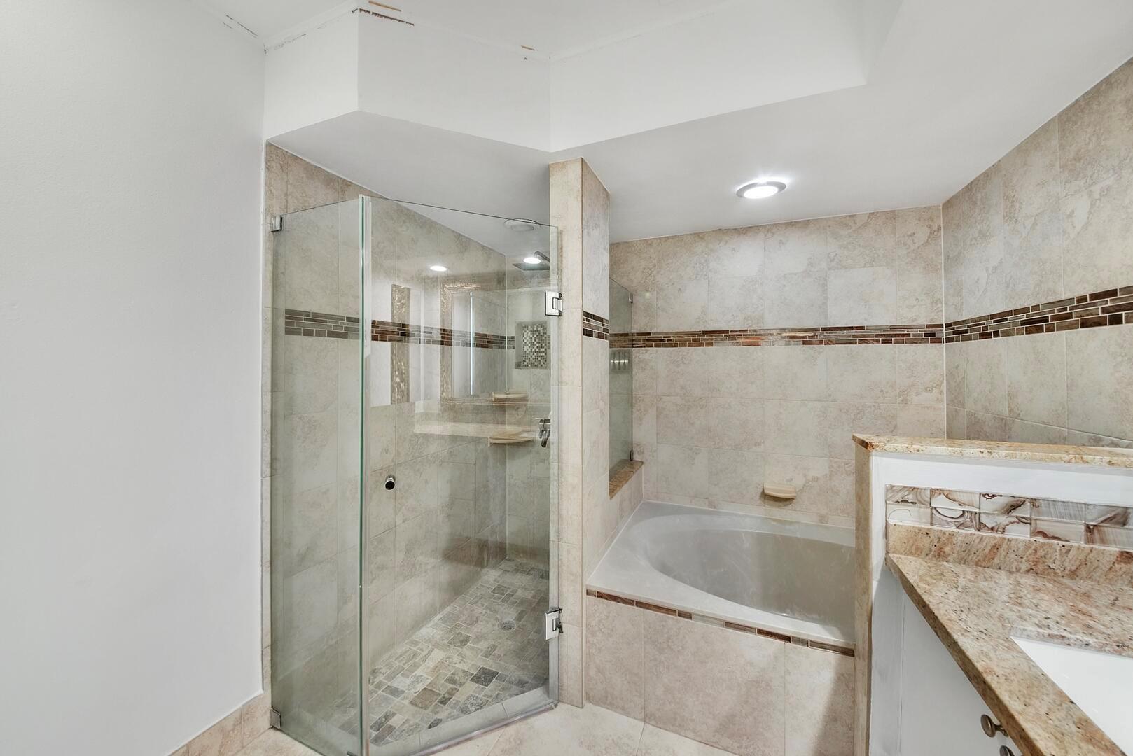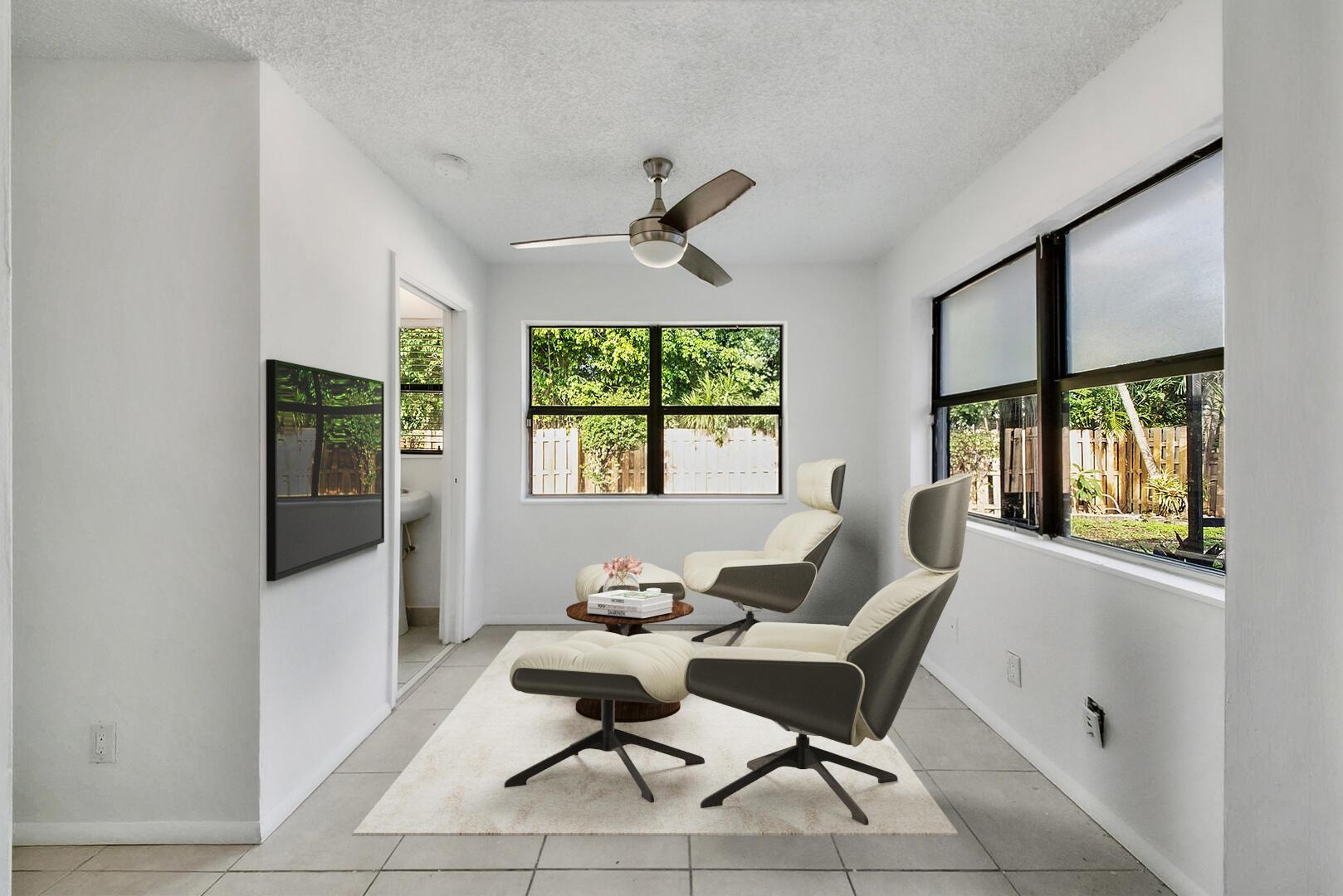 Welcome to this beautifully maintained 4 bedroom, 2 bath home in the desirable Boca Trace community. Step into the inviting foyer and enjoy the spacious feel created by vaulted ceilings and abundant natural light. The home features neutral flooring throughout, has been freshly painted, and includes impact windows for added peace of mind. The updated kitchen is a chef's delight, showcasing granite countertops, a full granite backsplash, and ample cabinetry. The primary suite offers a relaxing retreat with a coffered ceiling, sliding glass doors to the patio, a soaking tub, walk-in shower, and generous closet space. Additional highlights include solar panels for energy efficiency, a newer roof, and a newer washer and dryer