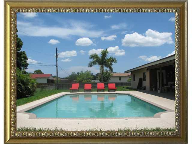 Sprawling four bedroom, three bath ranch with pool and fenced backyard on an acre lot in popular Southwest Ranches! Rustic character exemplifies this classic design with vaulted wood ceilings, open flowing living areas and dynamite kitchen with large isla nd! Home boasts new roof, fireplace, wet bar and built-ins in family room, dining room and master bedroom. Oversized master includes garden spa tub, separate shower, double vanity, two walk-in closets and access to pool/patio. Pool dimensions approximate.