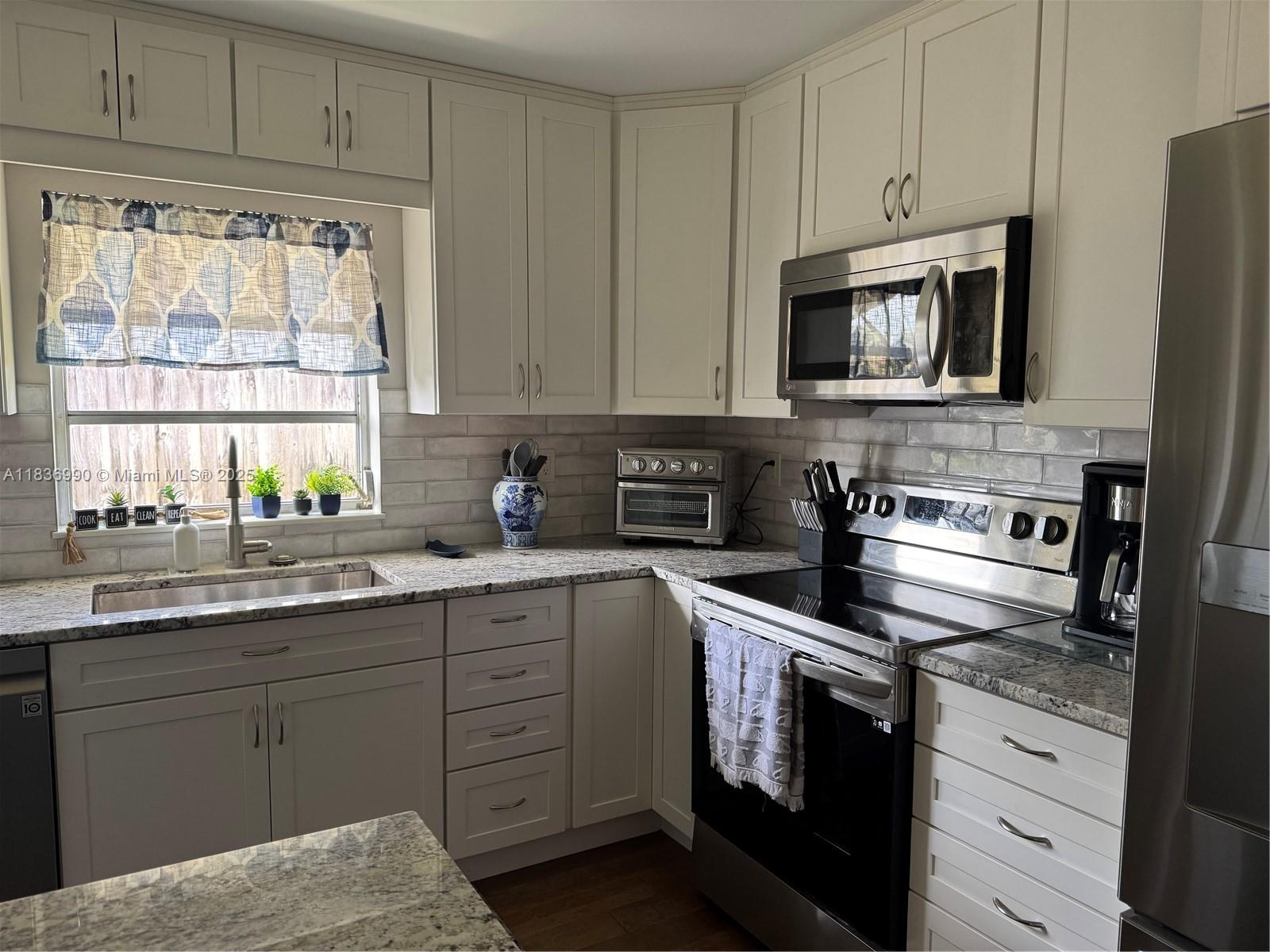Gorgeous 3/2 Home in North Andrews Gardens. Home offers approximately 1730 sq ft of space. Large front yard with Driveway. Home features a spacious Dining area. Modernized Kitchen with Stainless Steel Appliances and Wood Cabinets, Granite Counters. Updated Electrical. A/C replaced in 2021. Both Bathrooms have been tastefully Renovated. Home features a plush Backyard with a Utility Shed. Air BNB friendly community for Investors. This is a must see. One of the larger sq ft Models in the Community. Making it a true Value.