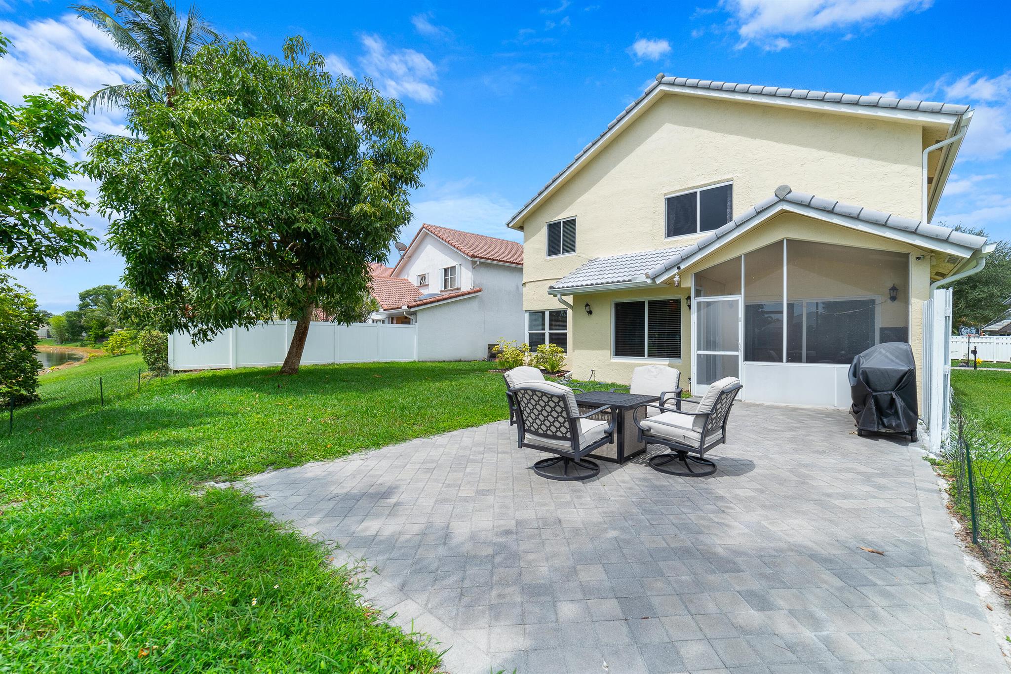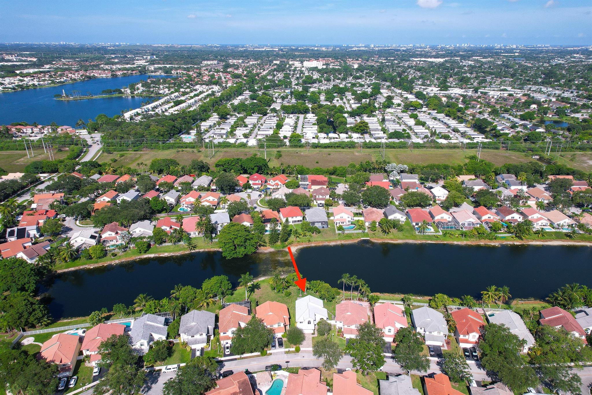 Tucked away in Coral Lake Estates, this charming 3-bedroom, 2.5 bath home offers 2,036 sq. ft. of inviting living space, highlighted by tranquil canal views and a backyard that feels like your own private nature retreat. Soaring ceilings, impact windows and doors, and abundant natural light from generous windows create a bright and airy atmosphere throughout. Downstairs, tile flooring provides durability and style, while warm wood flooring upstairs adds a cozy touch. The thoughtfully designed kitchen opens to a spacious covered patio complete with a summer kitchen, ideal for relaxing or entertaining guests. One of the home's standout features is the primary suite's closets, yes, plural, including one that's the size of a bedroom.