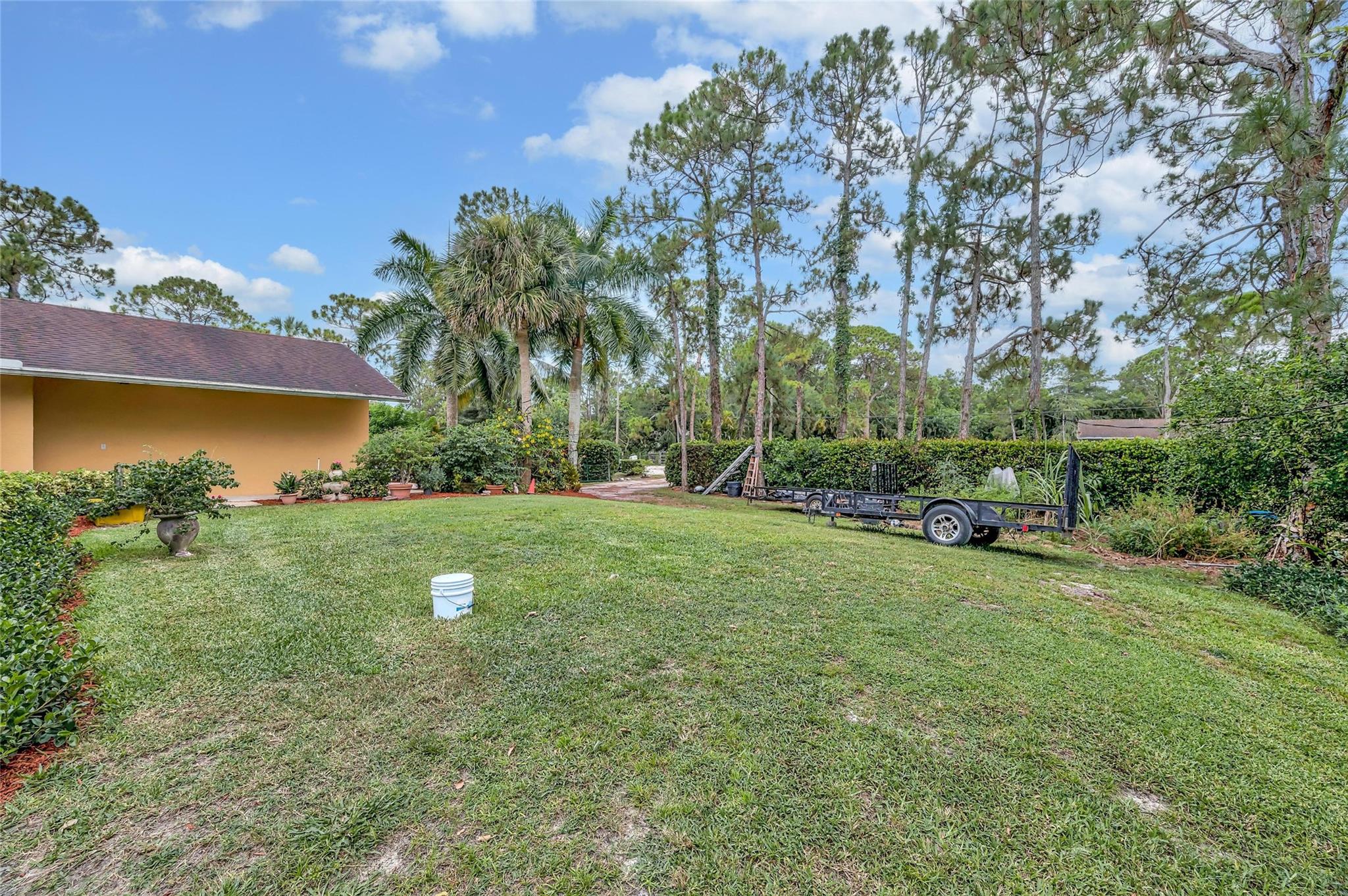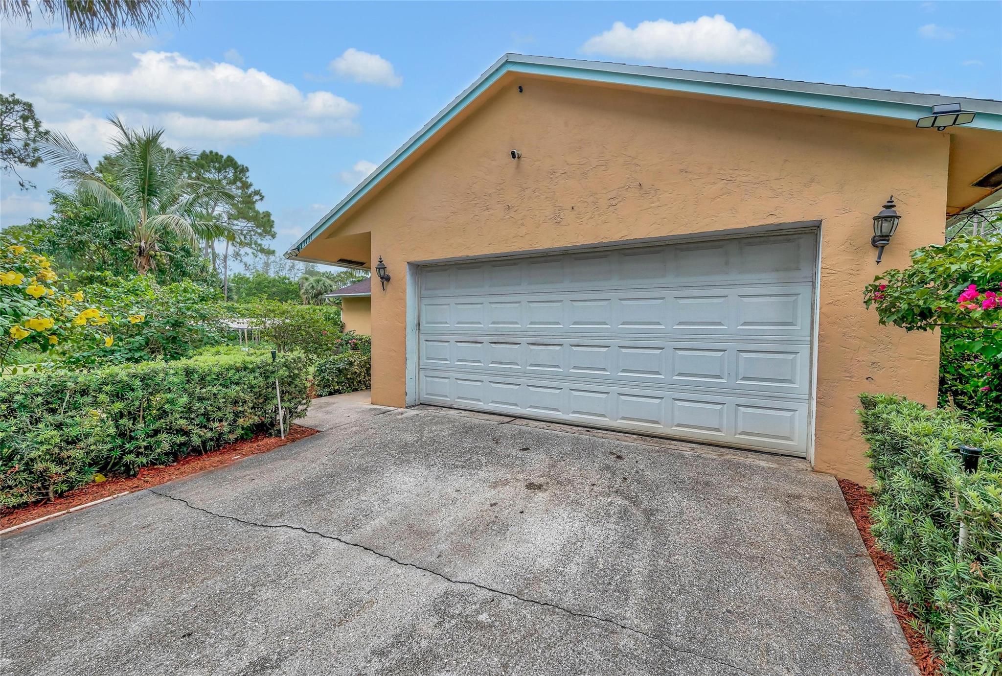This 3 bedroom/2 bathroom home sits on on a large 1.29-acre lot with matured ficus trees surrounding the property. In addition to this you have a terrace being utilized as a 4th bedroom, that offers alternative usages for it. The master bedroom features both a walk-in closet and a bathroom. The living room and dining area feature high ceilings. It also features 2 garages and a spacious driveway for plenty of parking. A newer roof and air conditioning system were recently installed. With such ample space, the home offers great opportunity for growth both with the home and the expansive yard. Such things as shopping centers and major highways, such as the turnpike and I-95, are in short distance. With no HOA fees and endless opportunities, this home is ready for someone new to call it home.