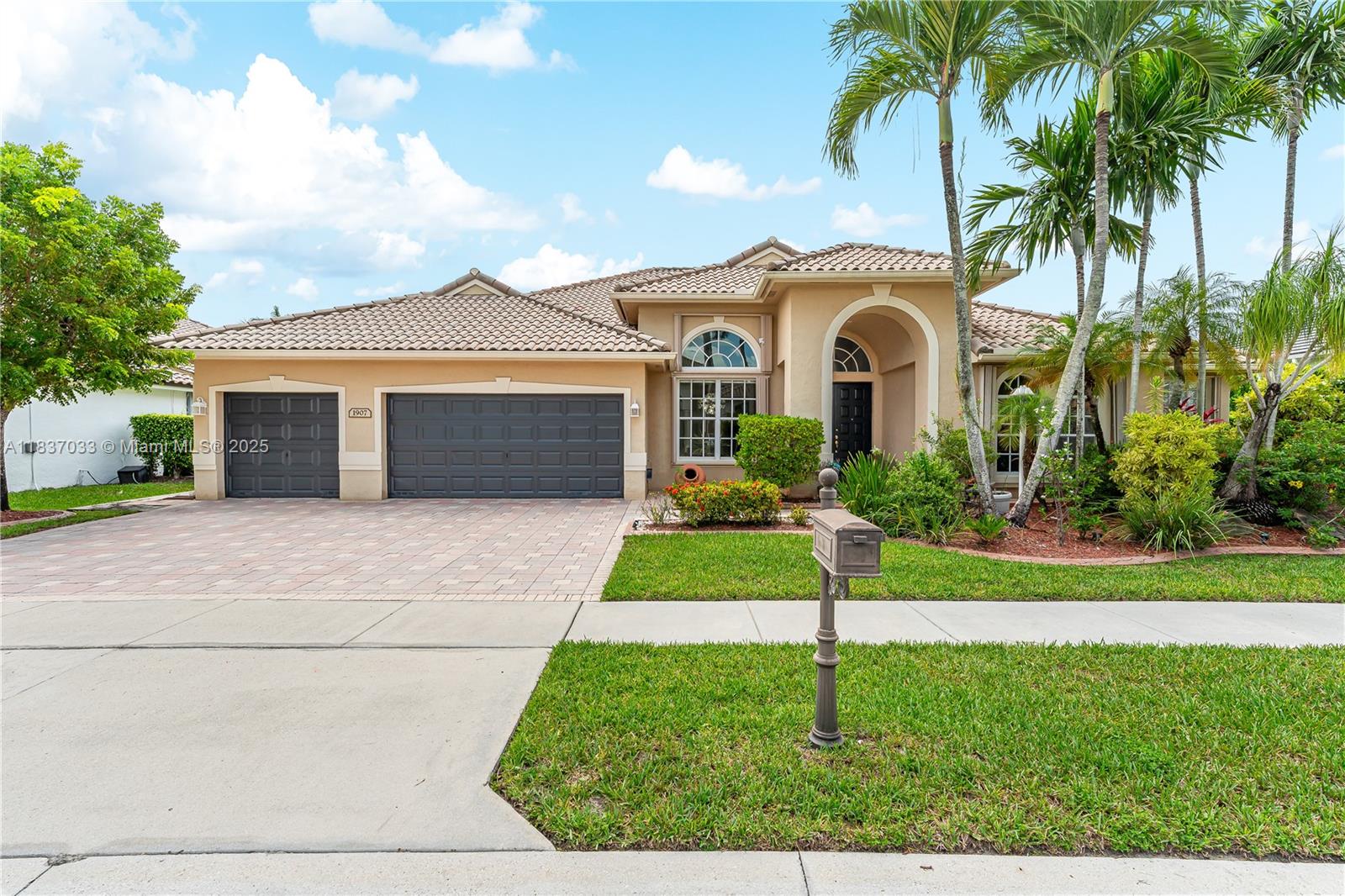 RARELY AVAILABLE MARQUIS MODEL LOCATED IN THE LUXURIOUS CRYSTAL HARBOUR SECTION OF PEMBROKE FALLS * THIS ELEGANT 5 BEDROOM, 3.5 BATHROOM HOME OFFERS A 3-CAR GARAGE, COMPLETE ACCORDION SHUTTERS, PARTIAL IMPACT WINDOWS, & A WHOLE HOUSE GENERATOR * STEP INSIDE TO SOARING 14-FOOT VOLUME CEILINGS, BEAUTIFUL JERUSALEM STONE FLOORING IN THE MAIN LIVING AREAS, & AN ABUNDANCE OF NATURAL LIGHT * THE KITCHEN OFFERS GRANITE COUNTERTOPS & REAL WOOD CABINETRY * THE PRIMARY SUITE FEATURES AN ELEGANT TRAY CEILING, 2 LARGE CLOSETS, PLUS AN ADDITIONAL WALK-IN CLOSET * THE BACKYARD IS PRIVATE & GENEROUSLY SIZED COMPLETE WITH A SCREENED-IN COVERED PATIO & AMPLE SPACE FOR A POOL * COMMUNITY AMENITIES INCLUDE A RESORT-STYLE CLUBHOUSE, NATURAL GAS & MORE * HOA INCLUDES CABLE, INTERNET, 24HR SECURITY & MORE!