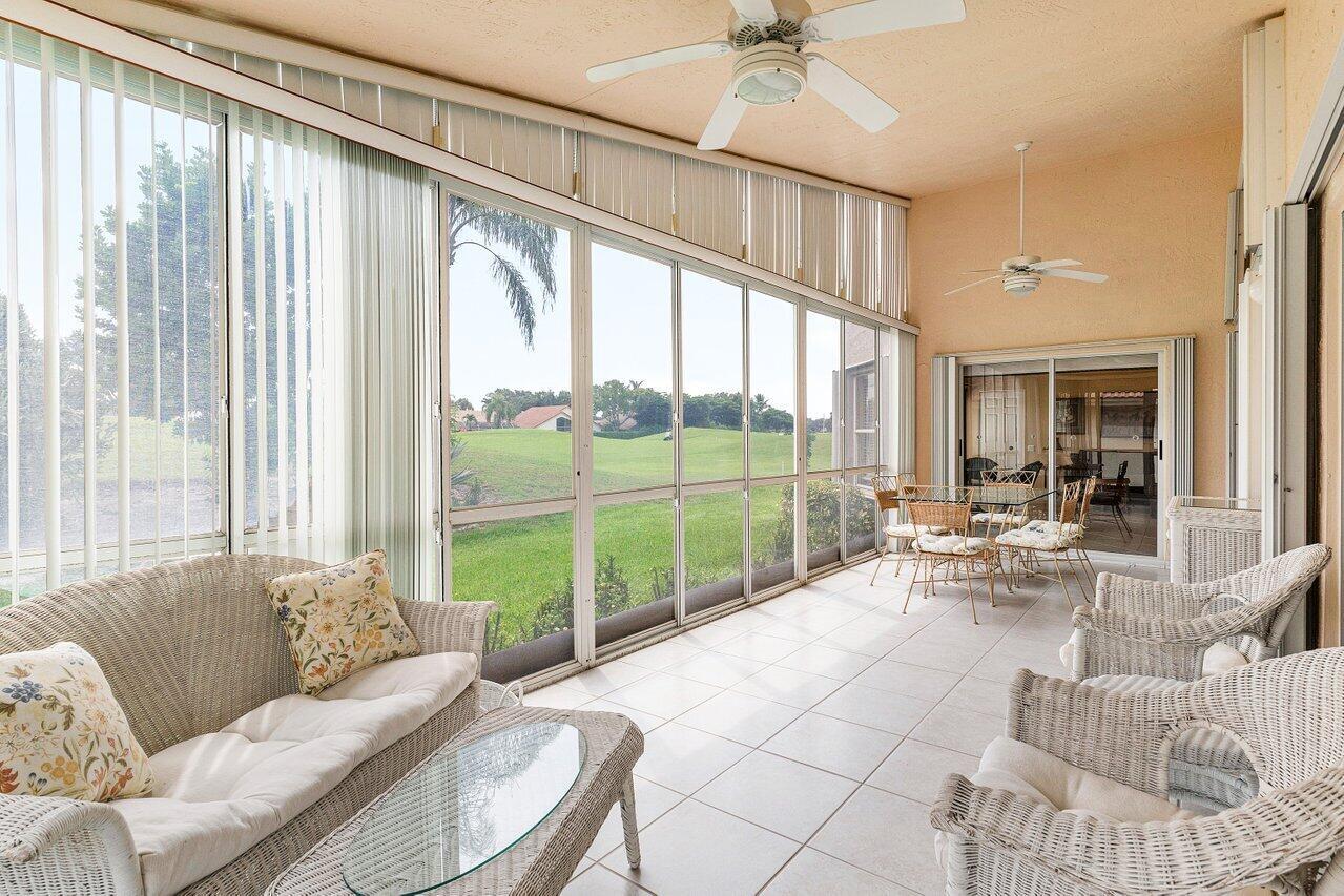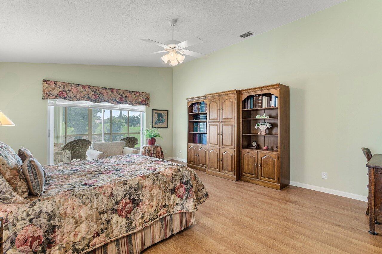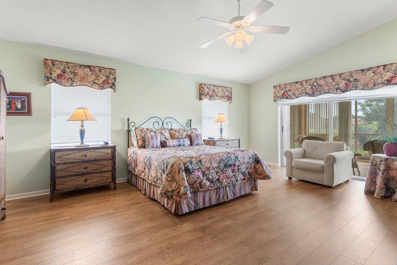 PRIME LOCATION. Nestled on a premium lot in the sought-after, 24/7 manned, guard-gated community of Lakeridge Falls, this bright and airy 3-bedroom, 2-bathroom home offers both privacy and picturesque golf course views. The well-maintained residence has a desirable split-bedroom floor plan, a spacious primary suite with dual walk-in closets, and a kitchen boasting 42'' maple cabinetry and granite countertops. Additional highlights include an enclosed lanai, accordion shutters, a bonus room and no carpet throughout. Lakeridge Falls is an active 55+ community offering a resort-style pool, pickleball and tennis courts, a fitness center, and more. HOA dues cover landscaping, premium cable, high-speed internet, exterior painting, and roof cleaning providing convenience and peace of mind.