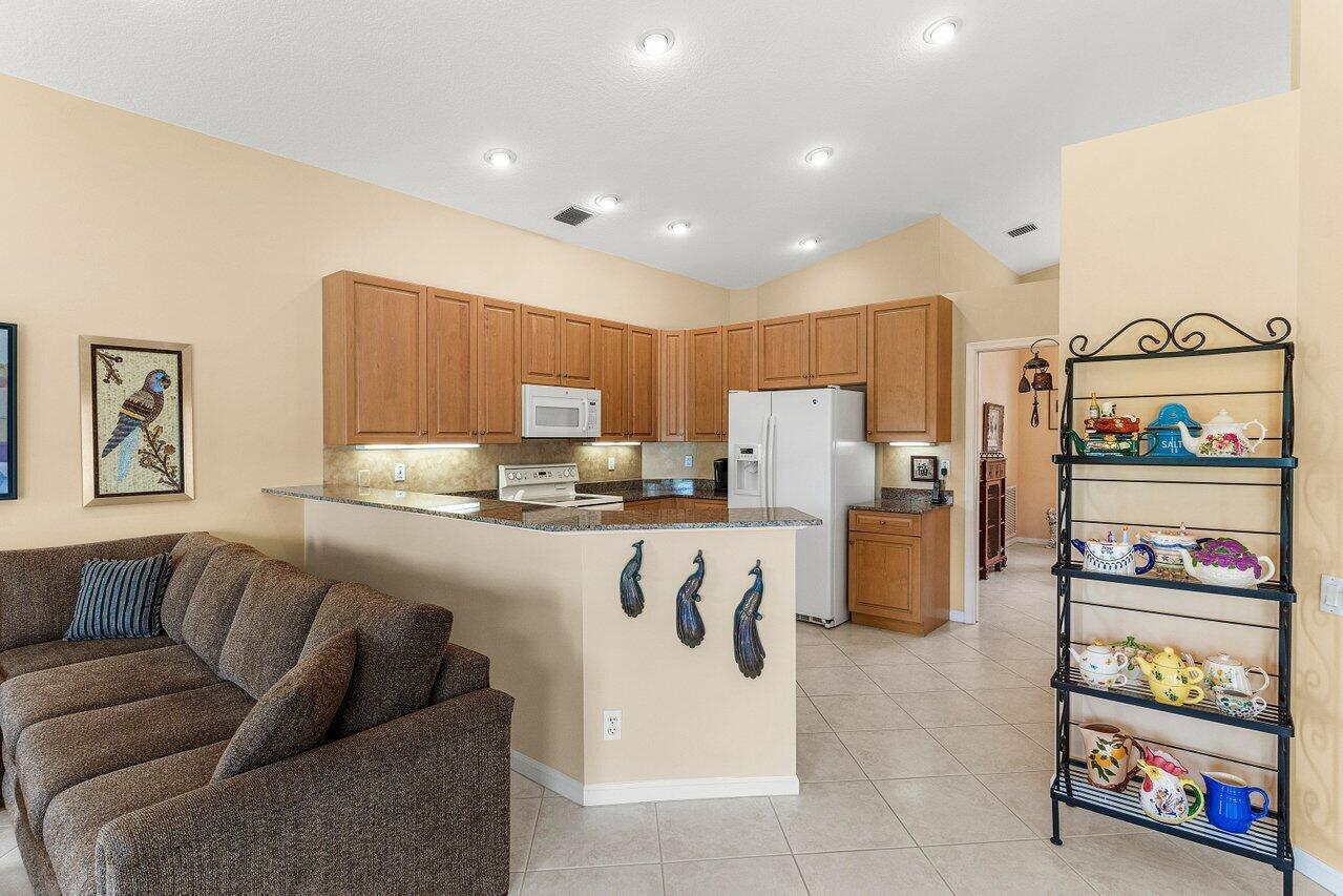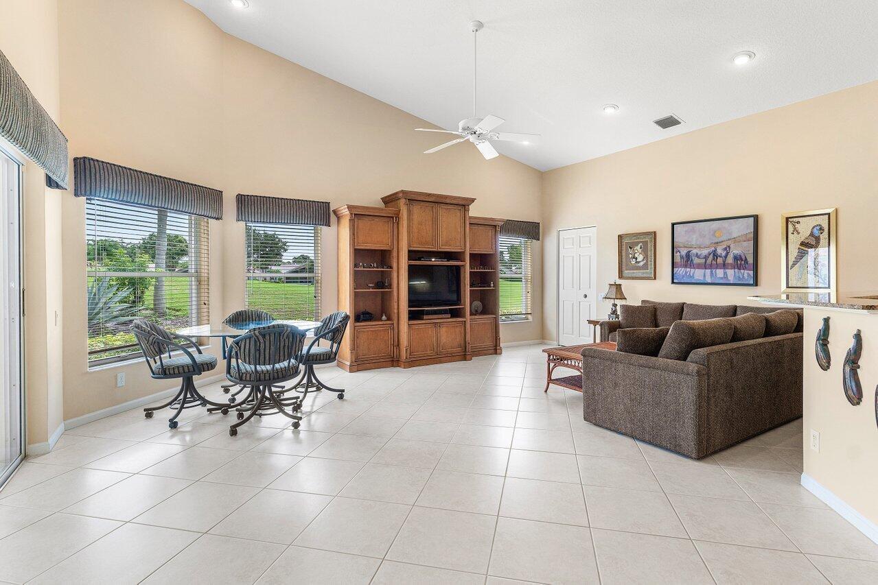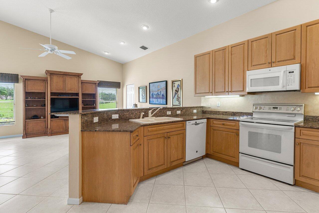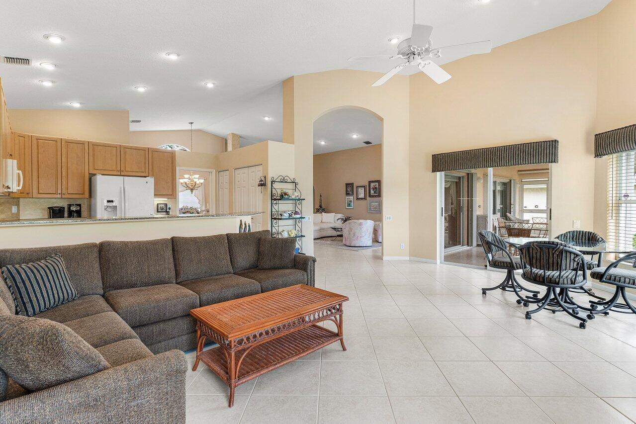 PRIME LOCATION. Nestled on a premium lot in the sought-after, 24/7 manned, guard-gated community of Lakeridge Falls, this bright and airy 3-bedroom, 2-bathroom home offers both privacy and picturesque golf course views. The well-maintained residence has a desirable split-bedroom floor plan, a spacious primary suite with dual walk-in closets, and a kitchen boasting 42'' maple cabinetry and granite countertops. Additional highlights include an enclosed lanai, accordion shutters, a bonus room and no carpet throughout. Lakeridge Falls is an active 55+ community offering a resort-style pool, pickleball and tennis courts, a fitness center, and more. HOA dues cover landscaping, premium cable, high-speed internet, exterior painting, and roof cleaning providing convenience and peace of mind.