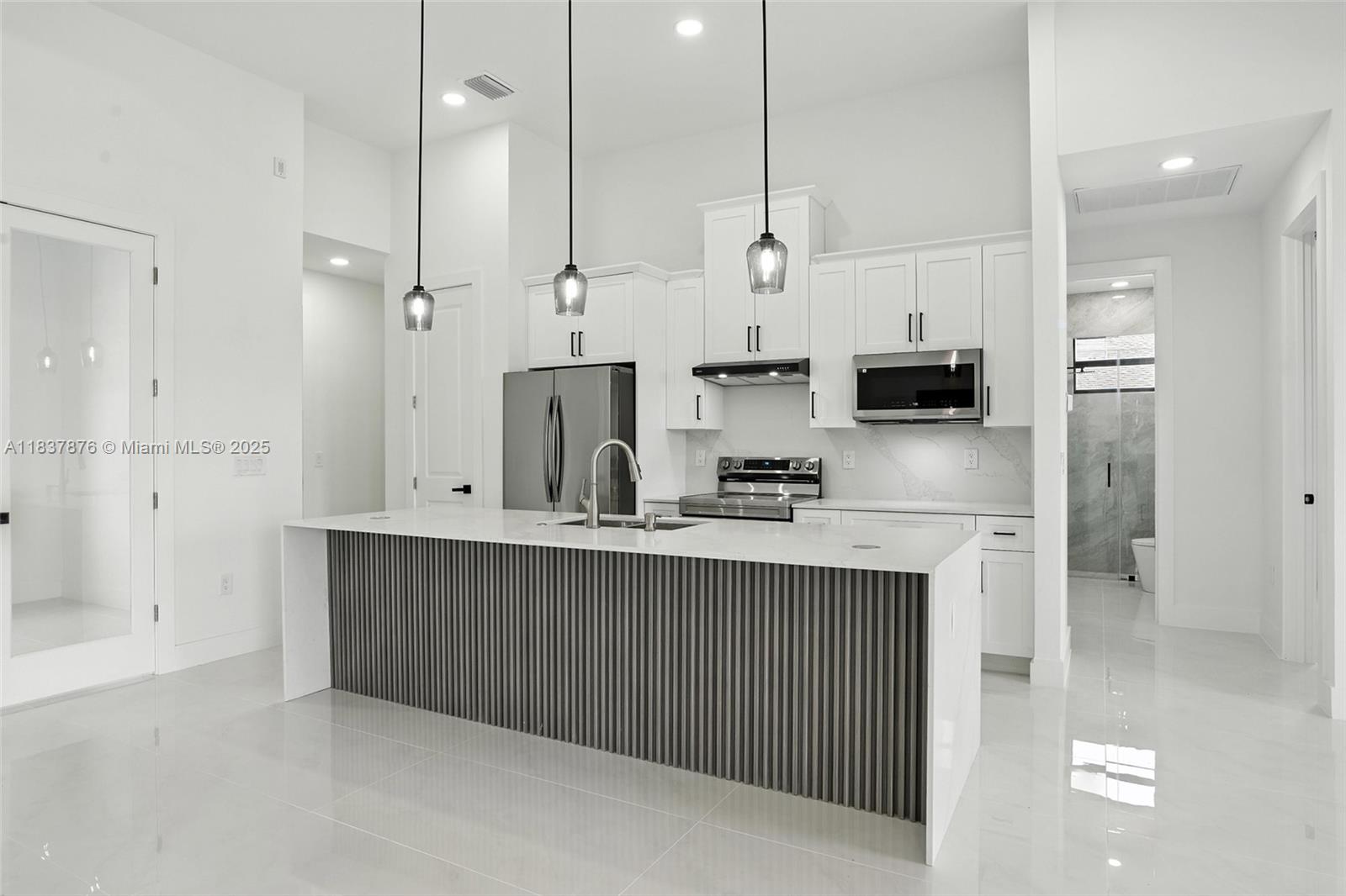 Brand-new home on a desirable corner lot in NE Cape Coral! This property features an open layout with tray ceilings, imported tile flooring, and approx. 1,800 sq. ft. of living space. Includes 3 bedrooms + den, 2 bathrooms, and a laundry room with sink and washer/dryer. The kitchen offers quartz countertops, high-end appliances, pop-up outlet, and exhaust fan. Living area with built-in fireplace and TV. Owner’s suite with soaking tub, walk-in shower, and two closets. Impact windows, modern fixtures, and 2-car garage. Fully fenced backyard with mini outdoor kitchen, patio furniture, and deck. No HOA and located in a non-flood zone. Minutes to Del Prado, schools, and shopping!