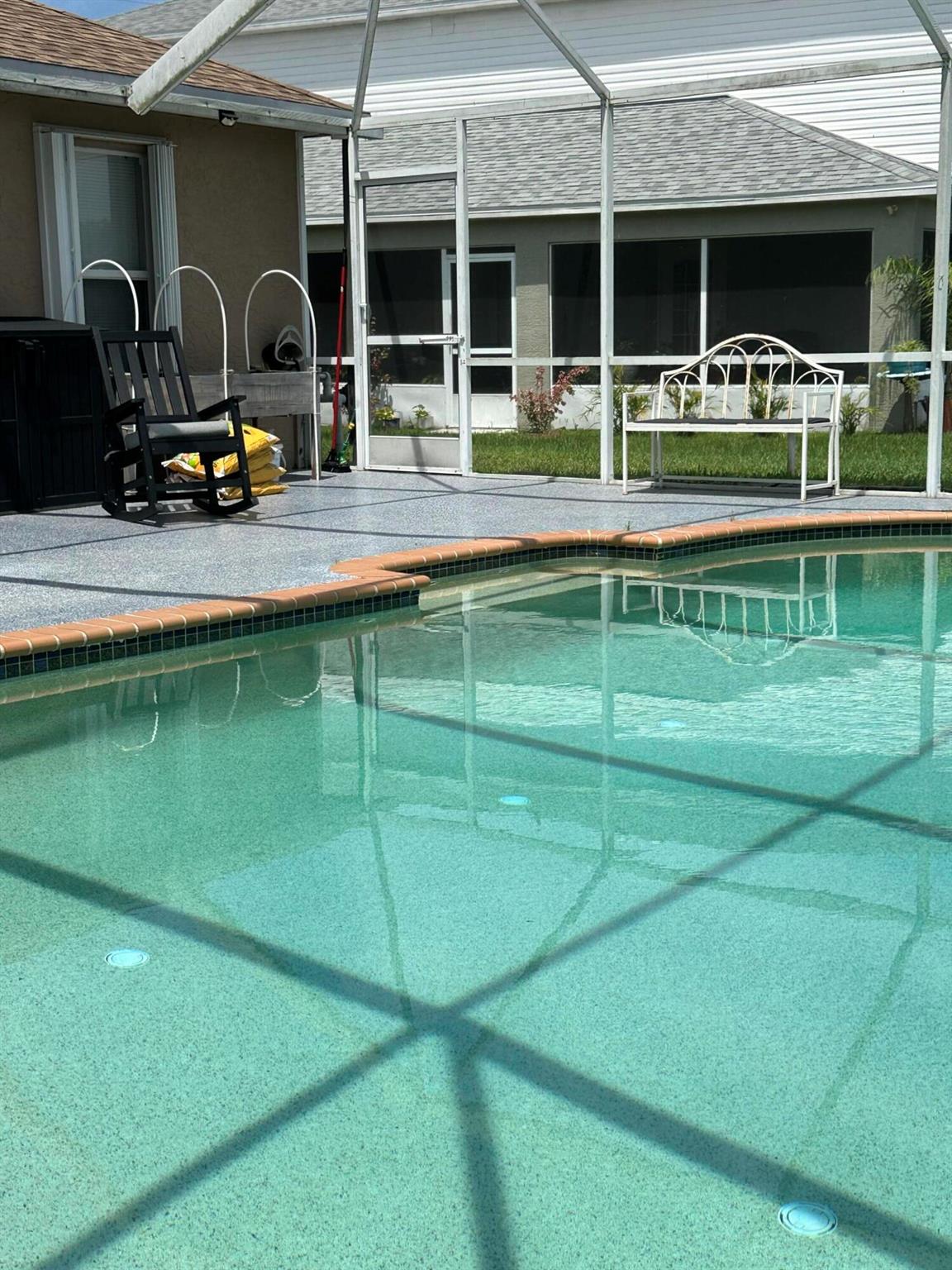 Torino Parkway CBS Pool home with a storage shed. Don't miss this 3 bed, 2 bath, 2 car garage with screened in pool under $410,000. Split bedrooms, laminate flooring, 2021 Roof, A/C is about 6 years old, accordion shutters. Owners are downsizing and this home is ready for a new owner. All sizes, information is approximate, buyer is responsible to verify all.