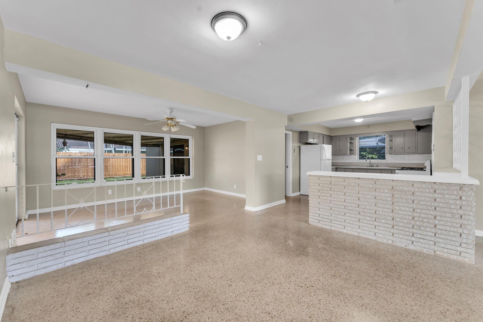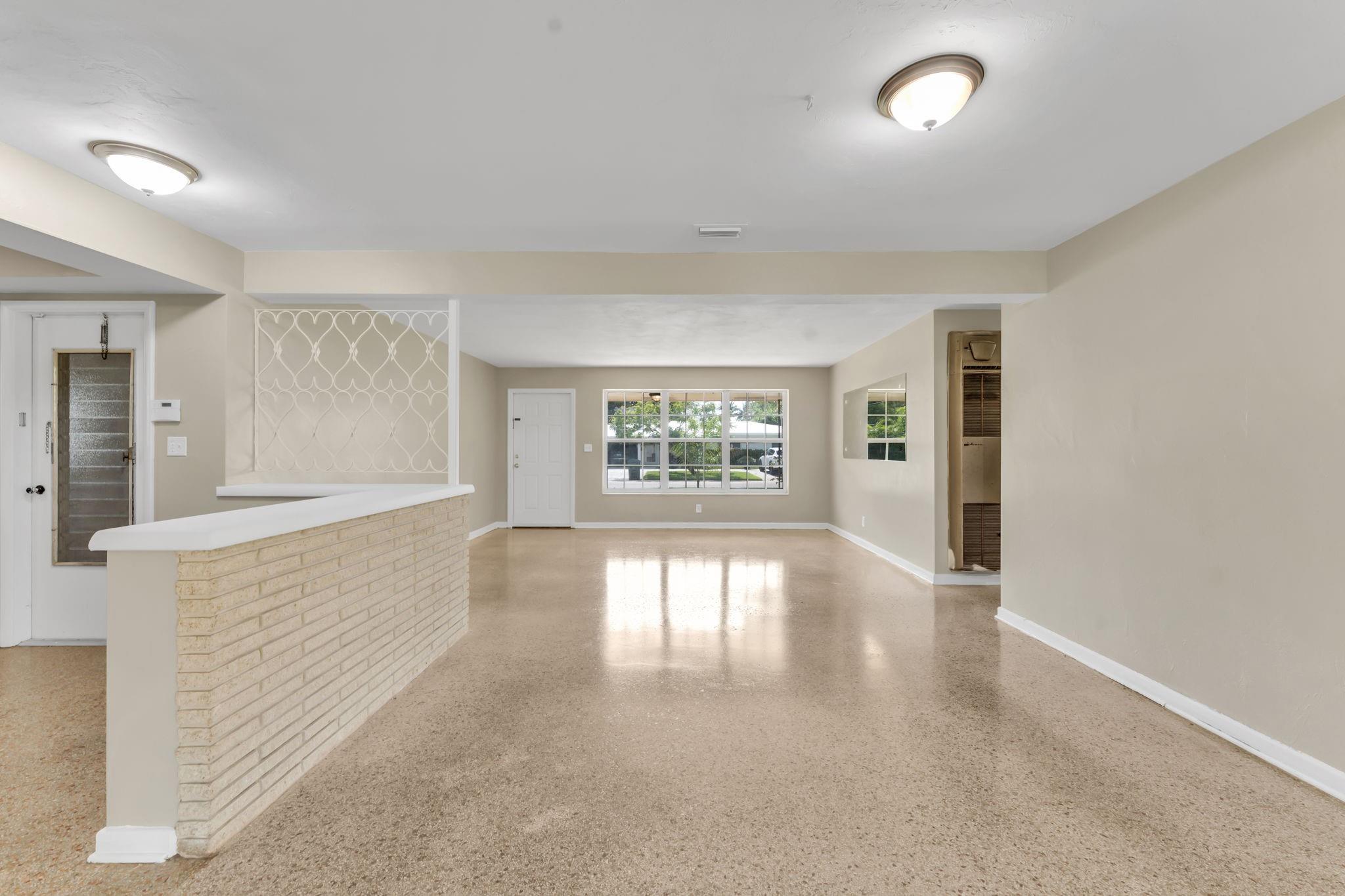 Mid-Century charm looking for your personal touches! Desirable Floranada School district. 3/3 split layout. (3rd bedroom makes a great in-law suite or efficiency). This room has a private entrance, full bath, kitchenette, wood burning fireplace and access to backyard patio. Home features include; natural gas, partial impact windows and panels, polished terrazzo floors, updated electric panel, central A/C (2015), new lawn irrigation system and sod, interior and exterior freshly painted, 2 car garage plus resurfaced driveway with parking for up to 4 cars. This spacious home has endless possibilities and is PRICED TO SELL! Main house has Central A/C although some wall units are still in place. Efficiency has a wall unit a/c. Minutes to the beach, downtown Oakland Park and Wilton Manors