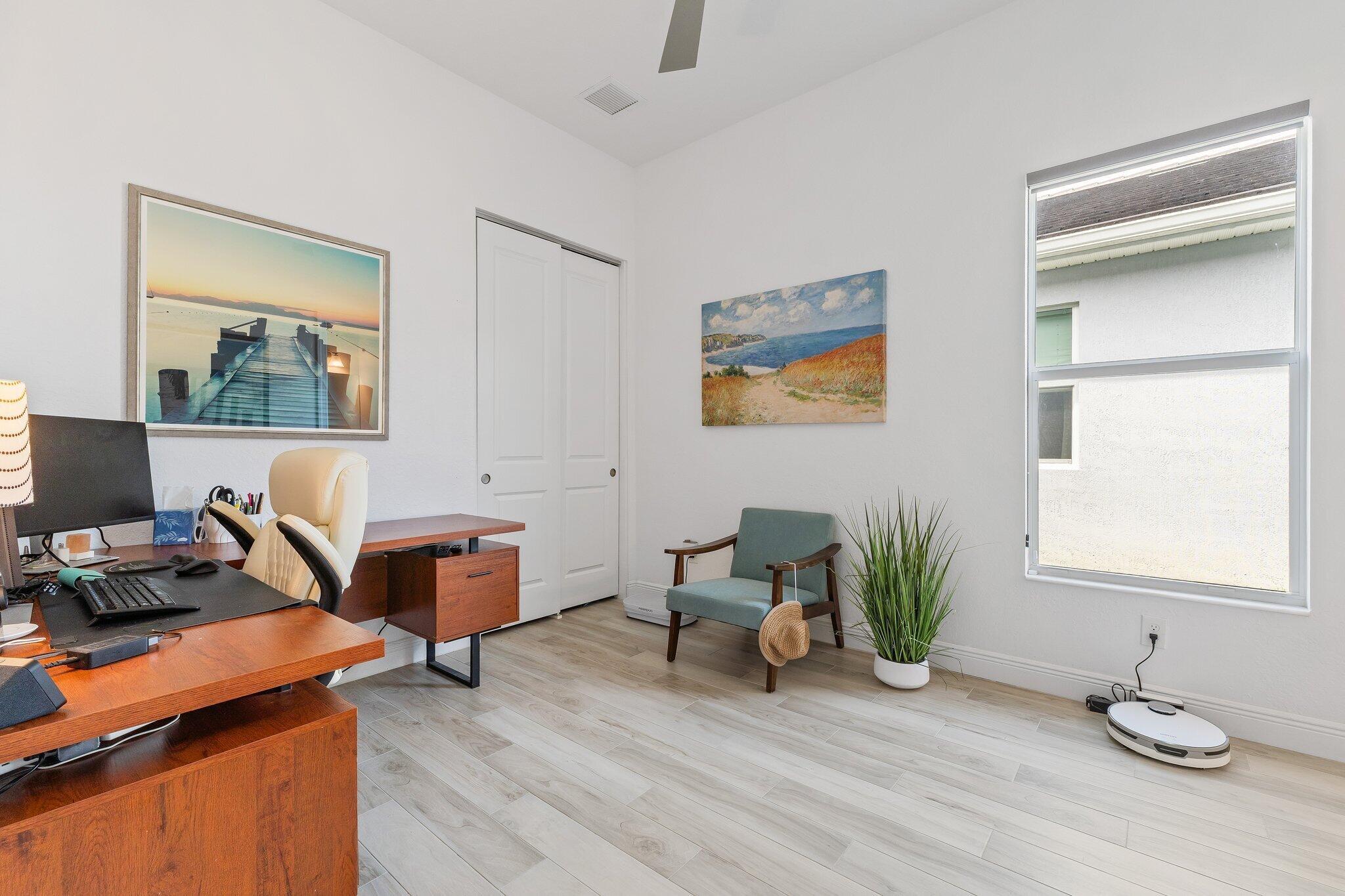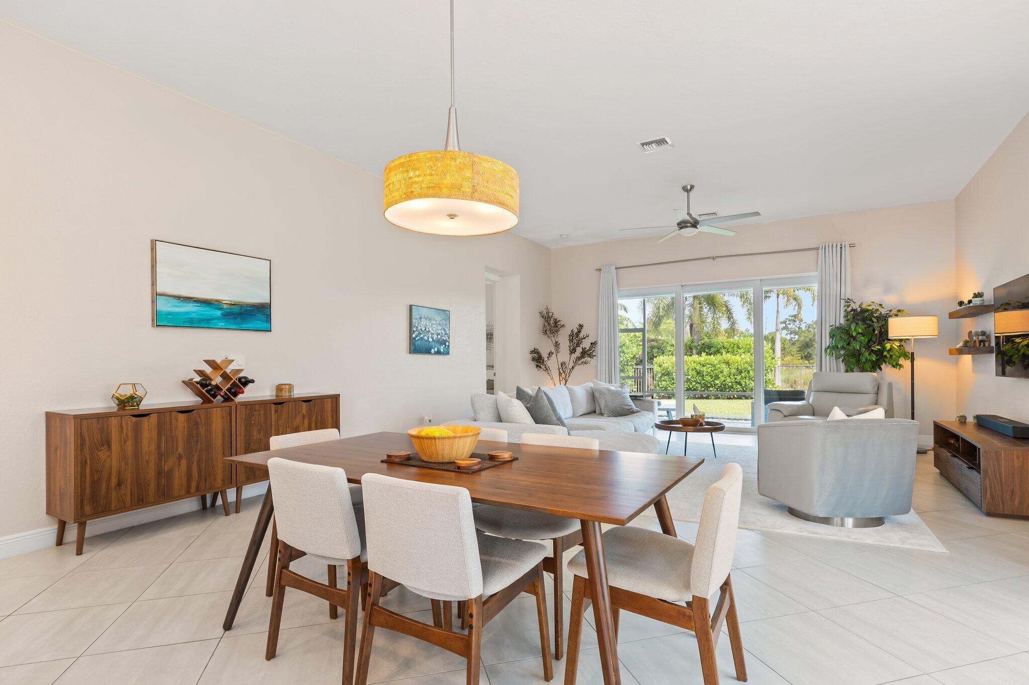 This is the beautiful Antigua Model home. One of the most sought after floor plans in Banyan Bay with 3 Bedrooms and 3 full baths, all on one floor! The Calcutta Quartz Kitchen Counters, Black Stainless Steel appliances and Farmhouse Sink make this home a standout! You'll also love the Custom Features throughout, including Shades & Blinds, Lighting, Shelving, Ceramic Tile flooring and more! A new Lennox AC with UV light was installed in October 2024. The fully fenced yard is great for kids and pets, and the screened in Lanai provides beautiful lake views. There's plenty of room for a pool, but the community pool is wonderful, so a great community with sidewalks, a private boat launch for kayaking or paddle boarding.