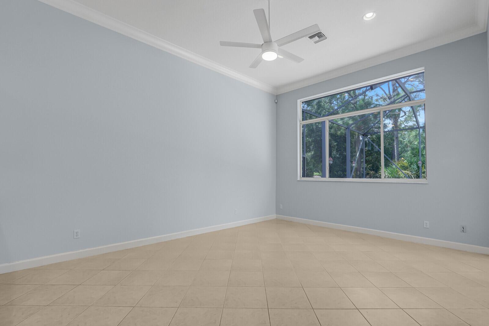 Beautiful, UPDATED 2BR with DEN home in the desirable Greenbrier neighborhood of PGA Village! This move-in-ready home features a light-filled kitchen with white cabinetry, sleek SS appliances, & stunning quartz countertops accented by a stylish tile backsplash. A breakfast bar opens seamlessly into the spacious family room--perfect for casual gatherings. Entertain effortlessly in the expansive living & dining areas, or step out to the large, screened lanai that overlooks a sparkling pool, ideal for outdoor relaxation & hosting guests. The generous primary suite offers ultimate comfort with two walk-in closets featuring custom built-ins & plush new carpeting. The luxurious ensuite bath boasts white cabinetry, new quartz countertops, & a fresh elegant design. Split floor plan ensures privacy