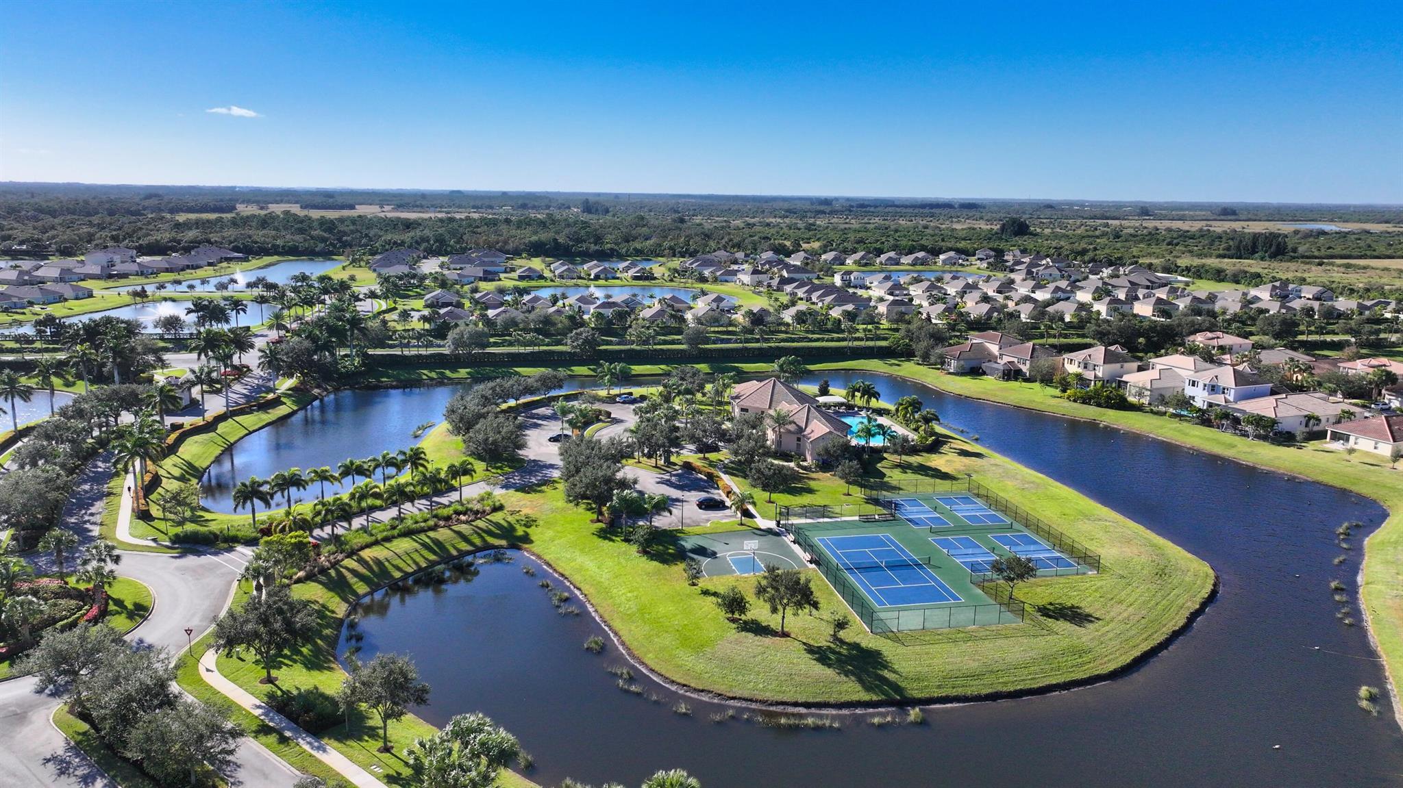 Lakefront Elegance in Millstone Landing. This stunning 3-bed, 2-bath, 2-car garage home offers breathtaking lake views & elegant upgrades. Move-in ready & energy efficient,includes furniture with a full-price offer. Your next home features a new water heater, new stainless steel appliances, granite countertops, and custom Levolor window treatments. The spacious owner's suite boasts a tray ceiling, luxury vinyl plank flooring, a walk-in closet, double vanity, and a garden tub. Enjoy sunsets from the screened lanai. Large backyard with room for a pool. Resort-style amenities and low HOA.