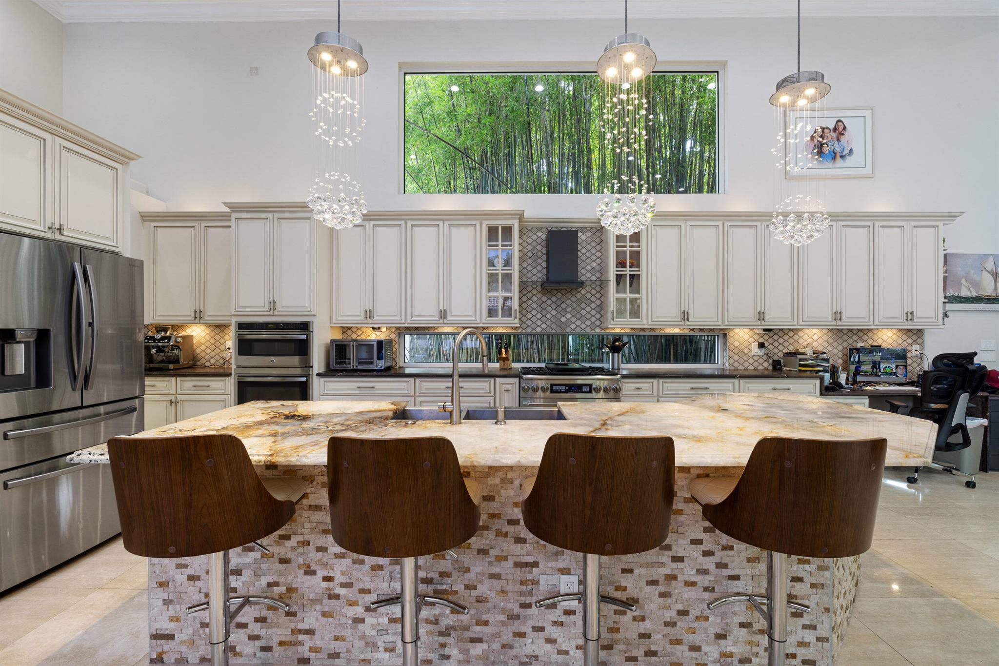 Set on an oversized 17,049 SF lot, this nearly 5,000 SF single-story estate offers unmatched lifestyle and location in Seasons--Boca's premier east-of-441 gated enclave. With a newer roof, upgraded air conditioners, and fully paid solar panels, this residence blends timeless elegance with modern efficiency.Featuring five bedrooms, including four en-suites, a private office, and a split primary suite with direct pool access, the home is designed for both comfort and privacy. Soaring ceilings, a chef's kitchen with gas range, premium appliances, custom cabinetry, and dual pantries elevate everyday living.Step outside to a resort-style courtyard complete with a saltwater pool, spa, summer kitchen, and expansive fenced yard--ideal for entertaining or peaceful retreat. Just minutes