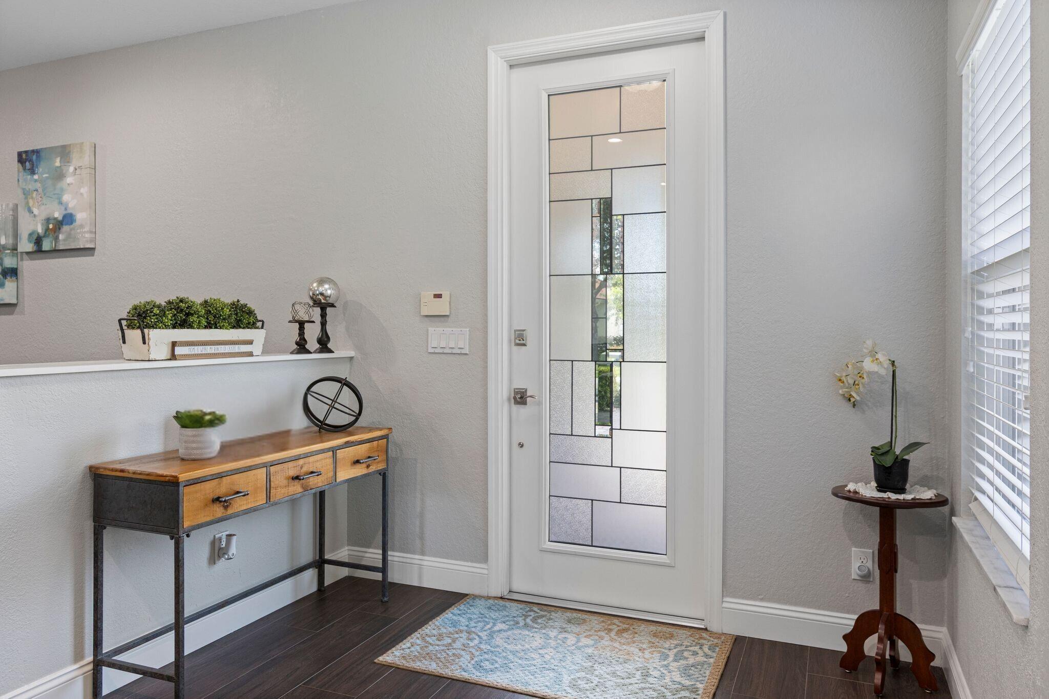Located in the highly desirable gated community of Rialto, this beautifully upgraded 4 bedroom, 2.5 bath home offers a perfect blend of comfort, style, and functionality - all overlooking a serene water view!The backyard is a true retreat, featuring a 32' x 14' saltwater, heated pool and 7' x 8' spa with waterfall spillover, sun shelf, deck jets, deep-end bench seating, and jets on both top and bottom. Built in 2022 by CSE Paving of Florida, Inc., the pool area is finished with elegant sandblasted marble decking in a French pattern and includes Aqualink smartphone automation.