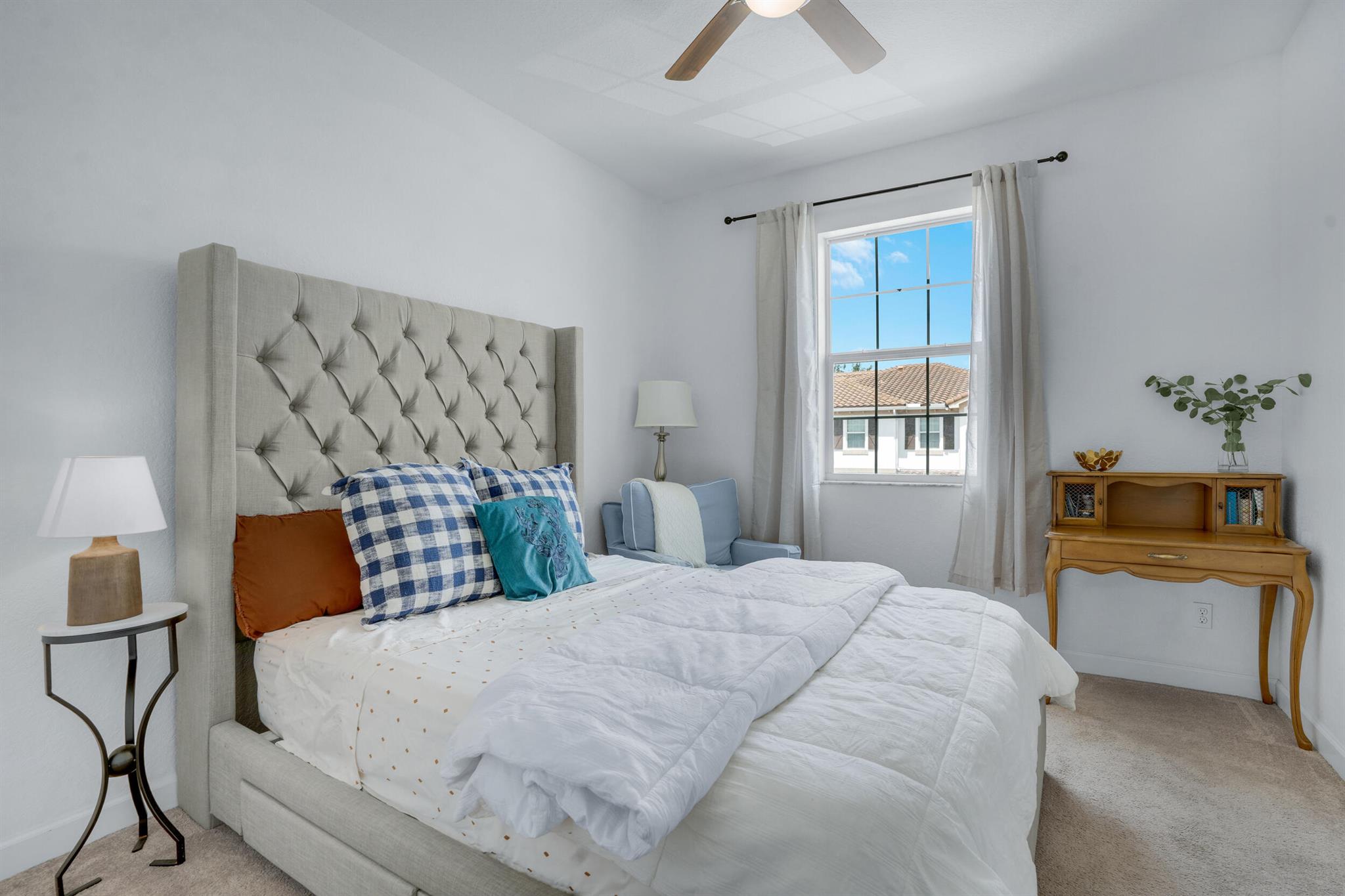 This beautifully maintained 3-bedroom, 2.1-bathroom townhouse offers the perfect blend of comfort, style, and convenience. This move-in-ready home features a split floorplan, custom closets, upgraded kitchen, breakfast area over looking the garden, stainless steel appliances, granite countertops, recessed lighting, pantry, foyer, powder room and a large living area on the first floor. The second floor boasts a large ensuite main bedroom with a large walk-in closet, tray ceilings , dual sinks and a walk-in glass shower. There is 2 other spacious bedrooms plus a full bath and a laundry room. Lets not forget the garage and the fenced in patio that has the feel of serenity. This neighborhood is gated with a pool and play area. Don't miss out on this!