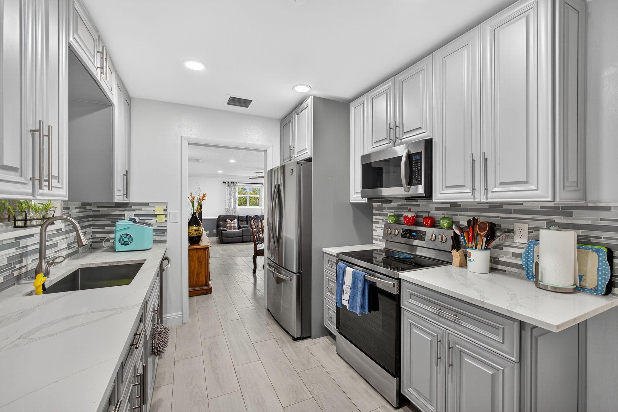 ''Discover a gem on (.90) acre surrounded by mature and lush Mango trees. This expansive property offers endless possibilities, whether it's adding an pool or let your pets run freely. The updated 4 Bedroom/2 Bath L shaped Ranch style home is a blend of modern comfort and timeless charm, with no HOA and no restrictions holding you back. Kitchen equipped with all Newer Appliances. Embrace the freedom to make this your dream oasis. Your private slice of paradise awaits.''Grab a piece of the country in the city complete with a shy acre to contain even the largest of toys. This Mid Century Modern ranch will knock your socks off. The spacious four bedroom two bathroom, floor plan gives you plenty of room to roam, rest and relax. The screened in back patio is perfect to grill