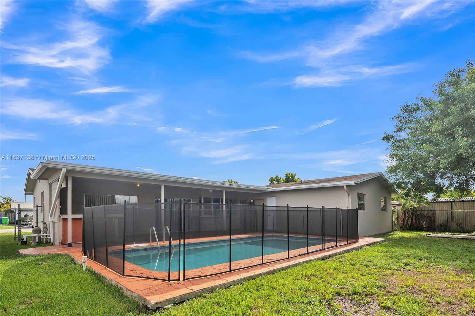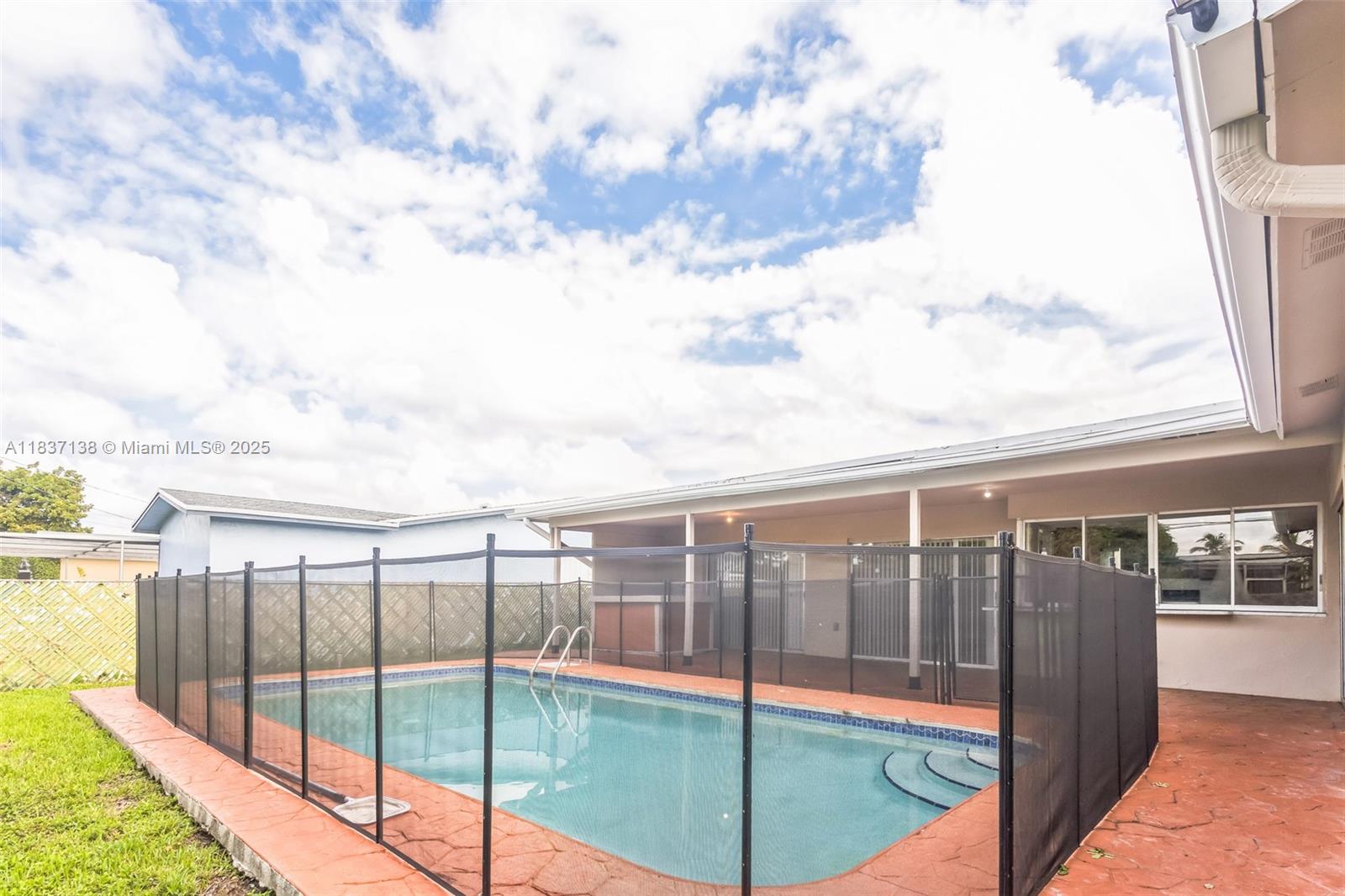 This move-in ready 4-bedroom, 2-bathroom home features tile flooring throughout and a spacious layout designed for comfort and functionality. The kitchen offers ample cabinet space and overlooks both the dining area and the private pool—making indoor-outdoor living a breeze. The backyard is perfect for entertaining, complete with a large covered patio, pass-through kitchen window, bar space, and easy access to the in-ground pool. Conveniently located near shopping, dining, and everyday essentials, this home offers both lifestyle and location. Schedule your private showing today and see all this home has to offer!